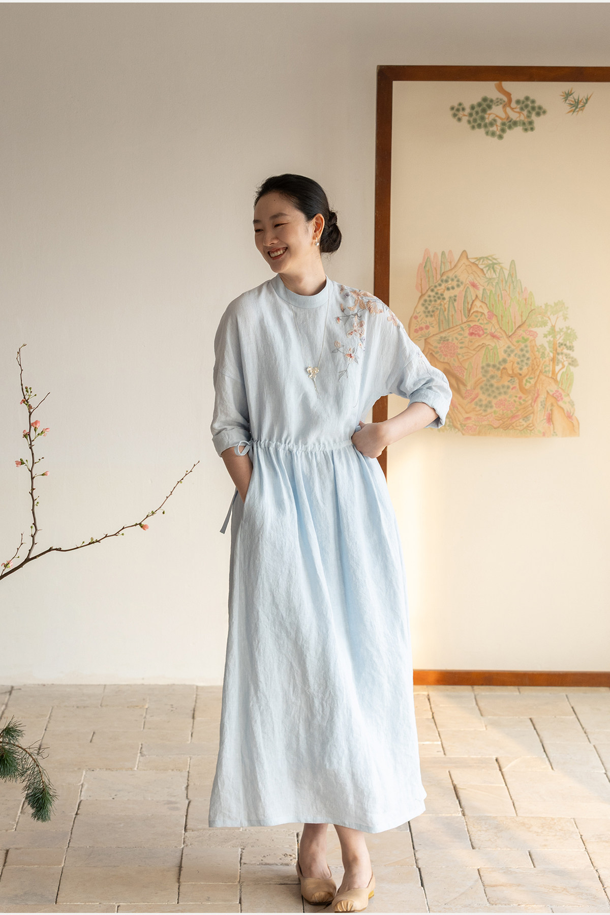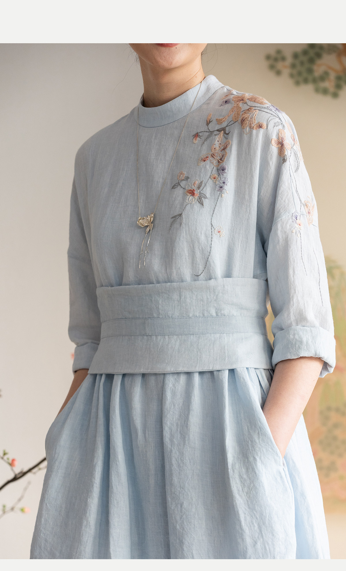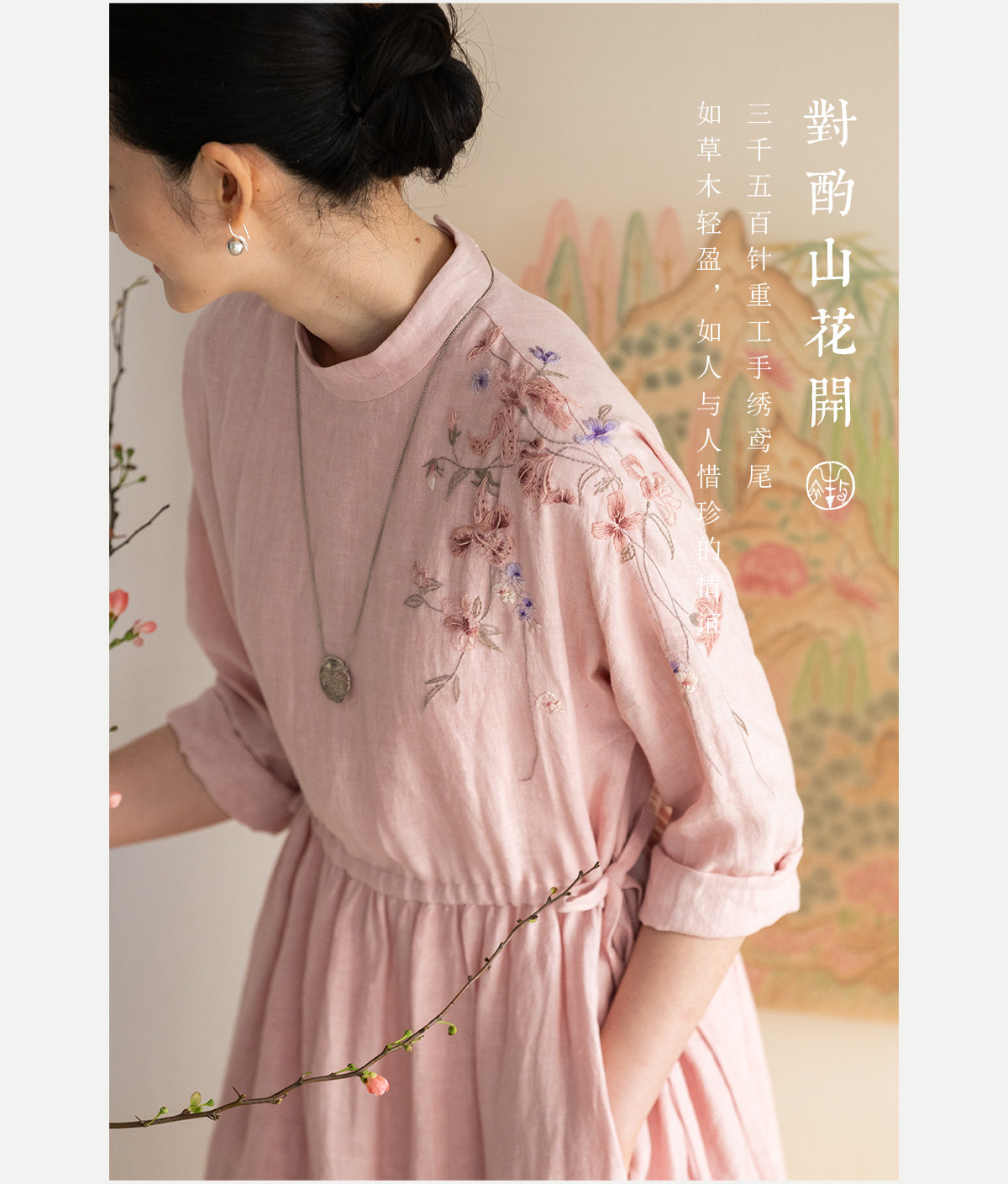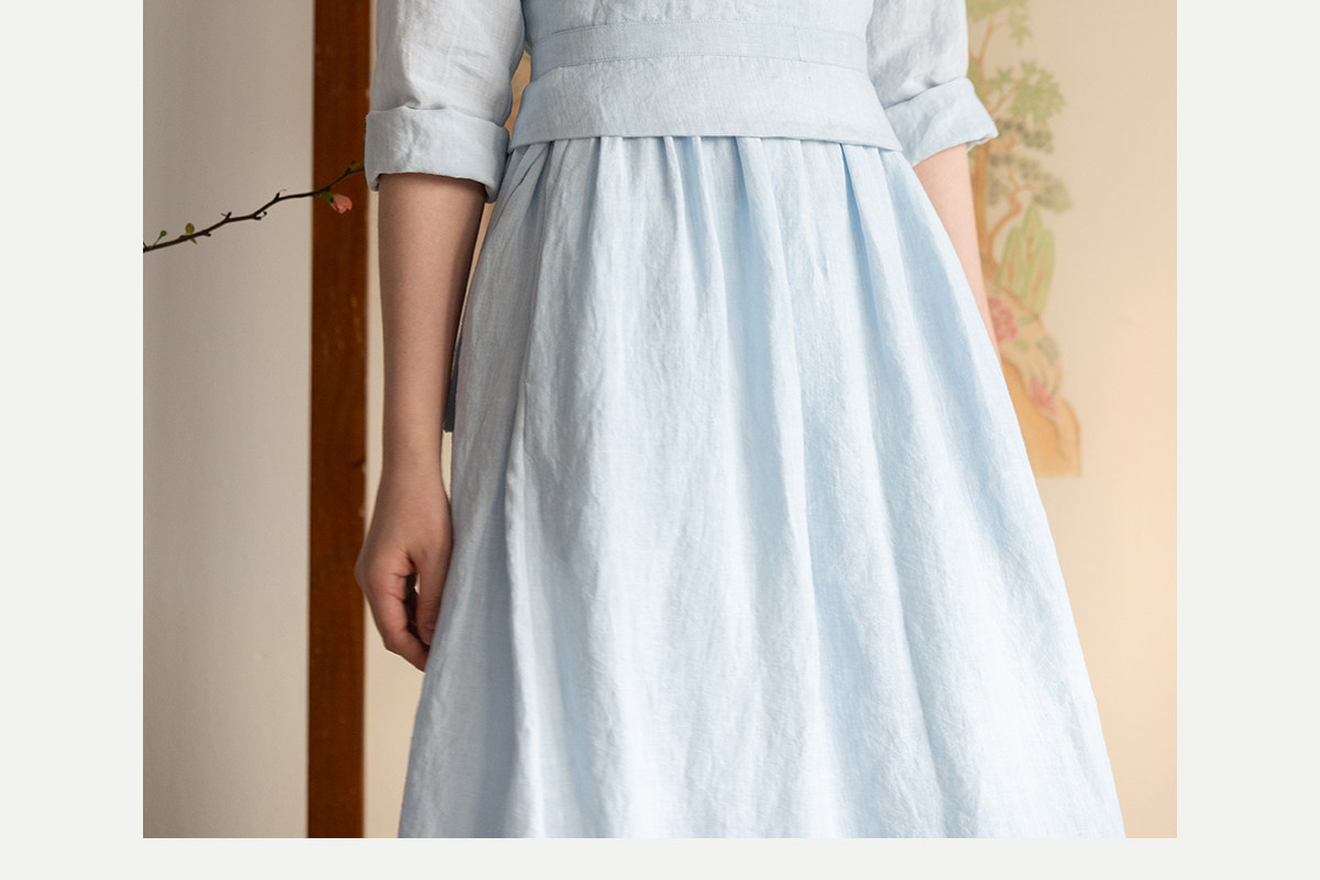 牧衣游原创 汉麻手工刺绣连衣裙新款柔软舒适宽松文艺长裙 拾雾