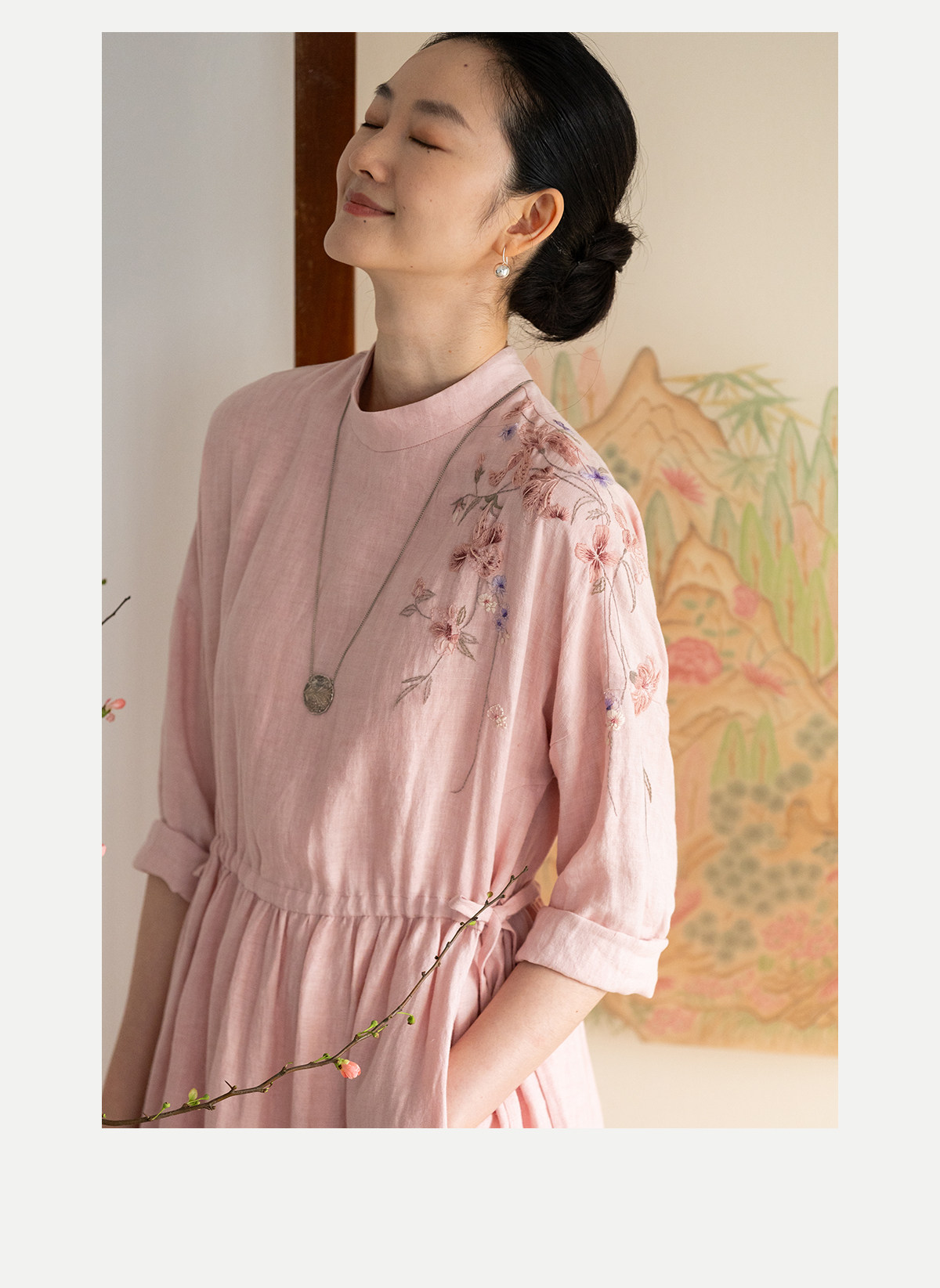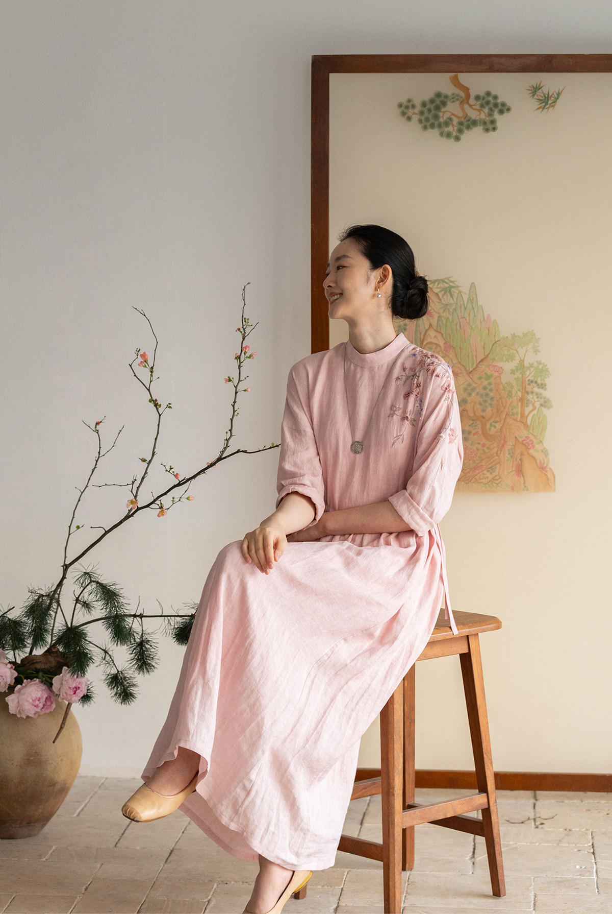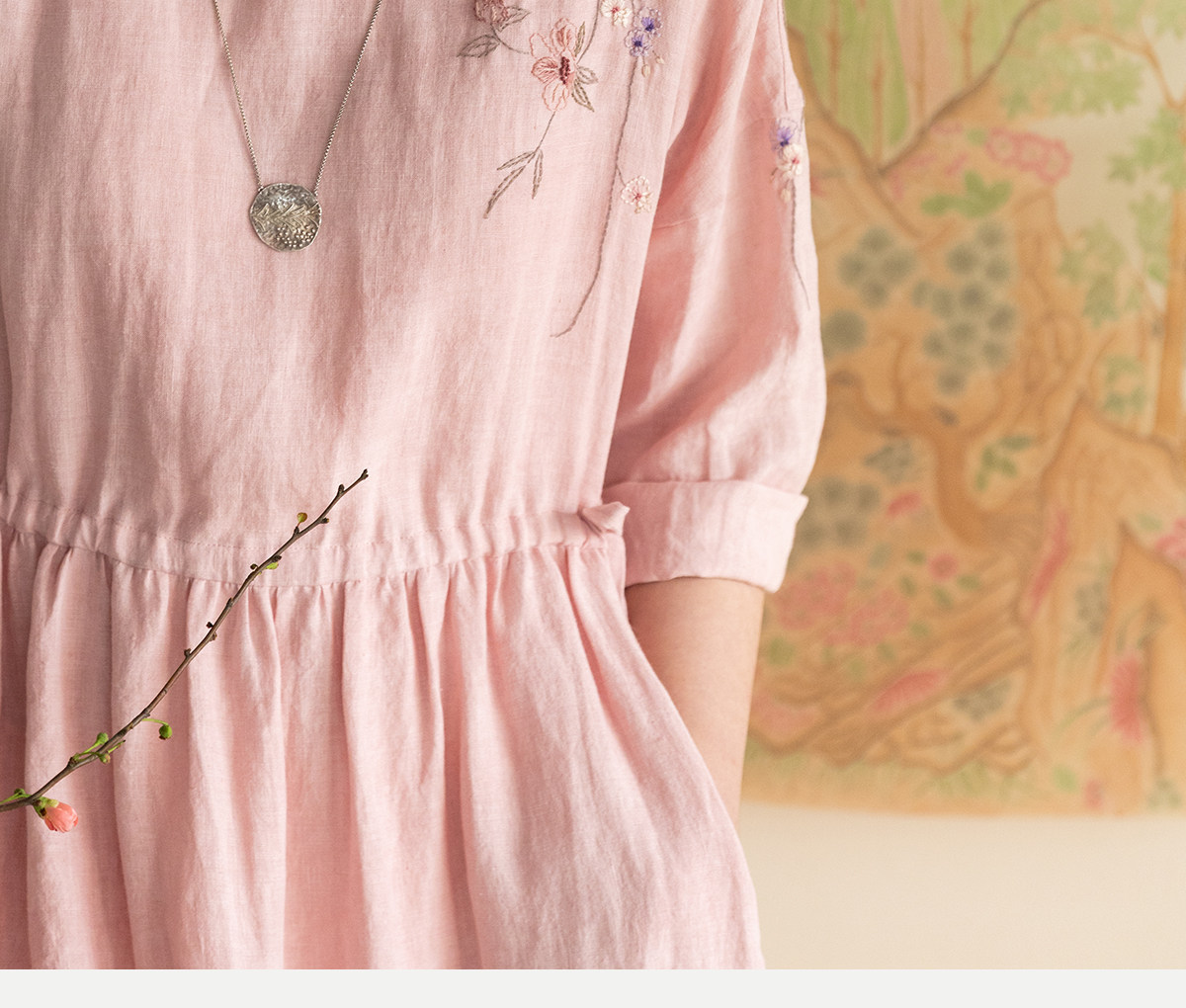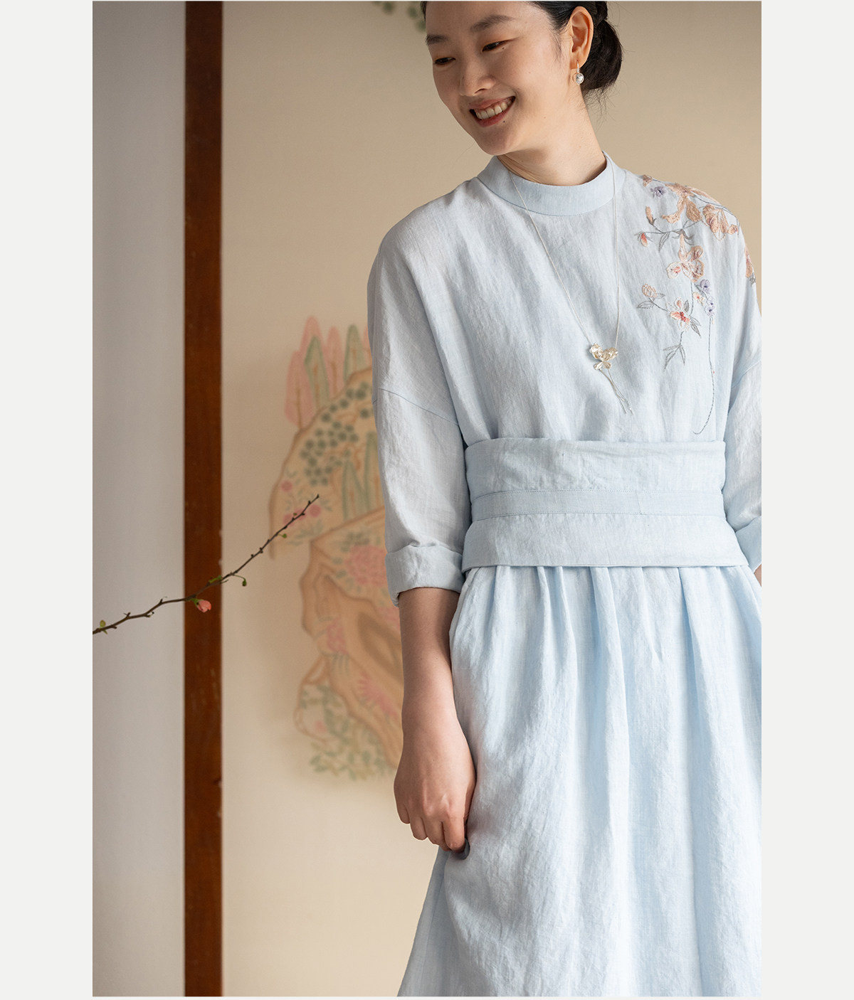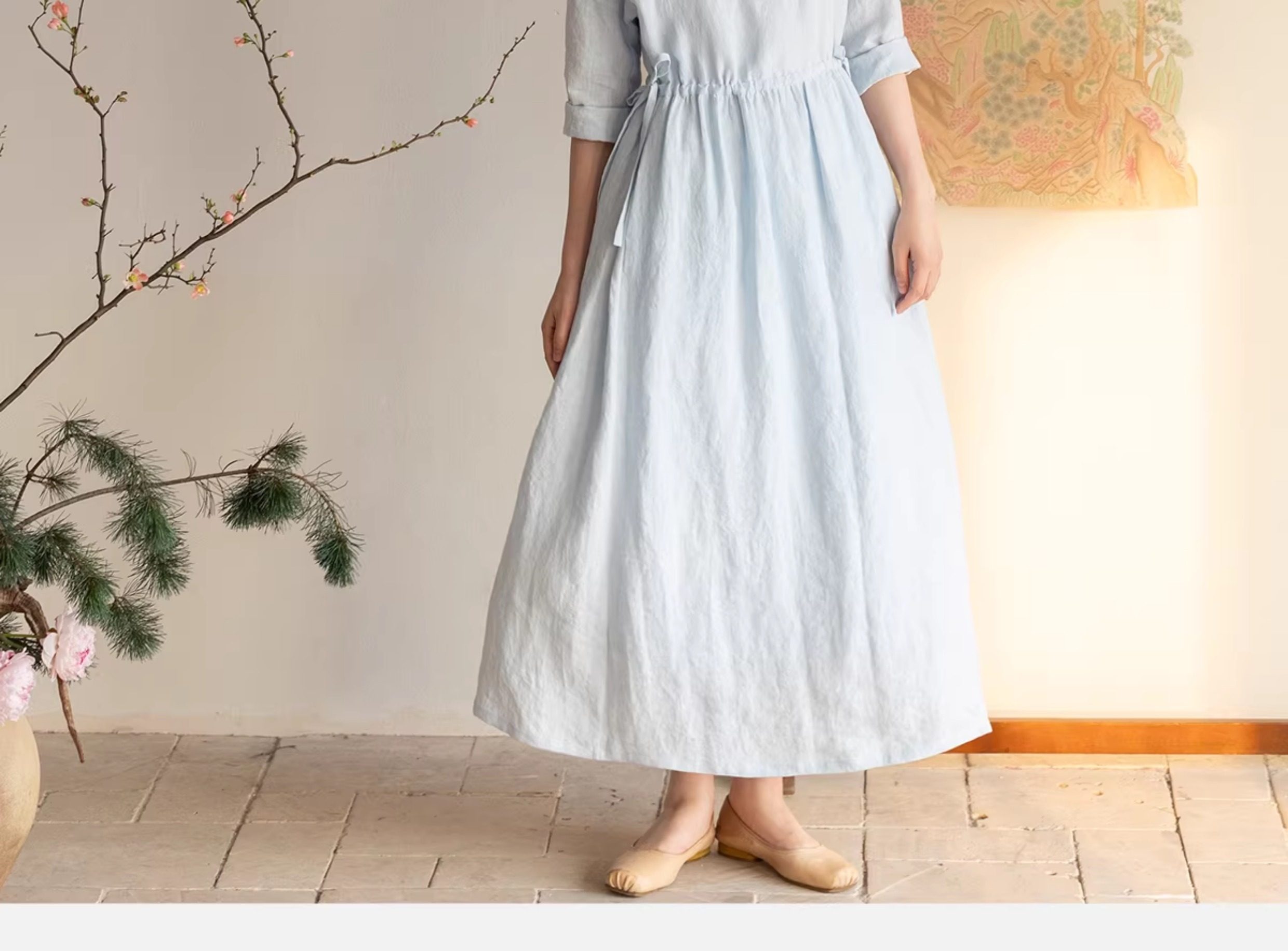 牧衣游原创 汉麻手工刺绣连衣裙新款柔软舒适宽松文艺长裙 拾雾