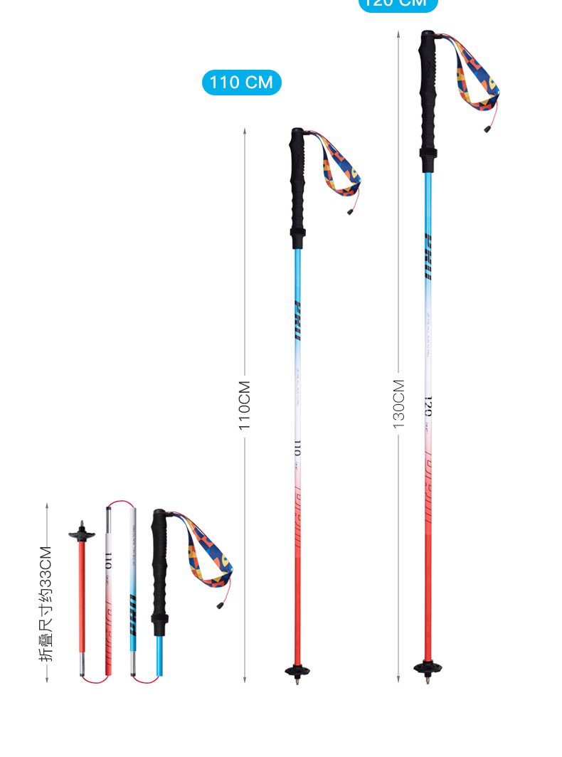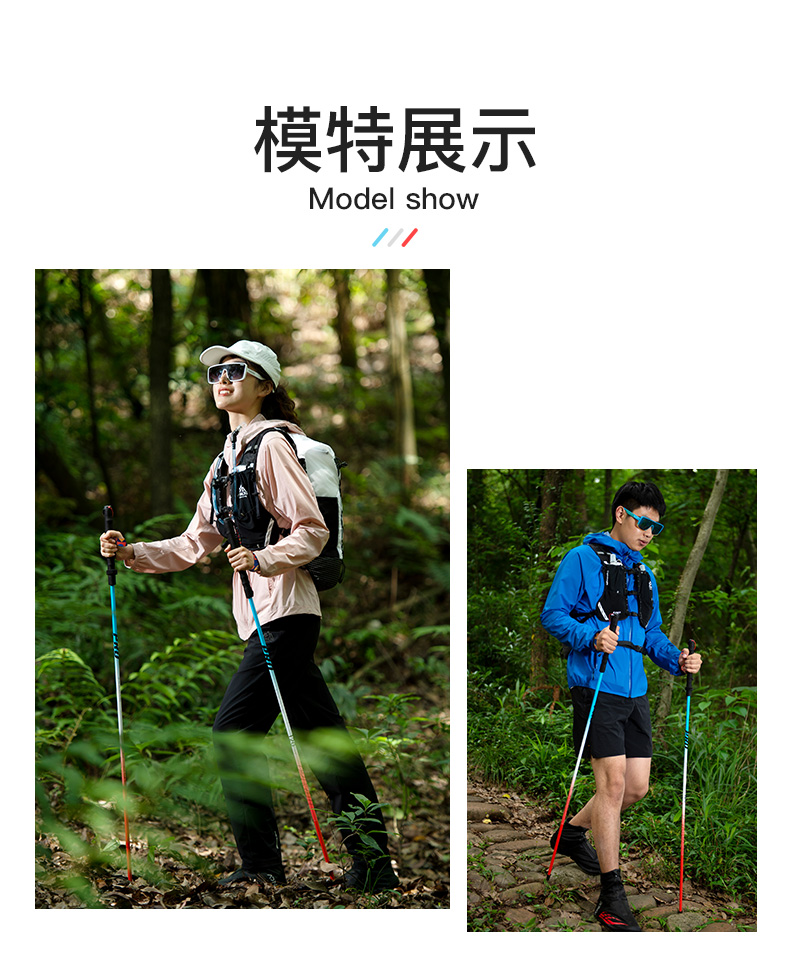 奥尼捷新款全铝登山杖户外跑步杖徒步登山杖蓝红色时尚耐用越野杖E4207 一对装