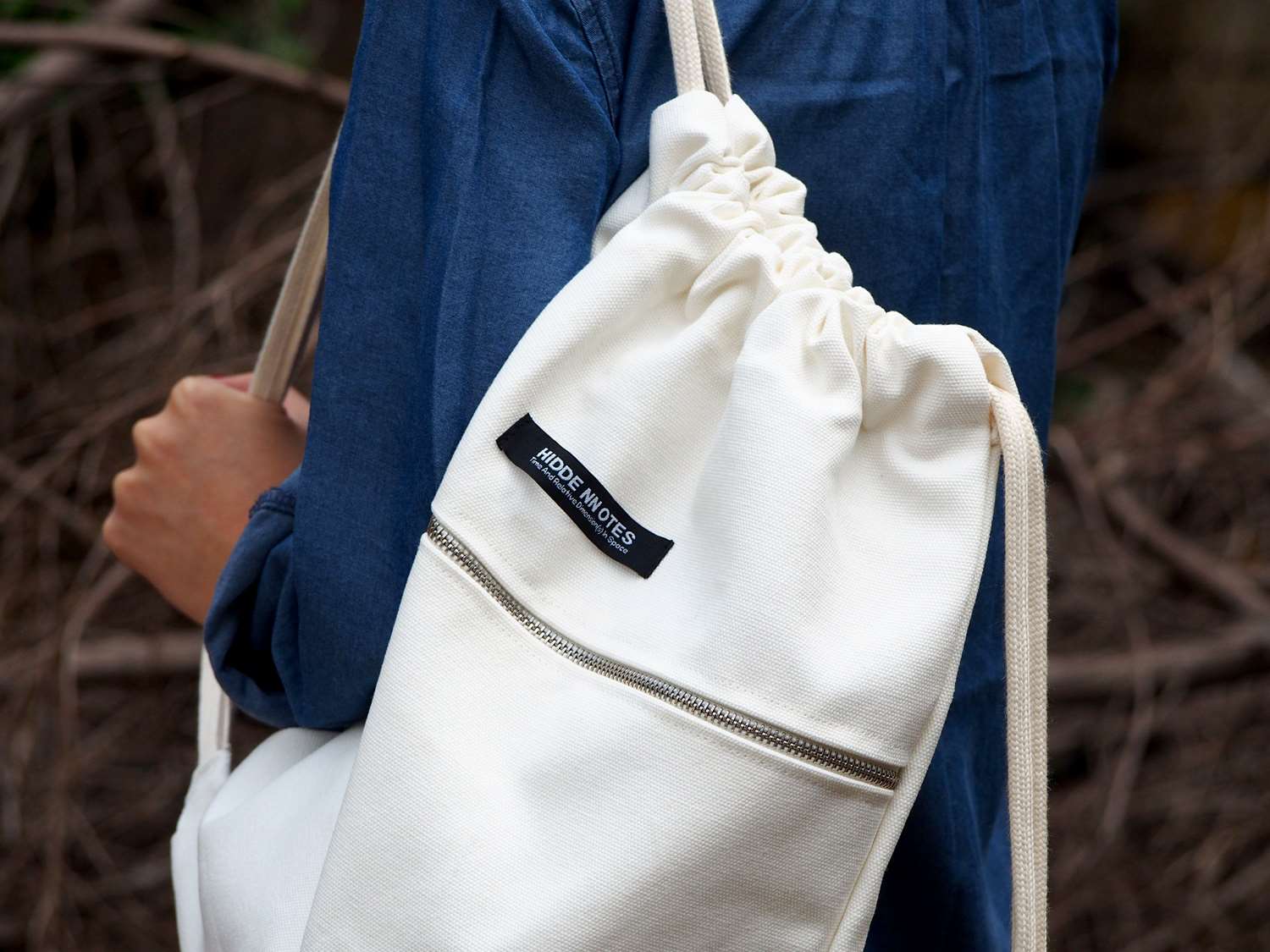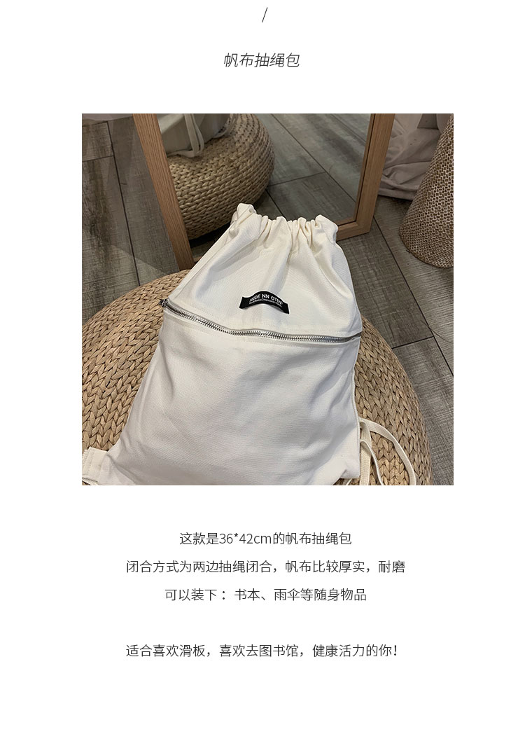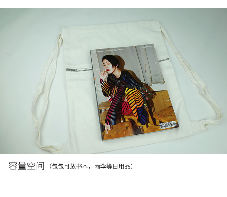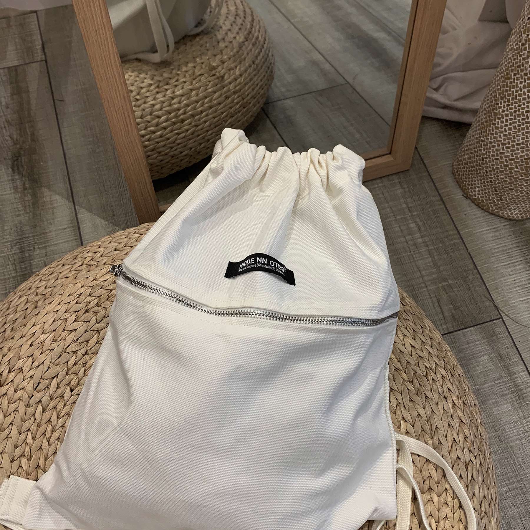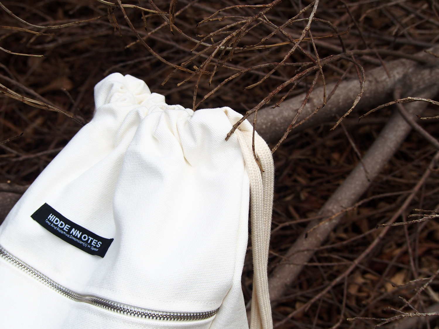 〖HIDDE NN OTES〗原创抽绳包 抽口双肩包学生书包白色帆布抽绳包