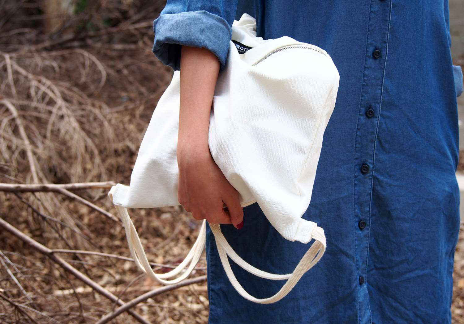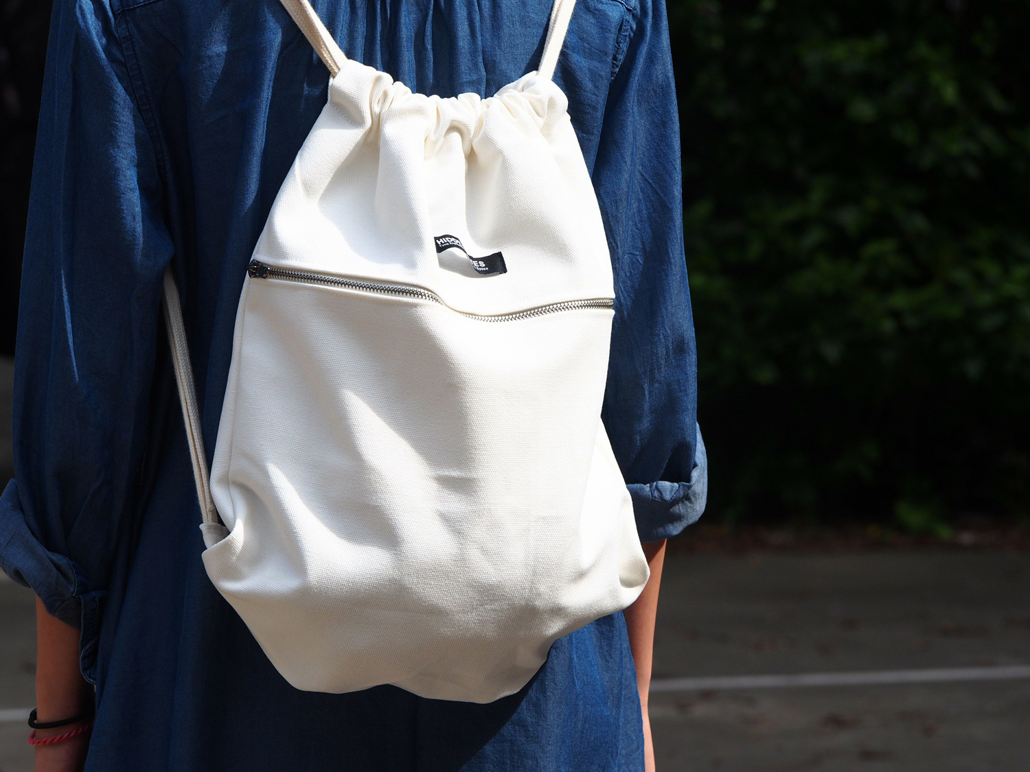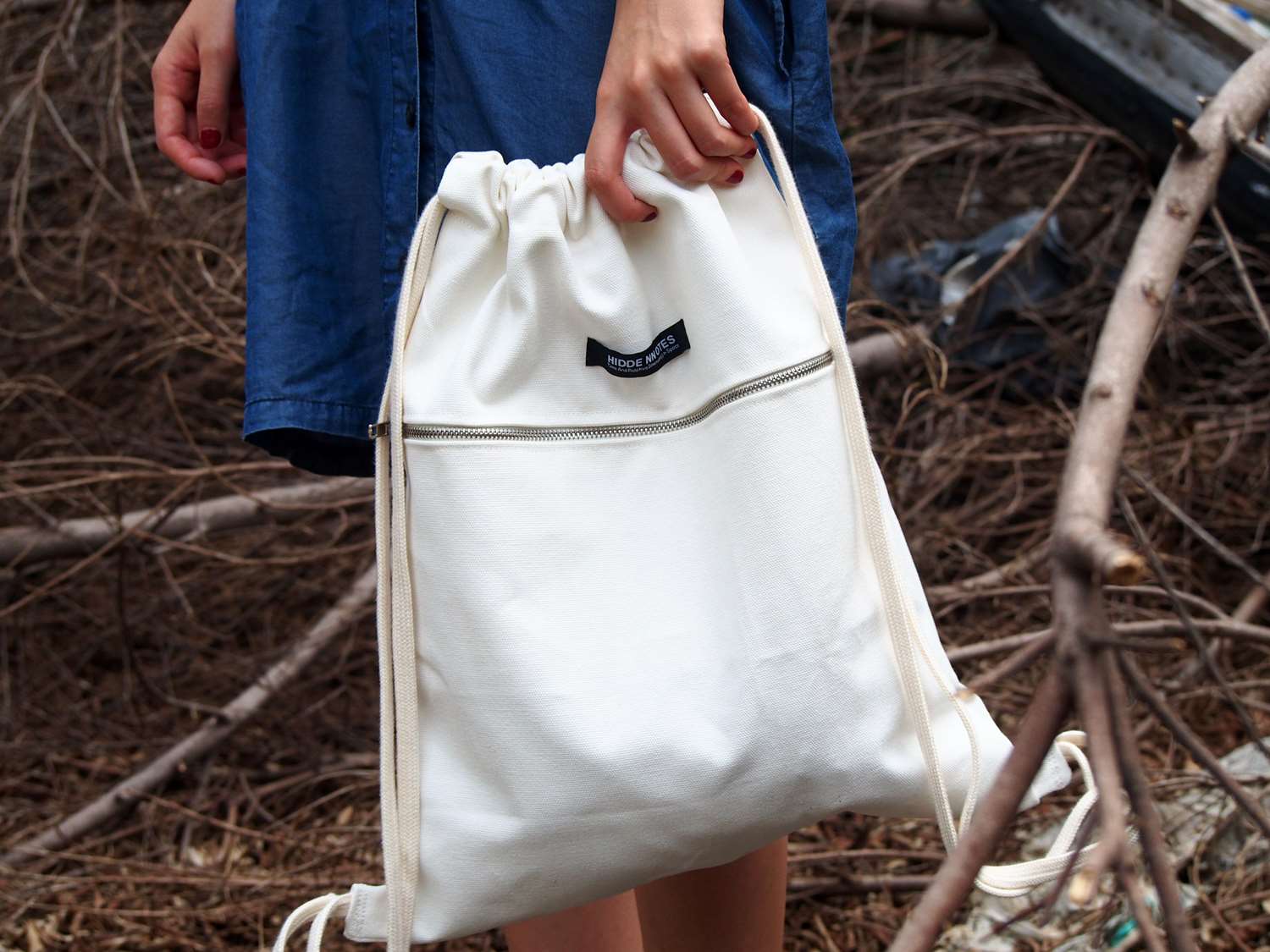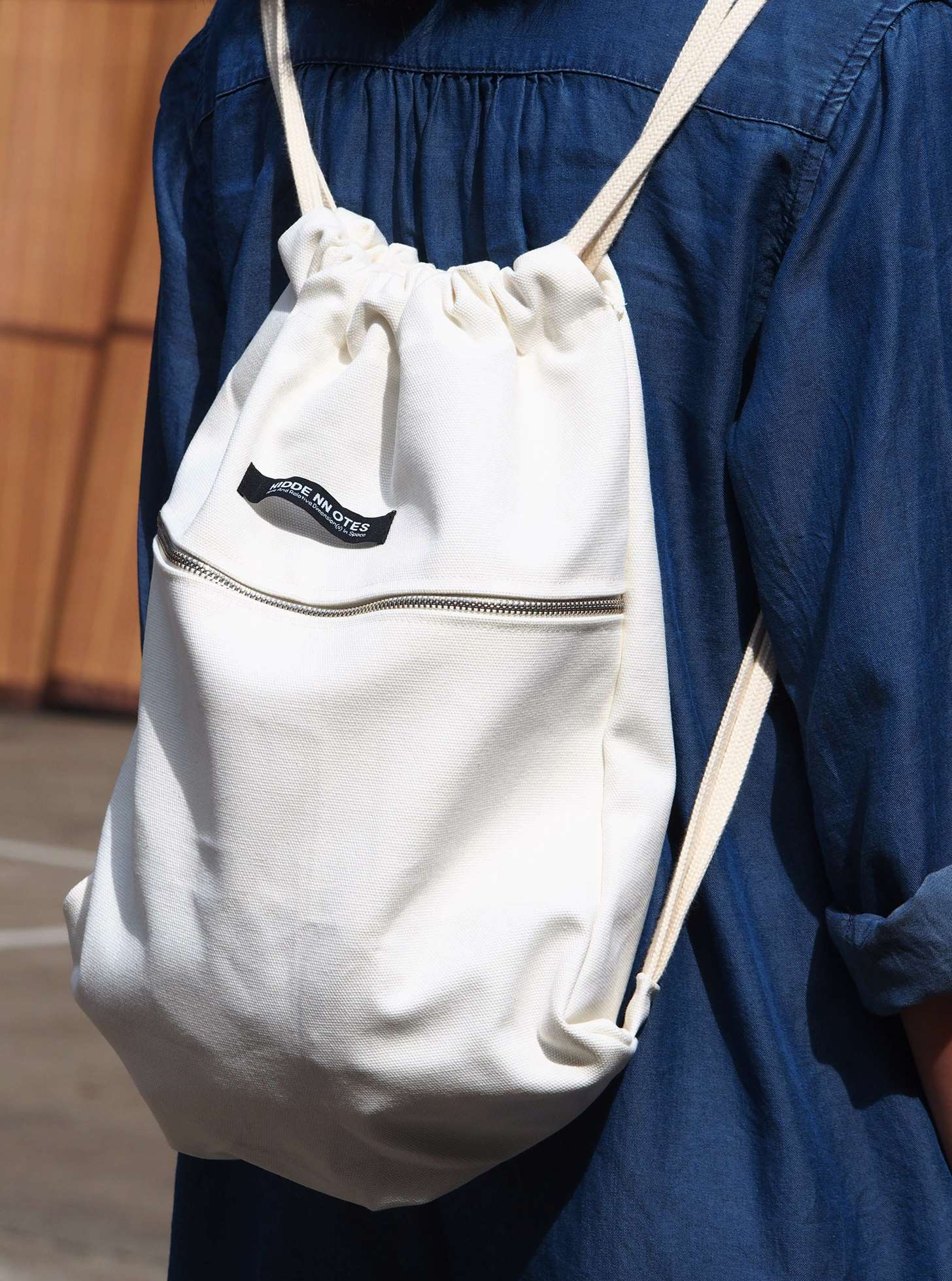 〖HIDDE NN OTES〗原创抽绳包 抽口双肩包学生书包白色帆布抽绳包