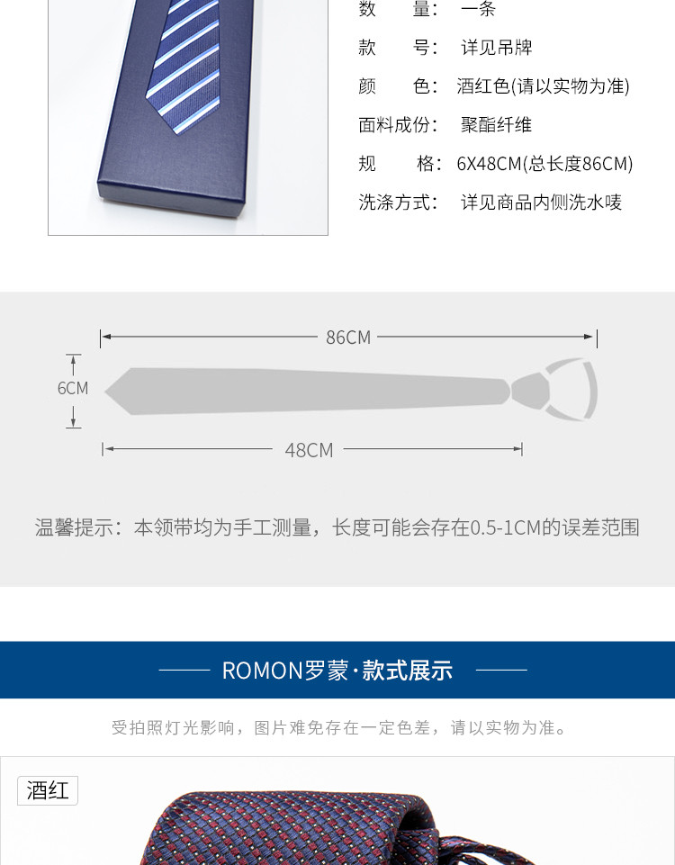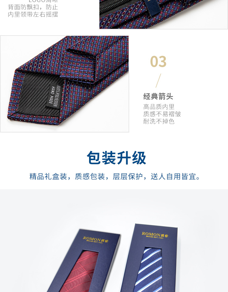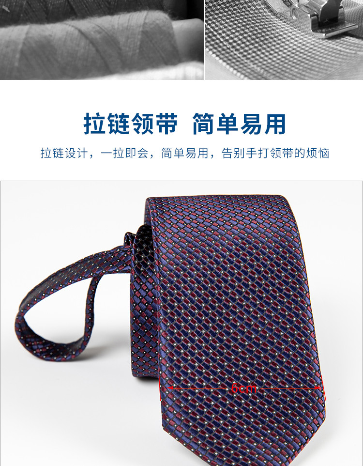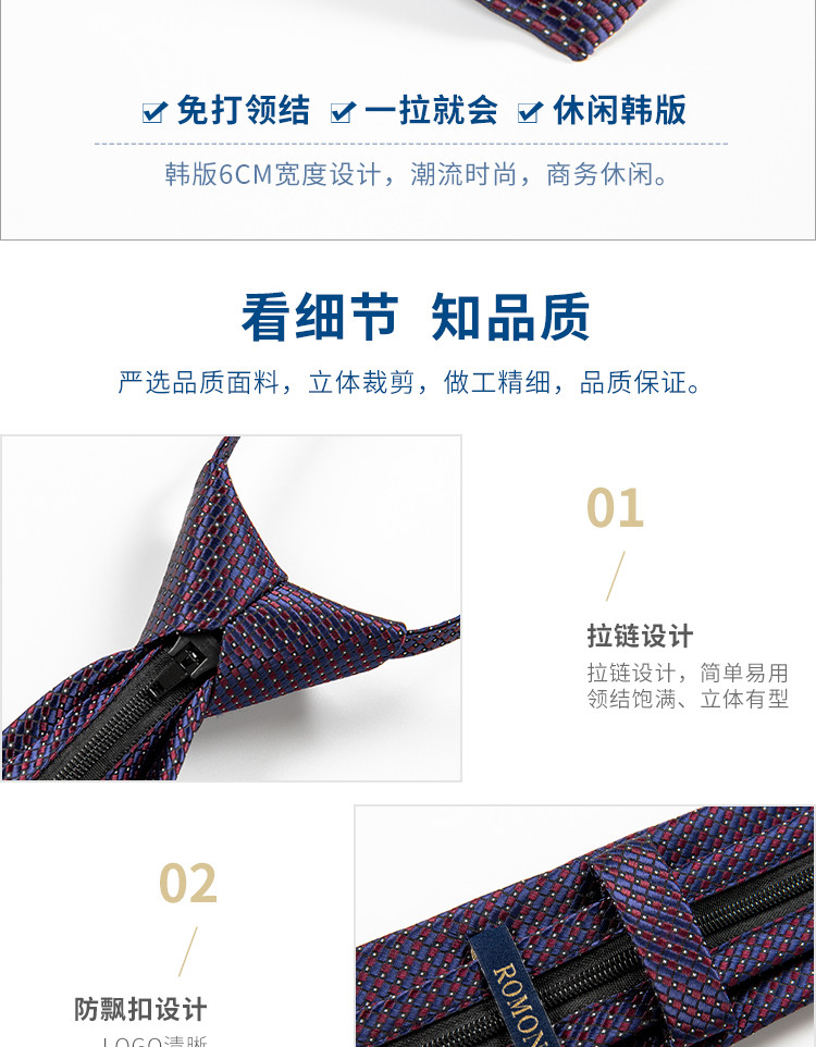 【礼盒装】罗蒙免打结拉链领带男士正装商务韩版休闲窄款懒人提花领带