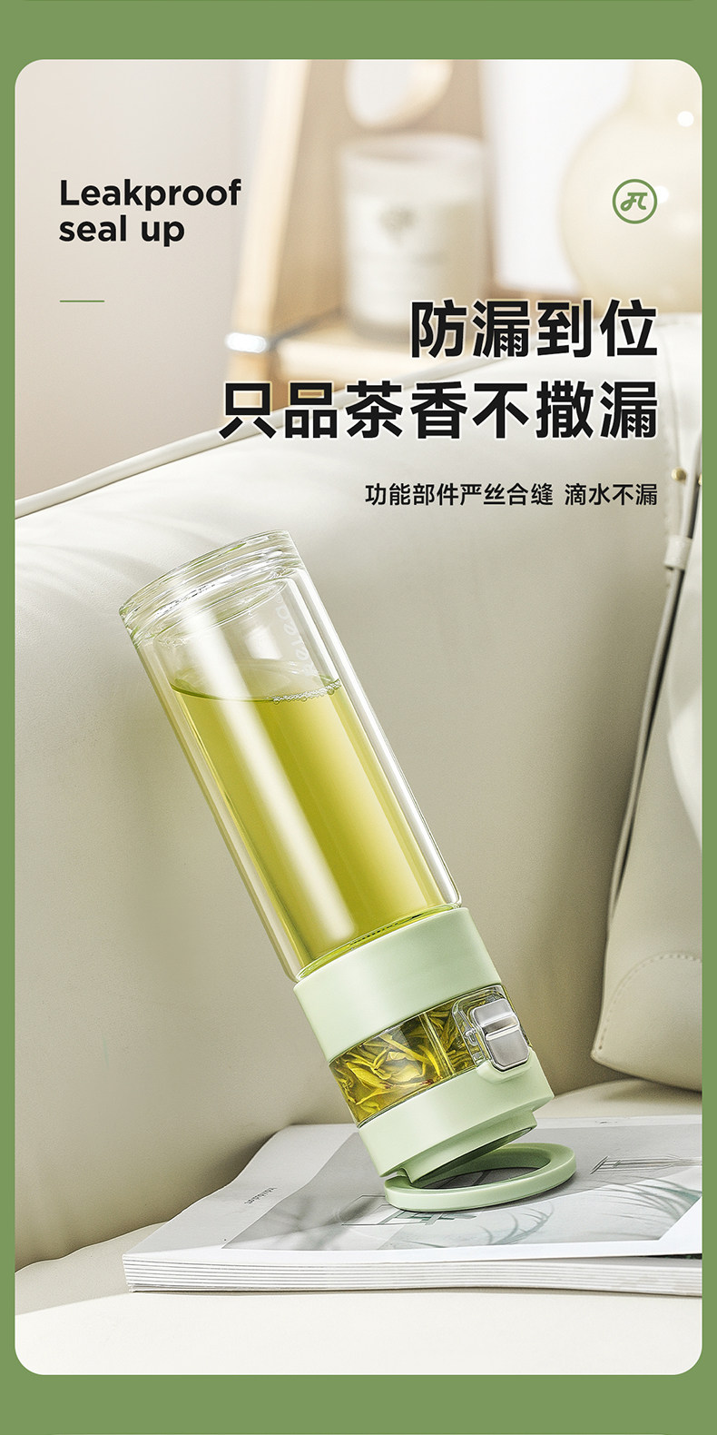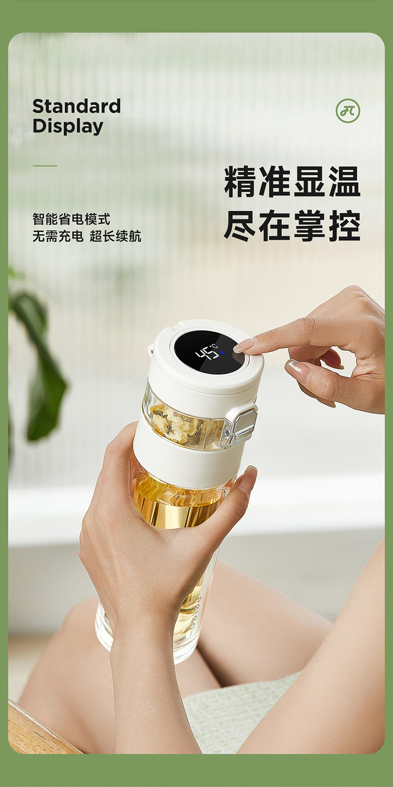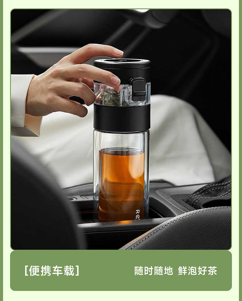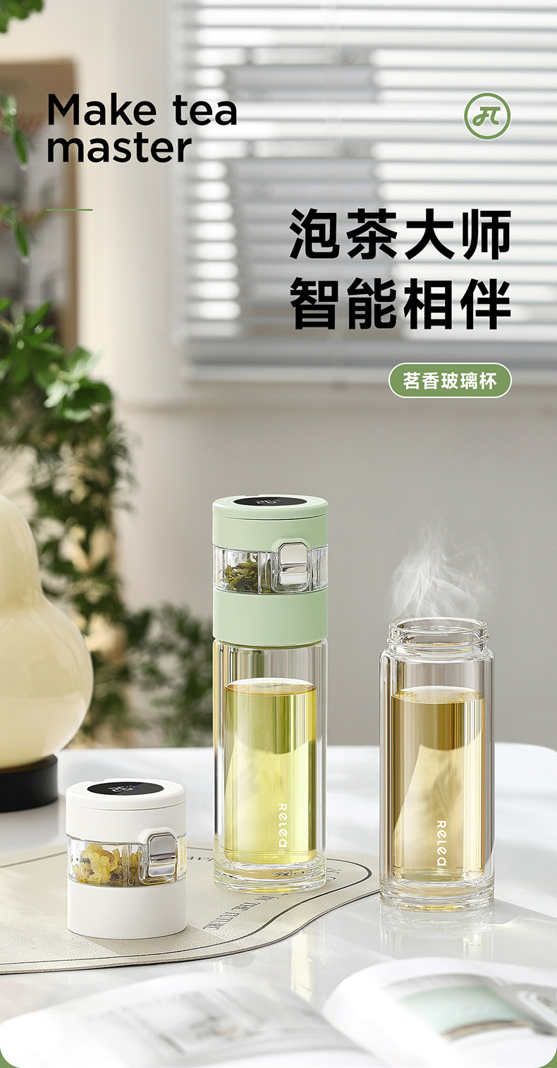 物生物-茗香黑色智能泡茶玻璃杯水杯330ML