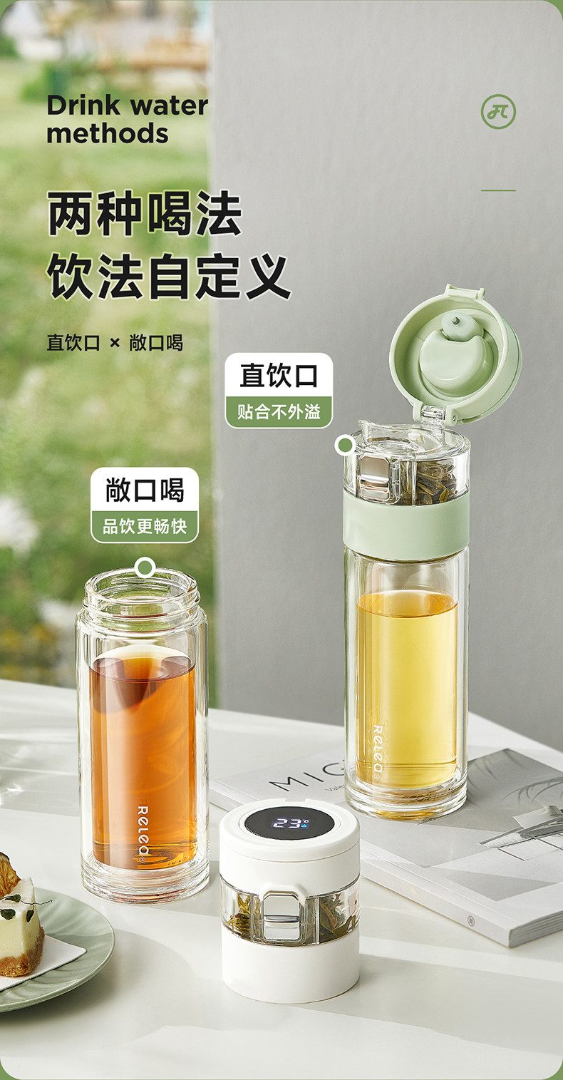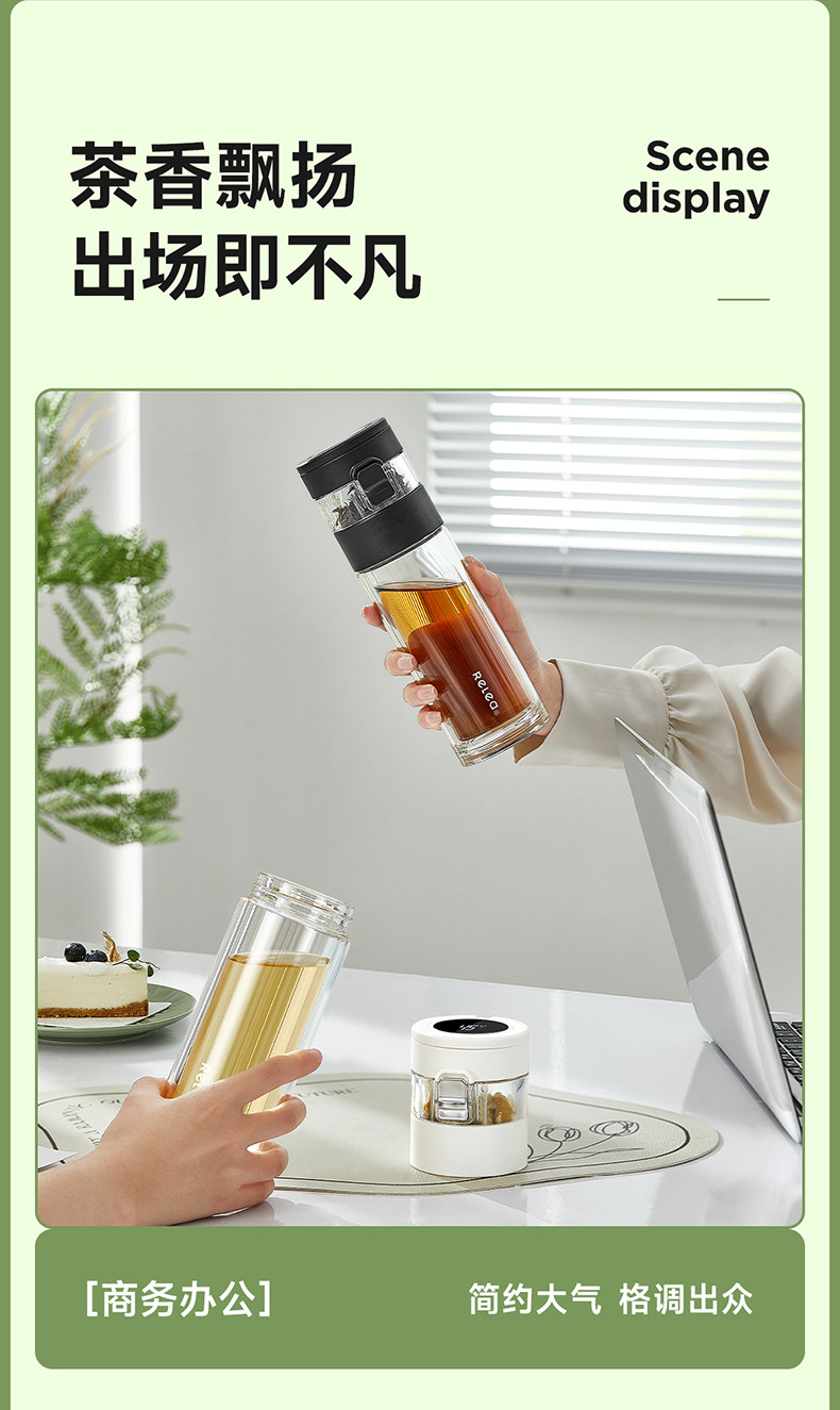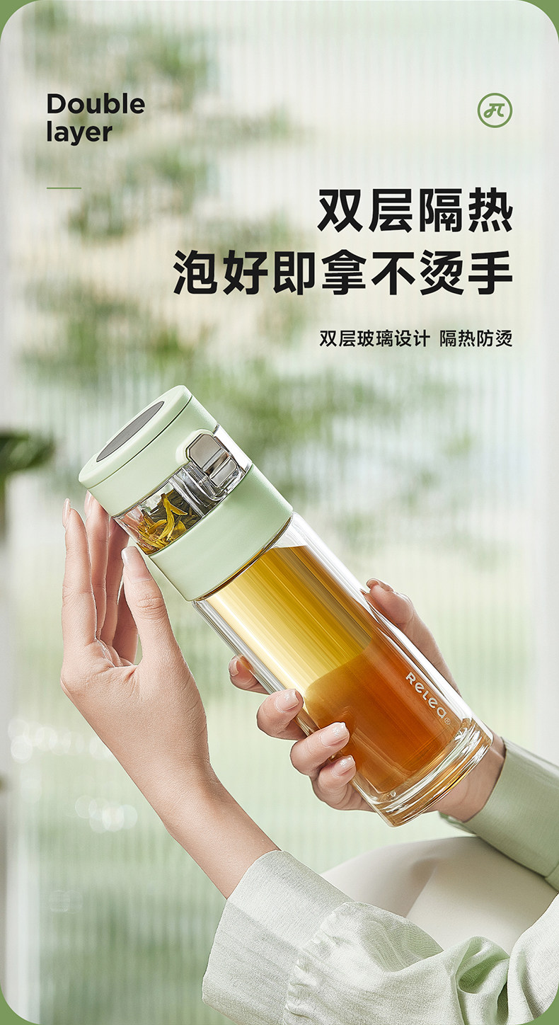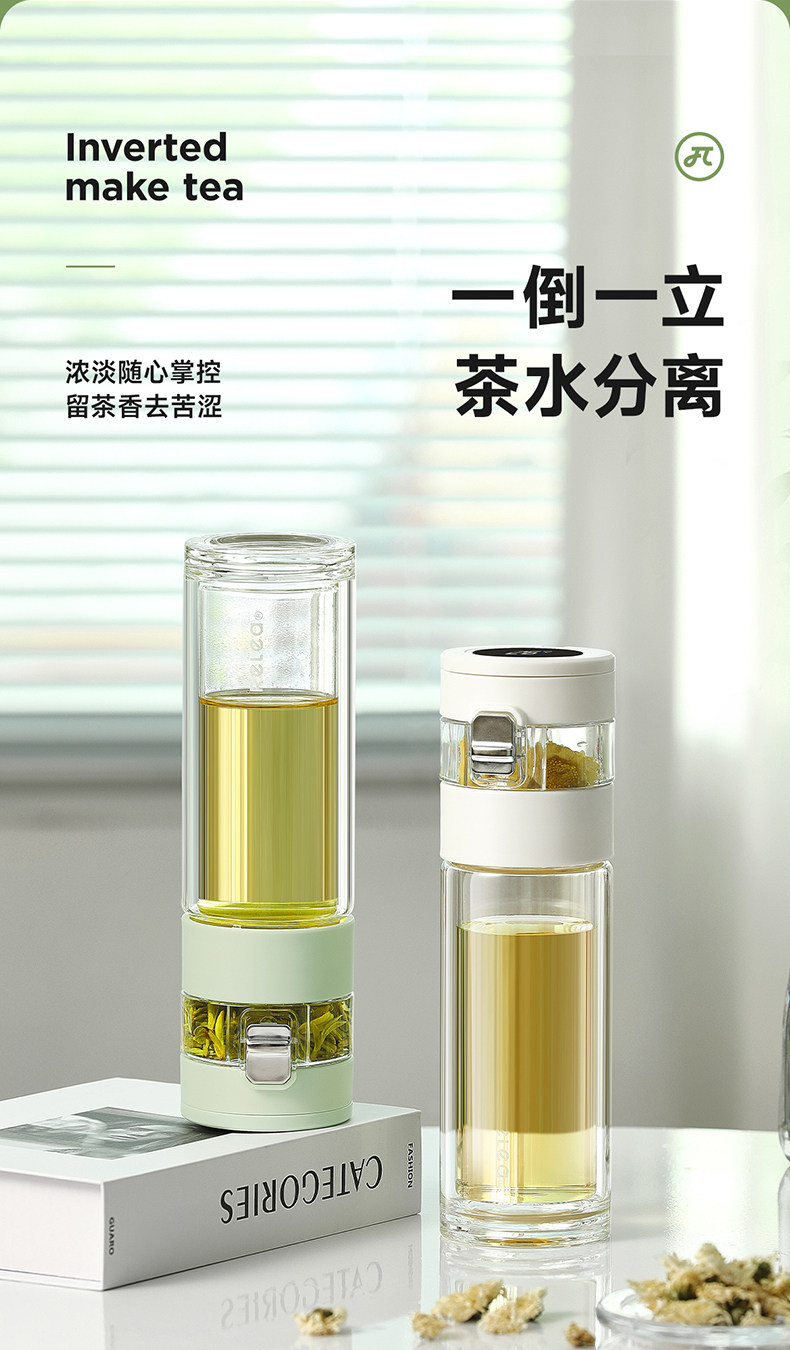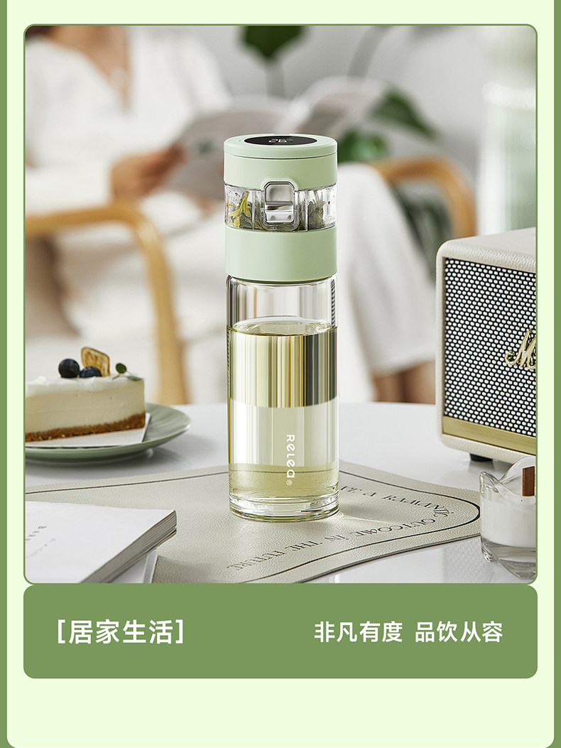 物生物-茗香黑色智能泡茶玻璃杯水杯330ML