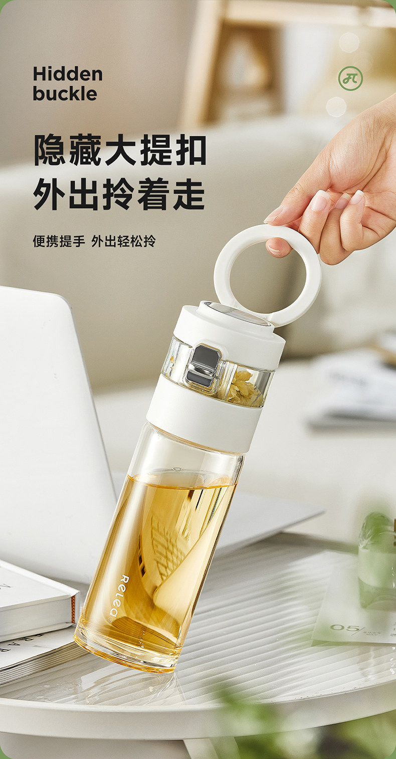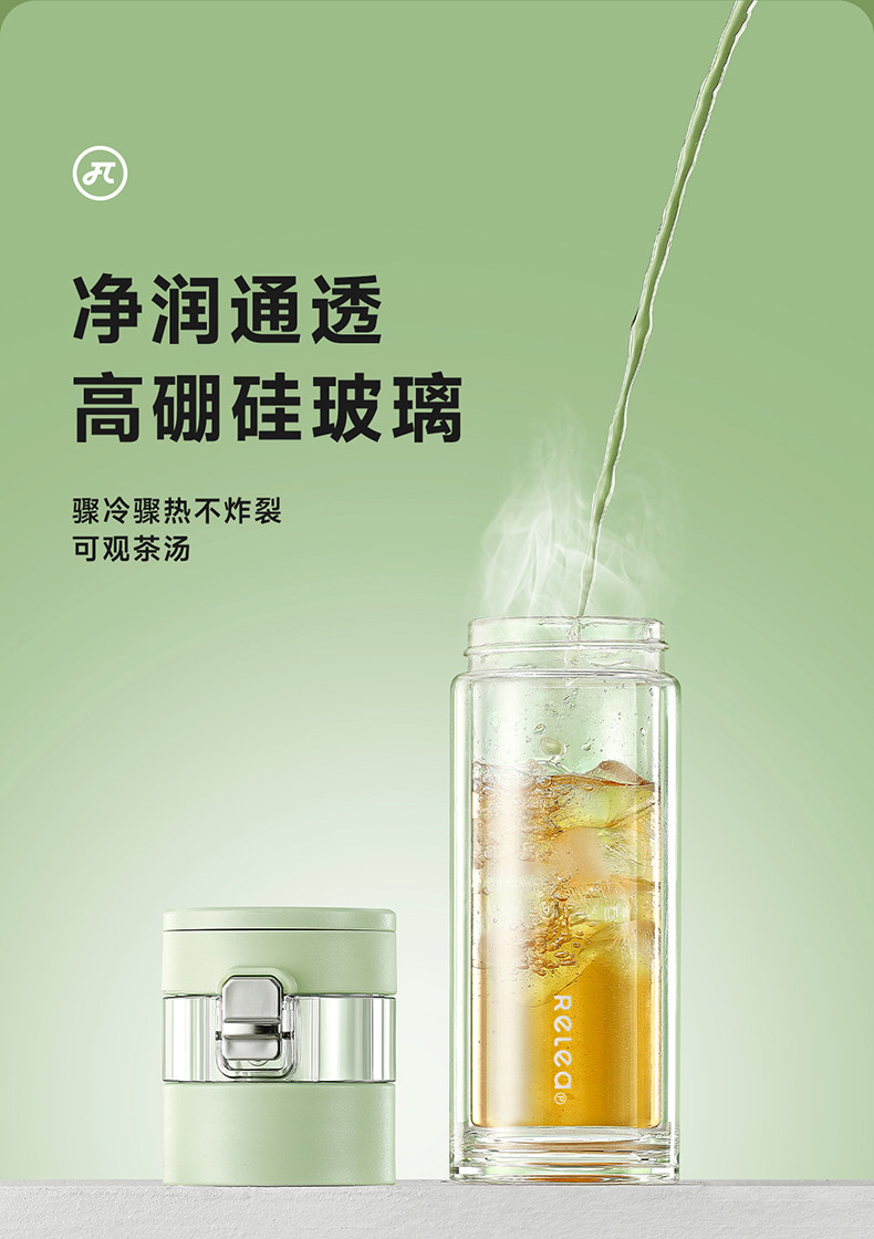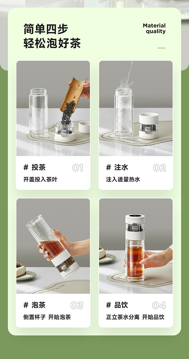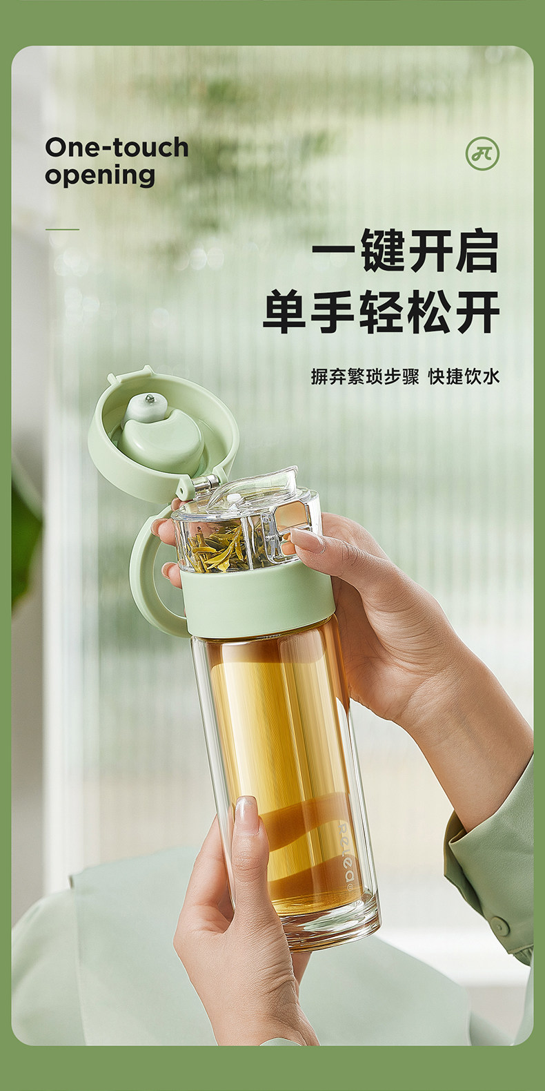 物生物-茗香黑色智能泡茶玻璃杯水杯330ML