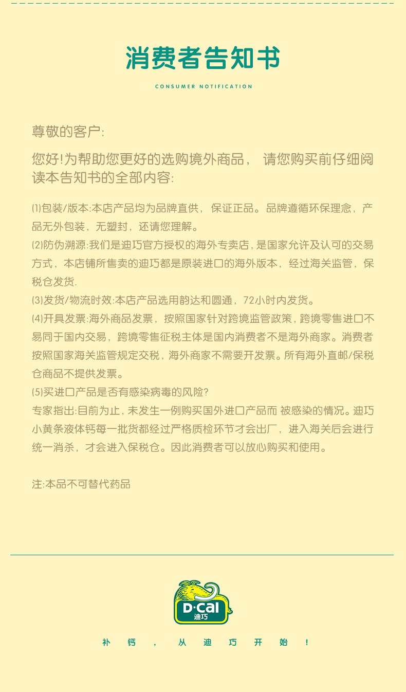 【开学季】迪巧小黄条婴幼儿童液体钙锌赖氨酸锌20条/盒-A0415
