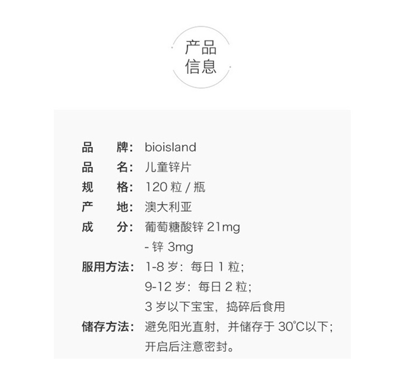 澳洲Bio Island 婴幼儿补锌咀嚼片120片