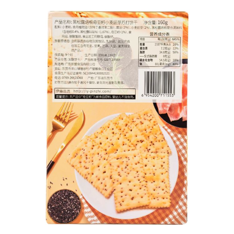 伊藤品质黑松露培根奇亚籽小麦胚芽苏打饼干160g/盒