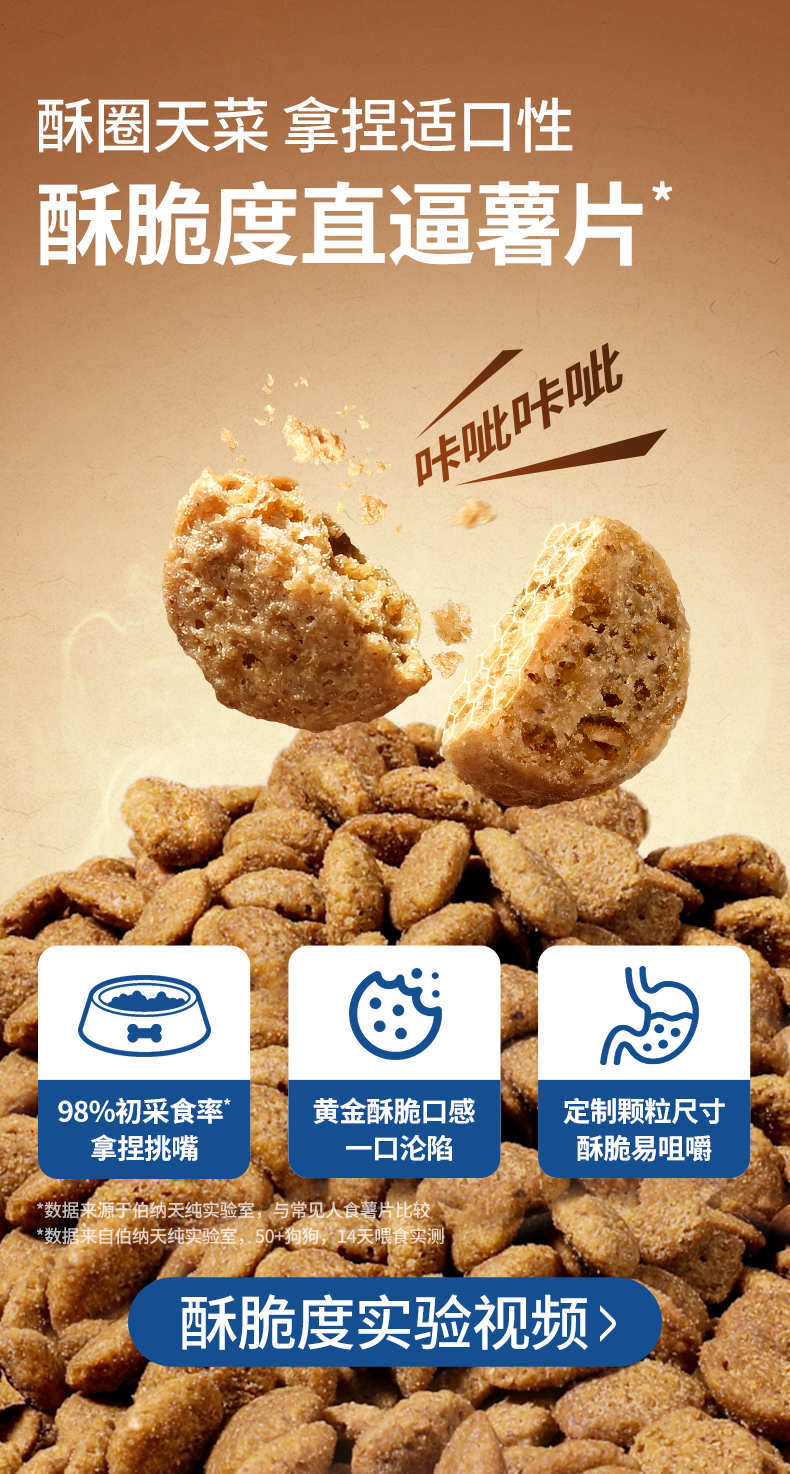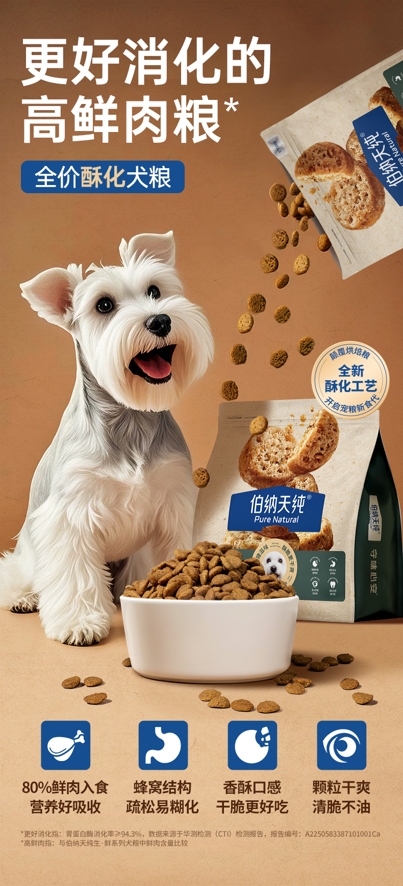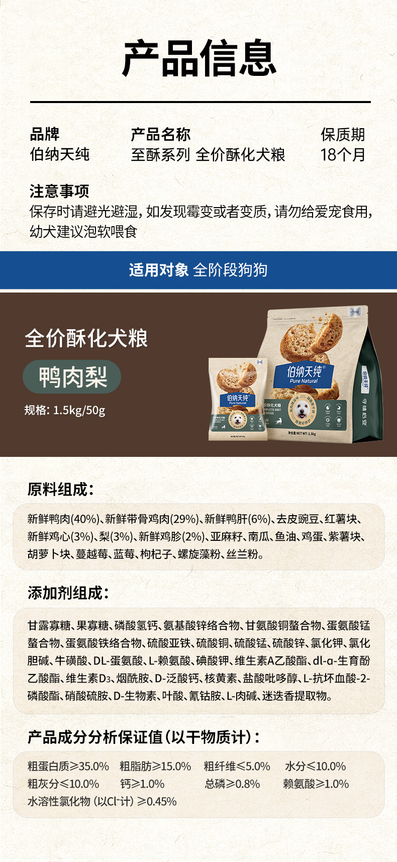 【囤货装】伯纳天纯酥化犬粮全价高鲜肉粮酥脆好消化鸭肉梨泪痕管理1.5kg*4