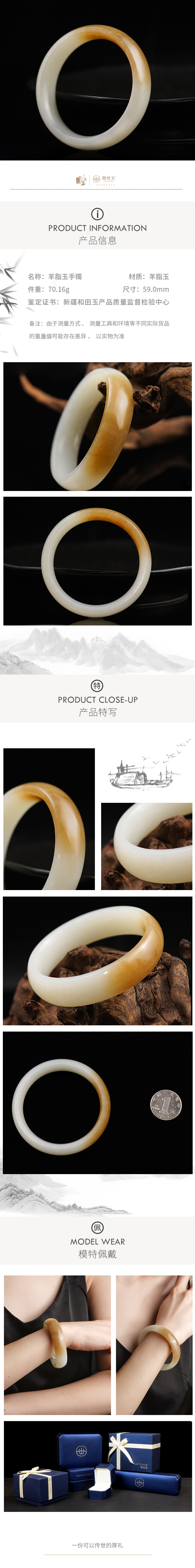 新疆国玉盟世玉和田玉糖羊脂玉手镯59圈口【带证书·顺丰物流】