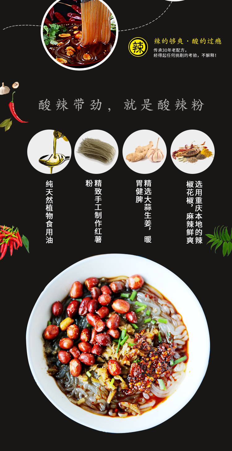 重庆特产【柱头杂酱酸辣粉310g】袋装非油炸粉丝米线手工鲜粗粉条