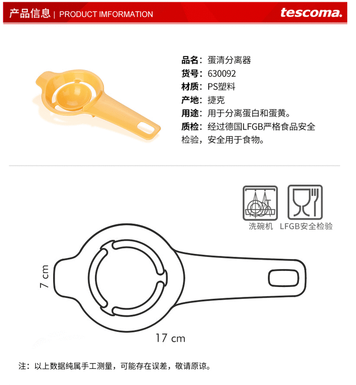 捷克进口/tescoma 蛋清分离器分蛋器蛋液过滤器隔蛋器