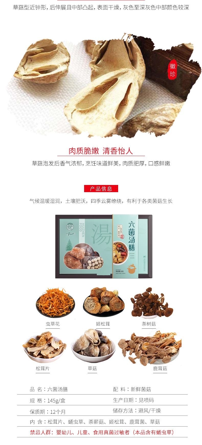 新鲜菌菇晾晒 六味菌汤膳145g盒装