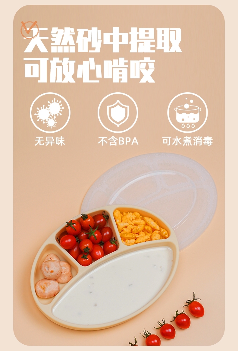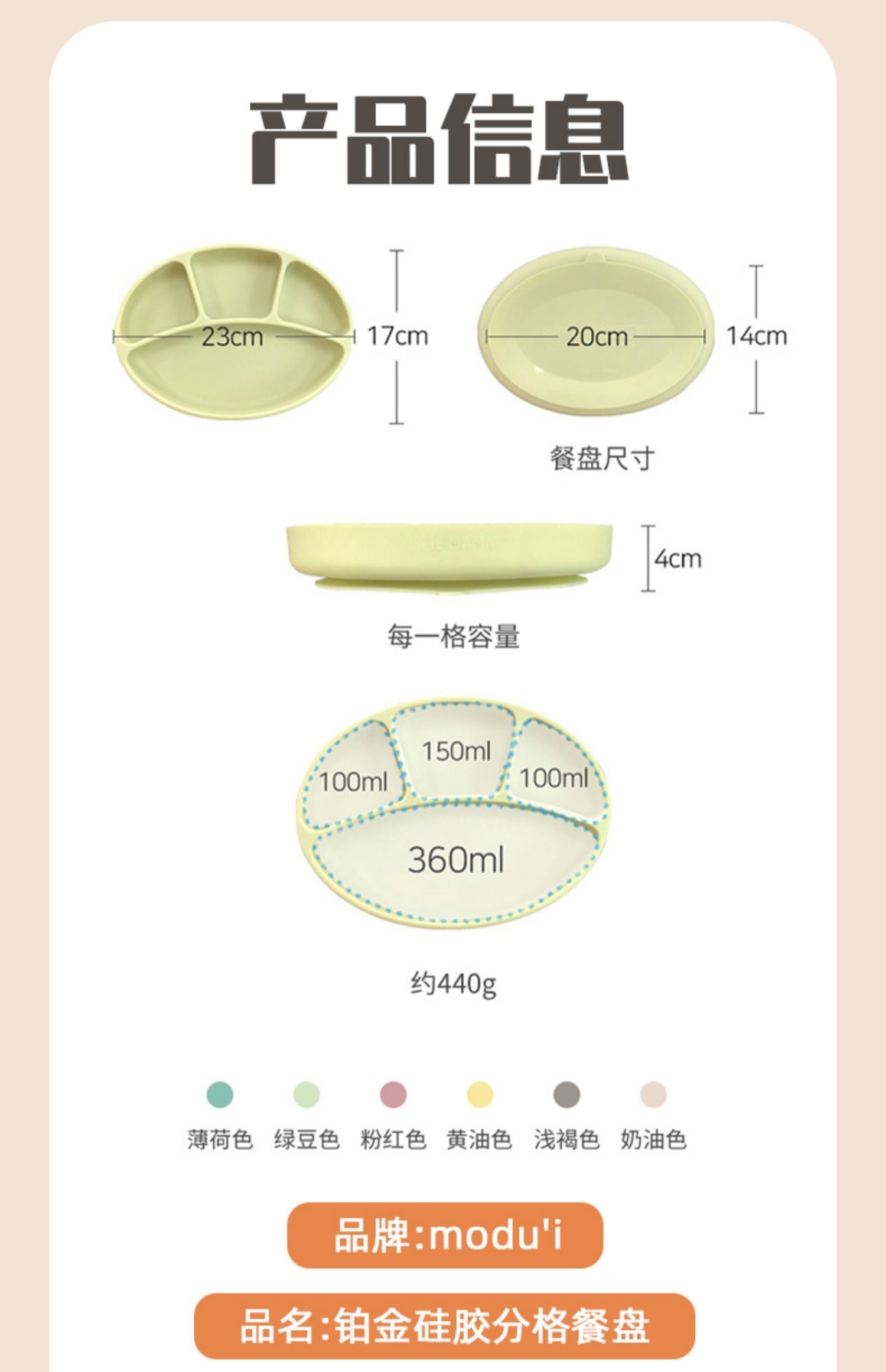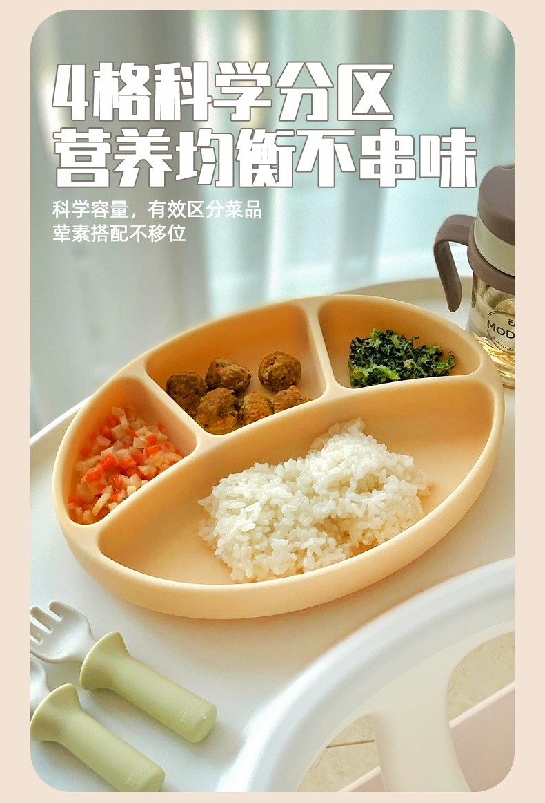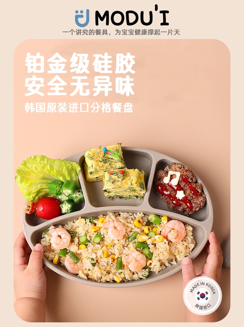 韩国进口modui一体式分隔吸盘儿童餐盘硅胶婴儿辅食碗