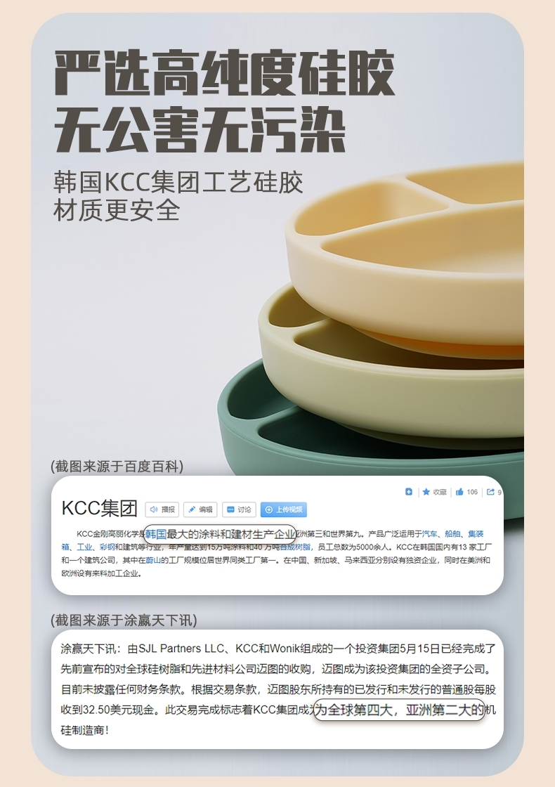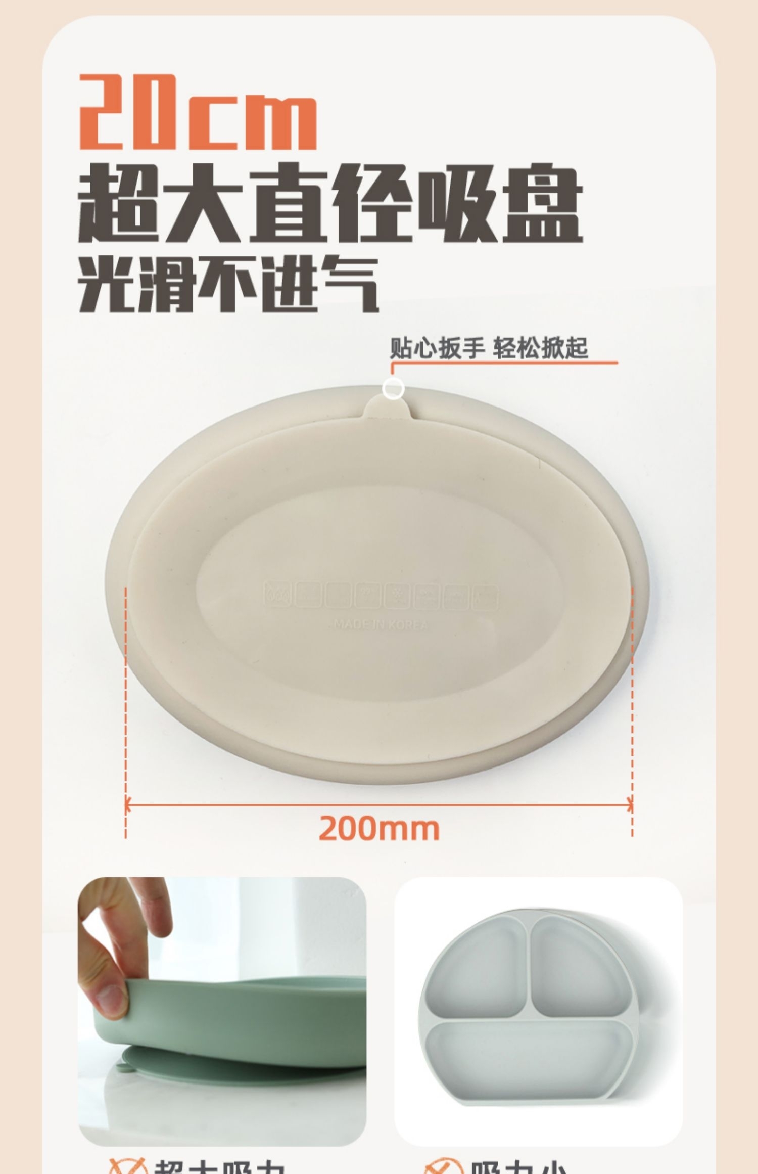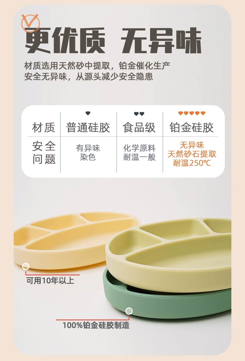 韩国进口modui一体式分隔吸盘儿童餐盘硅胶婴儿辅食碗