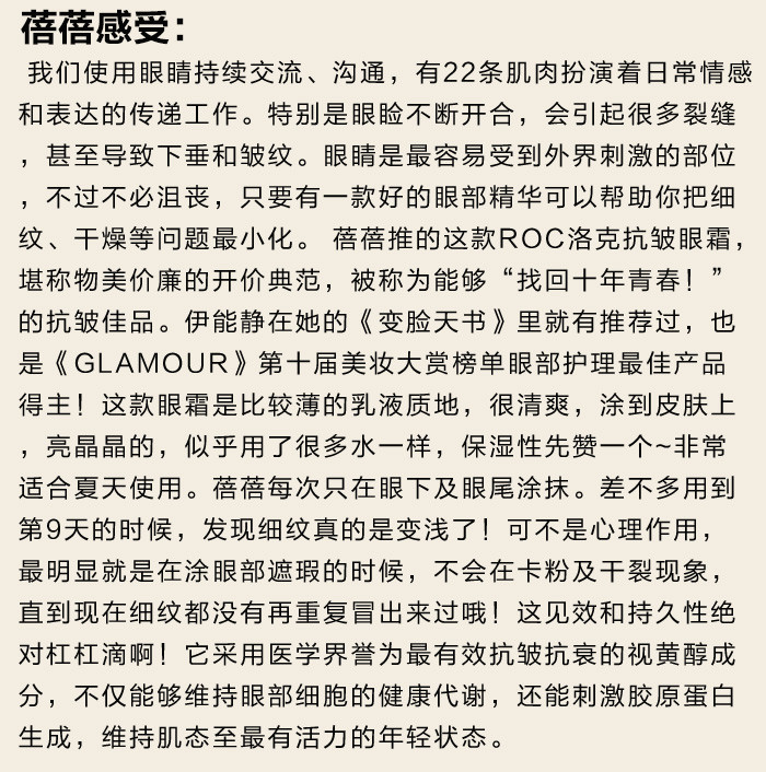 【商品名称】ROC A醇维A视黄醇抗皱眼霜15ml