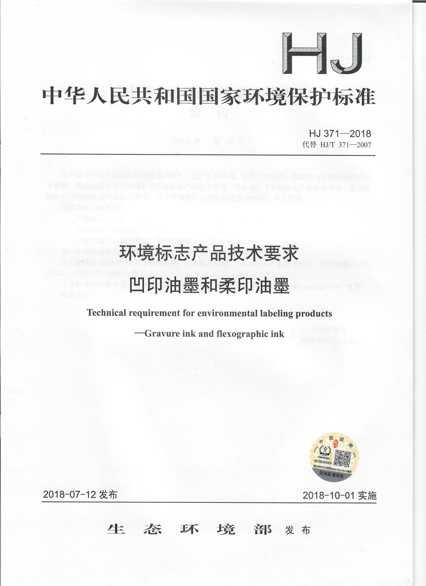 HJ 371-2018 环境标志产品技术要求凹印油墨和柔印油墨