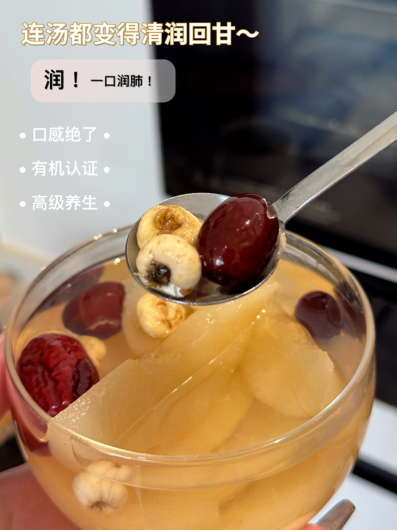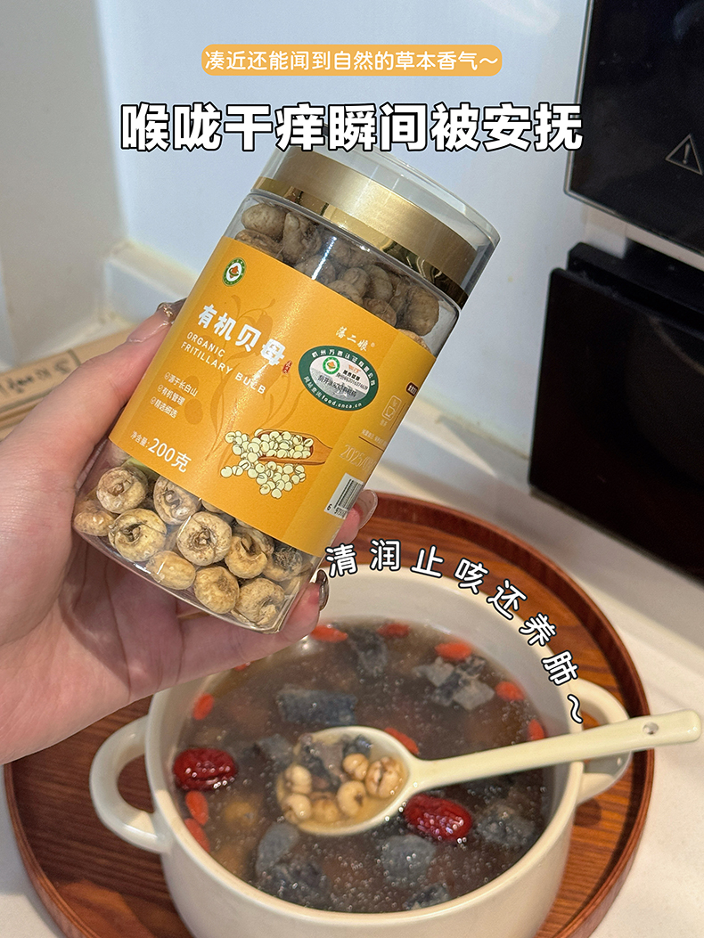 看这长白山有机贝母,和雪梨、红枣炖得软糯清甜