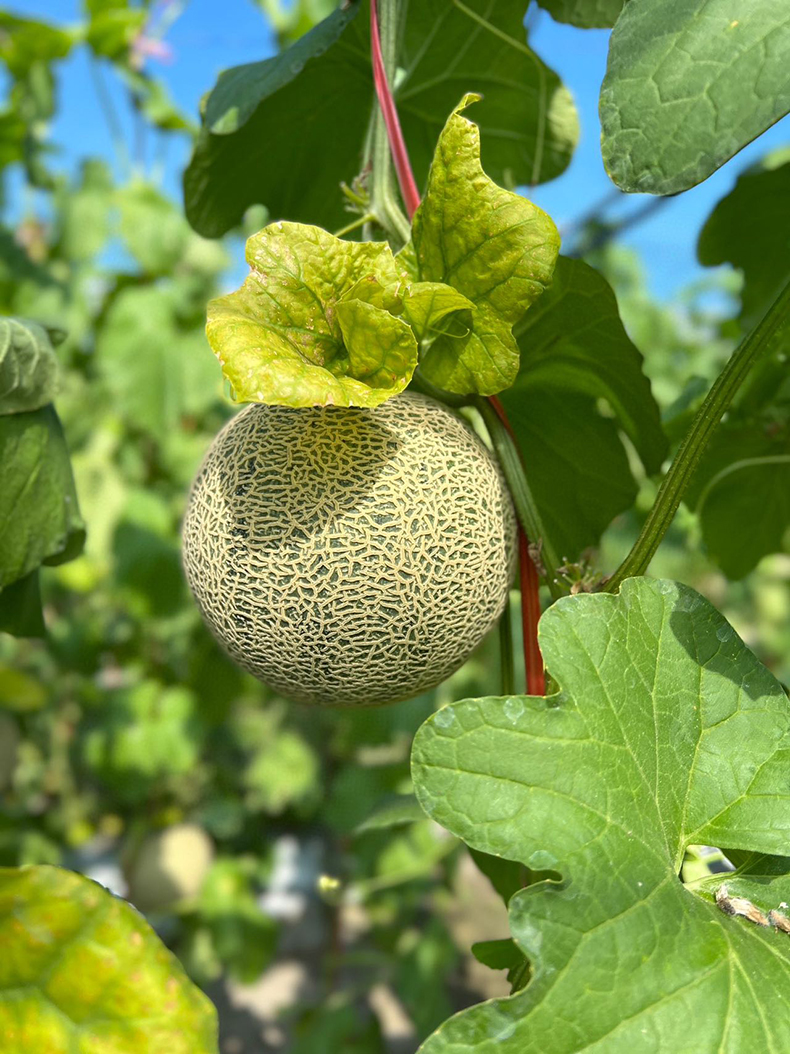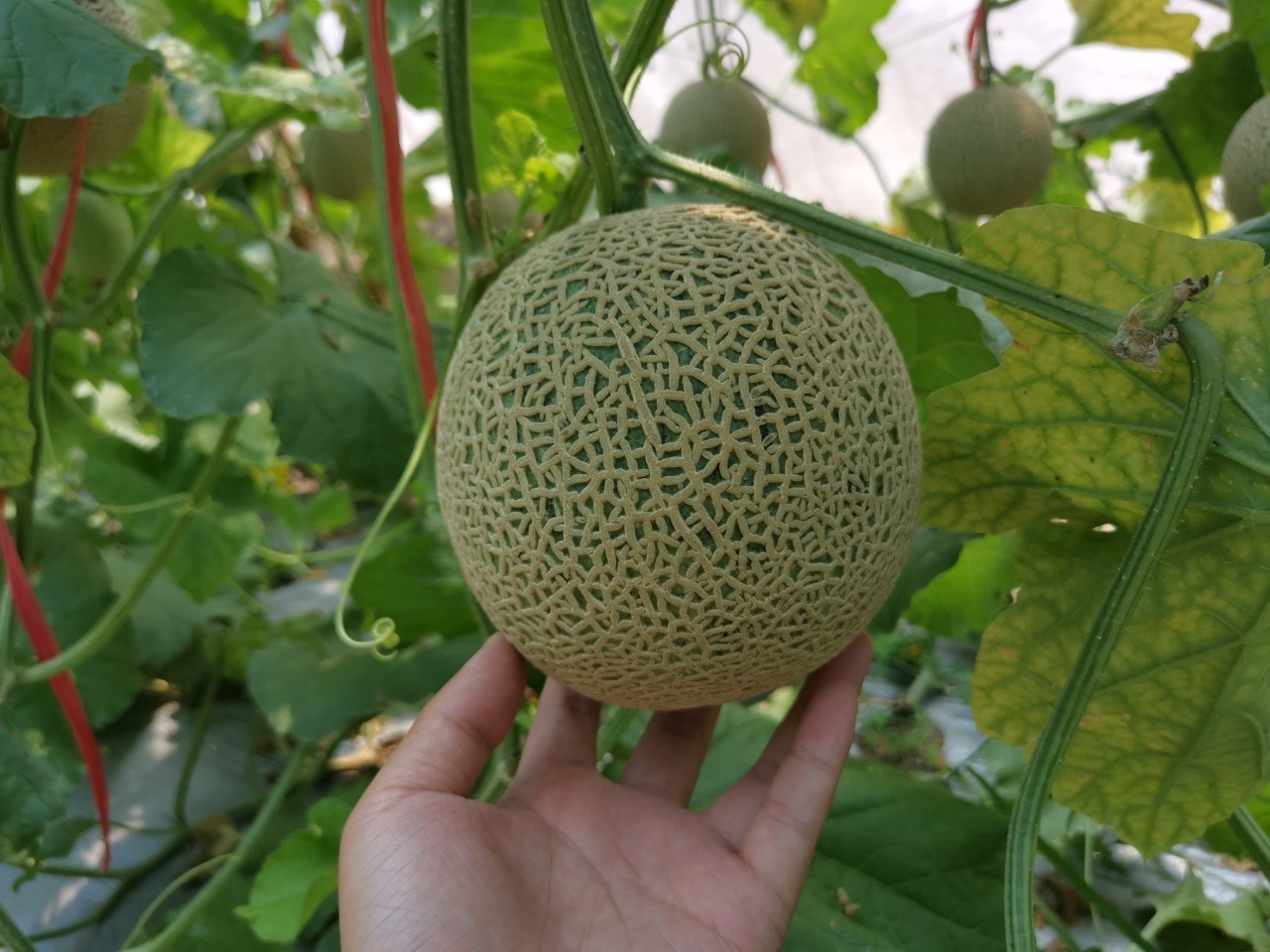 基地采用标准高架大棚,有利于空气的流通,光照充足,热量丰富,非常适合瓜的糖分积累。