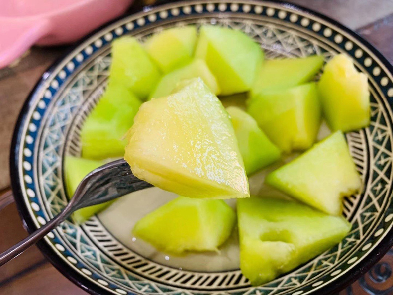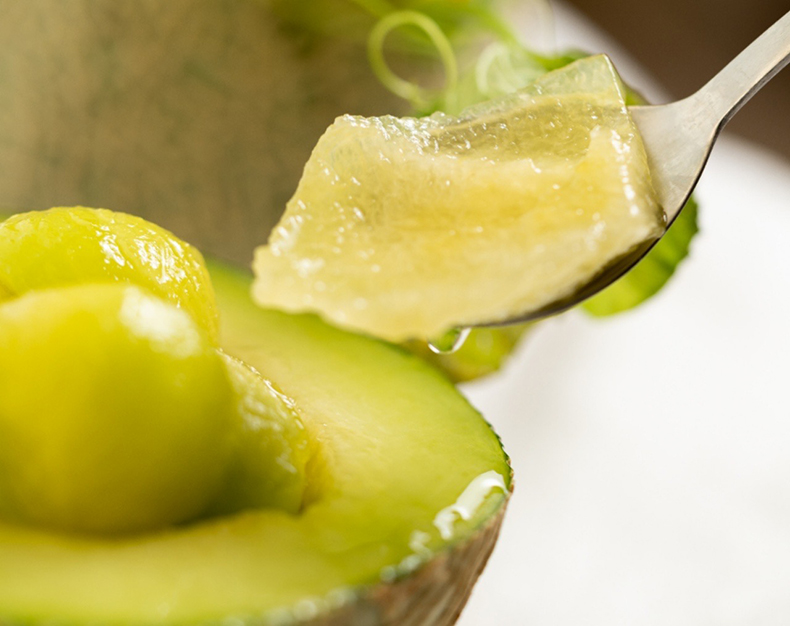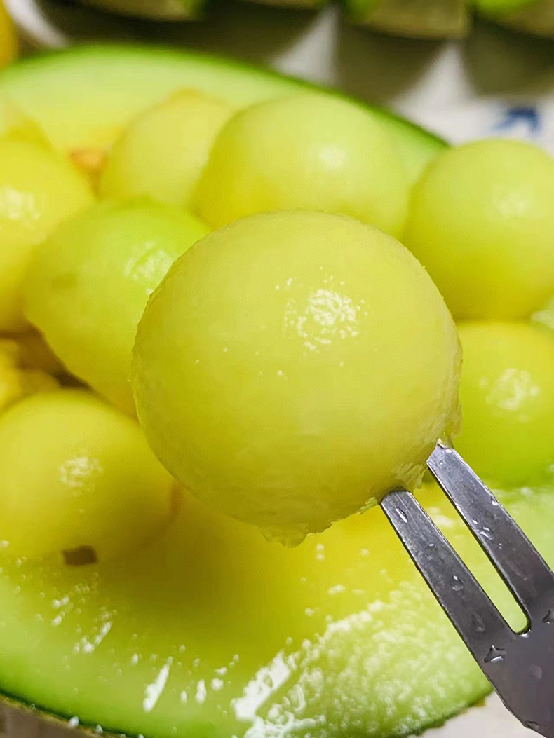 勺子轻轻一挖便可分离出来一个小圆球,放上一根吸管和一个勺子,一口果汁一口肉,软糯中带着香甜!