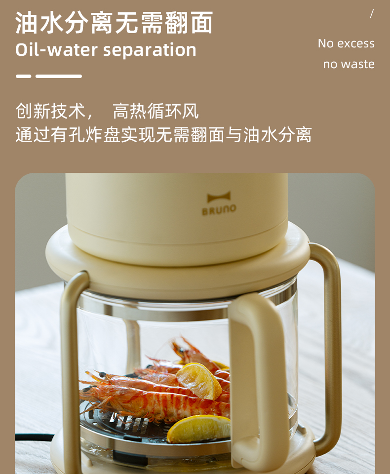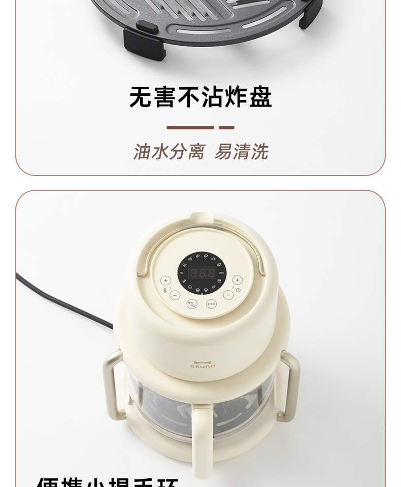 】BRUNO进口空气炸锅】家用可透视化电炸锅多功能一体免翻面无油炸锅