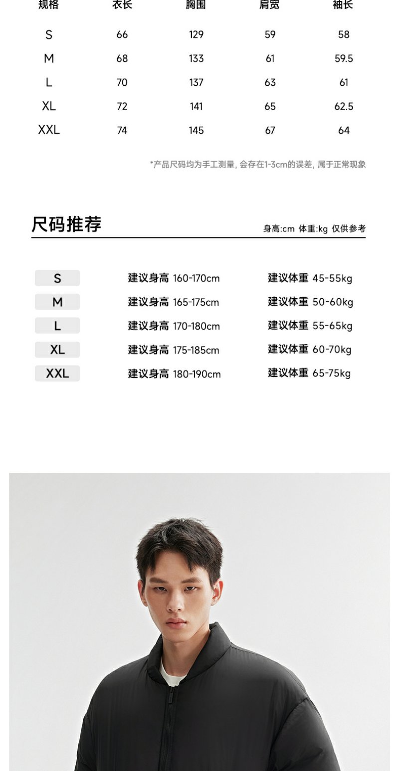 CHINISM赤尘 飞行员夹克羽绒服男冬季美式短款加厚男士外套