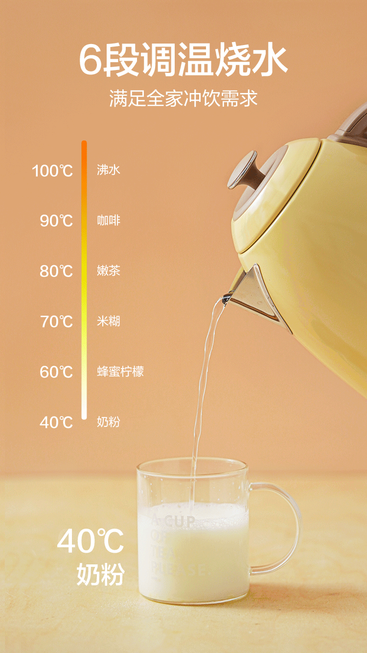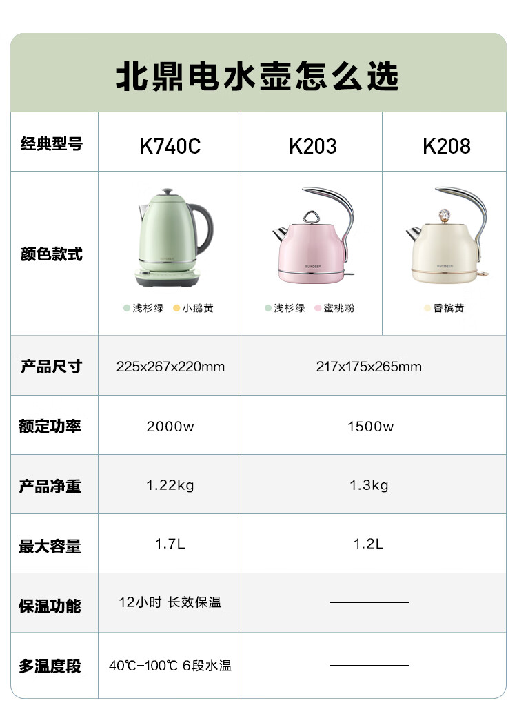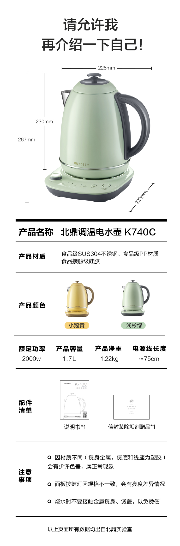 【小家电】北鼎炫彩304不锈钢调温电水壶K740CHF