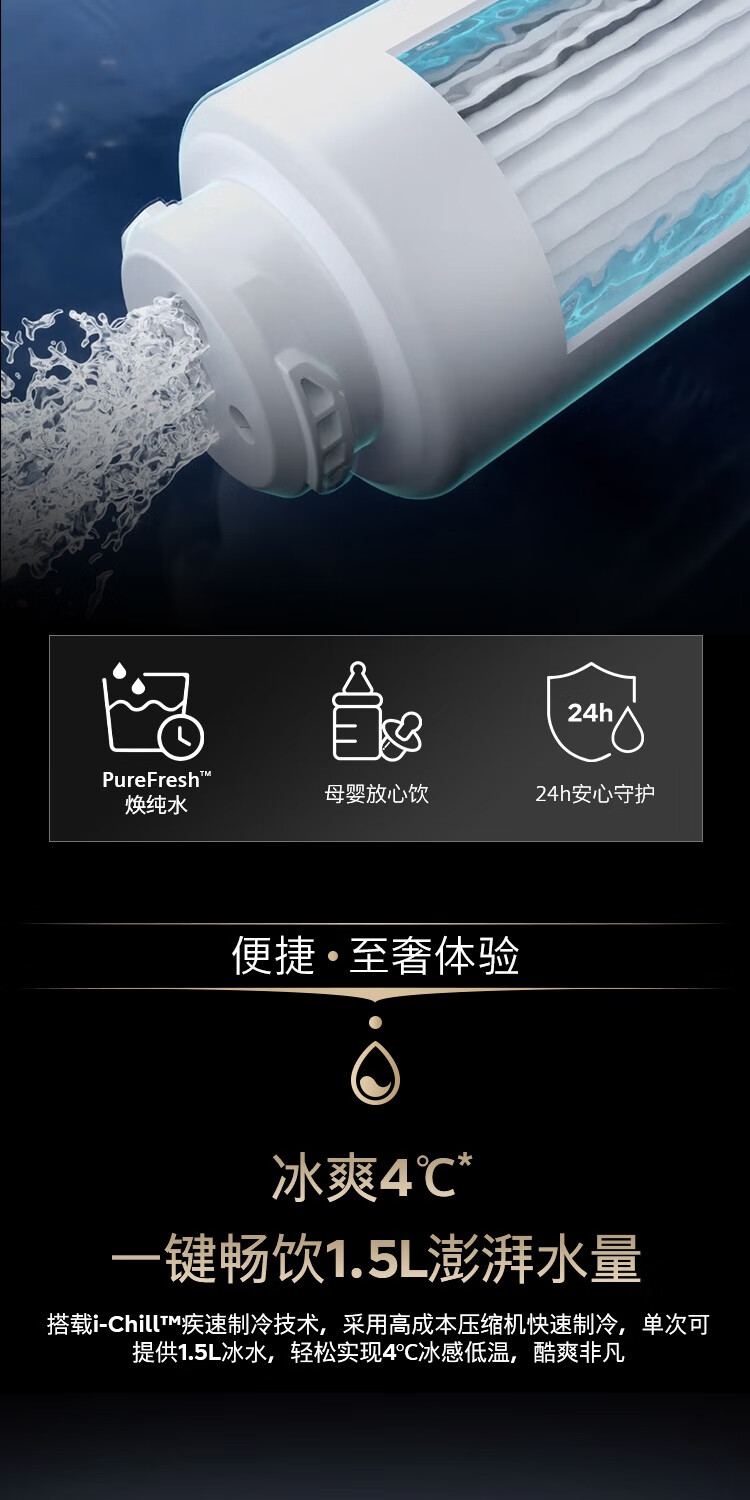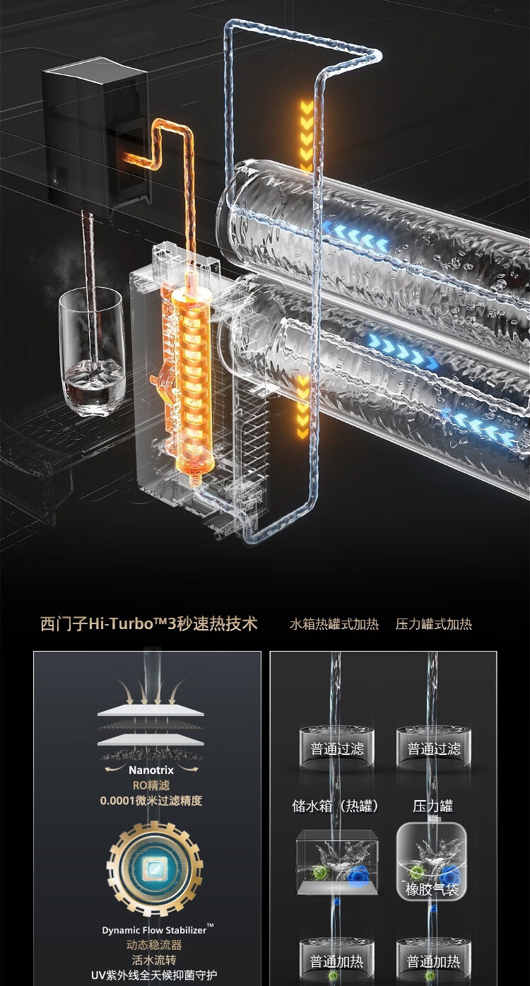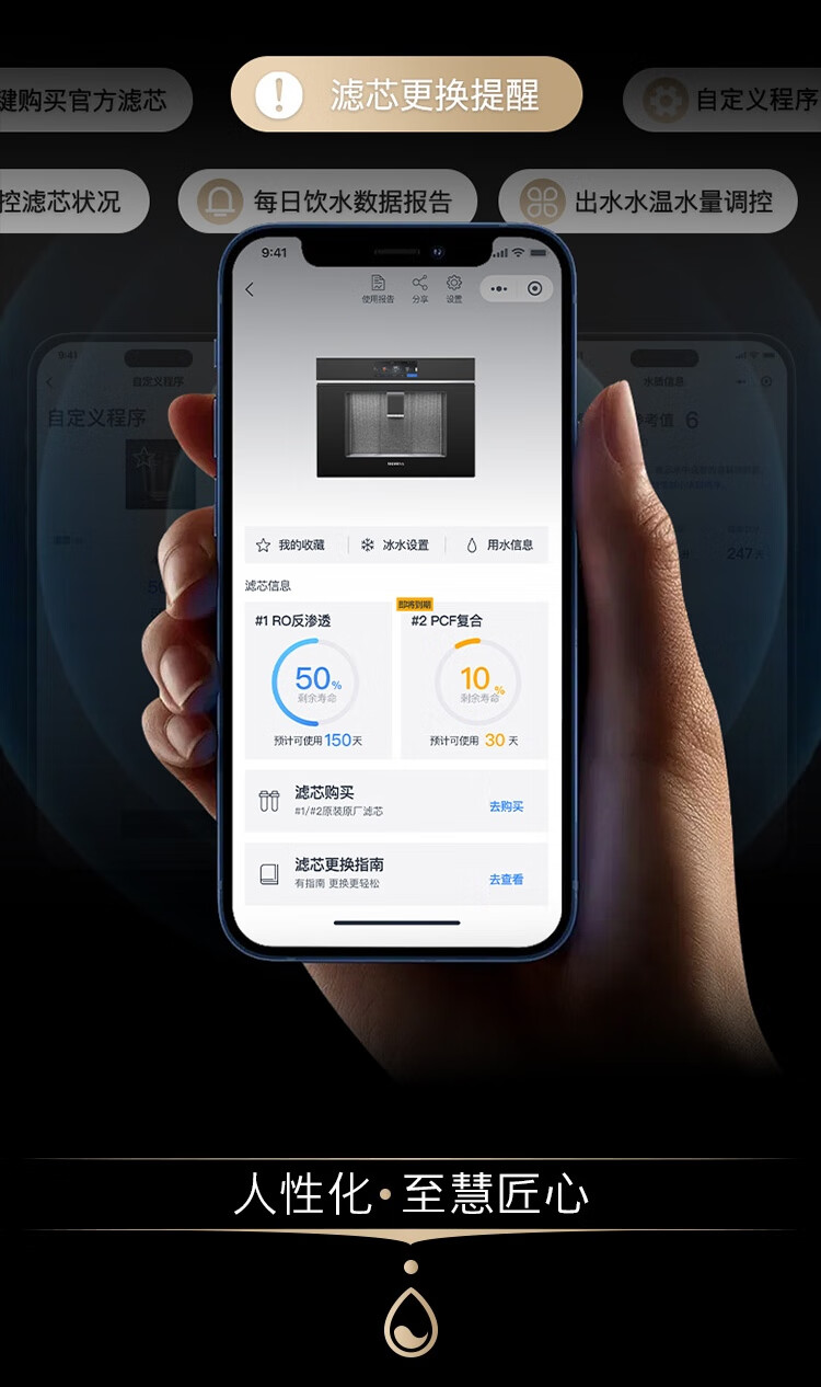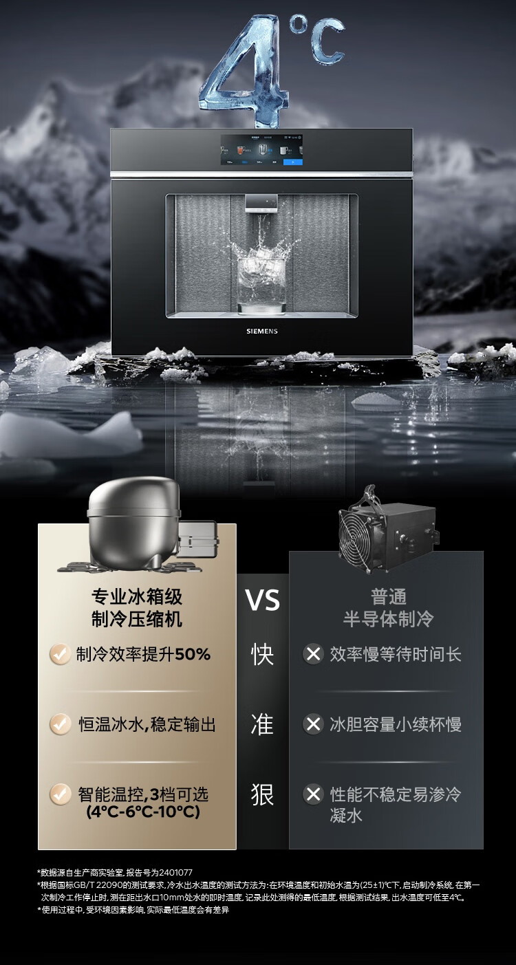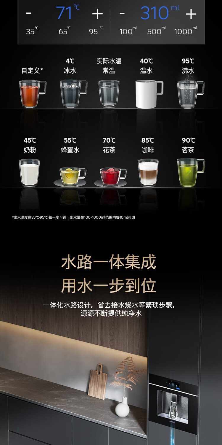 西门子(SIEMENS)【水玲珑】700Pro嵌饮机冰热款 嵌入式家用直饮机RO反渗透 6.86英寸触控屏 饮水生活用水二合一 WS7060BC1C曜石黑