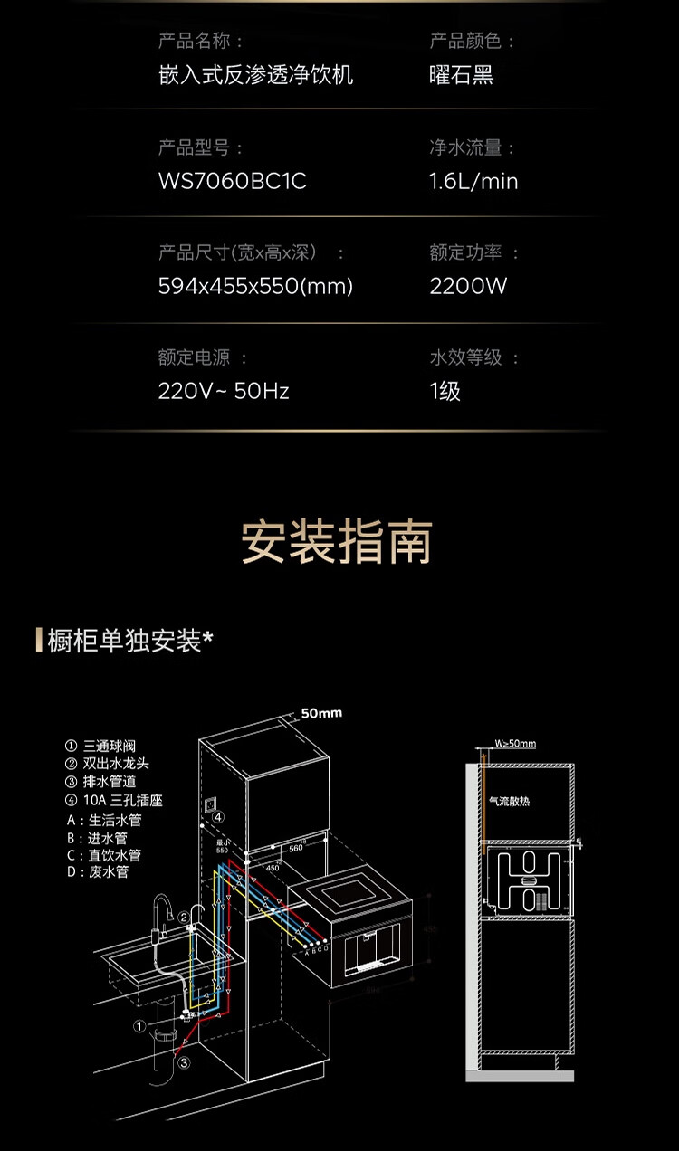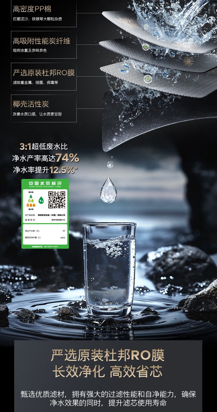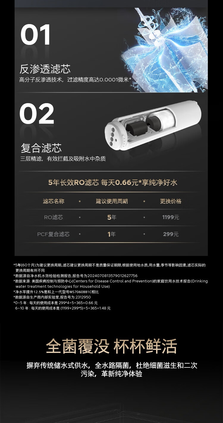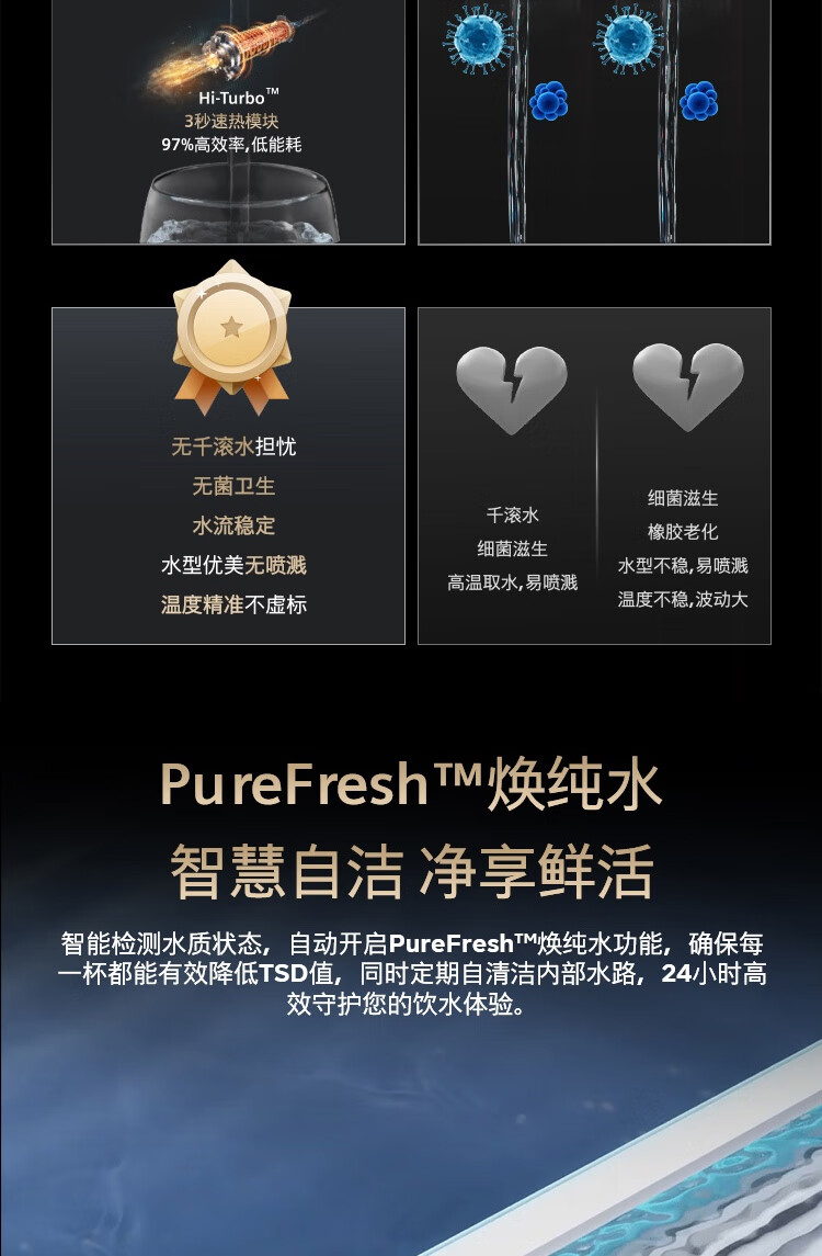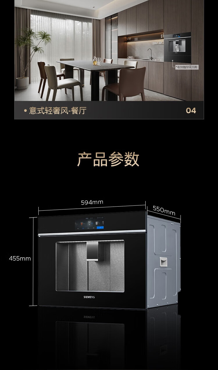西门子(SIEMENS)【水玲珑】700Pro嵌饮机冰热款 嵌入式家用直饮机RO反渗透 6.86英寸触控屏 饮水生活用水二合一 WS7060BC1C曜石黑