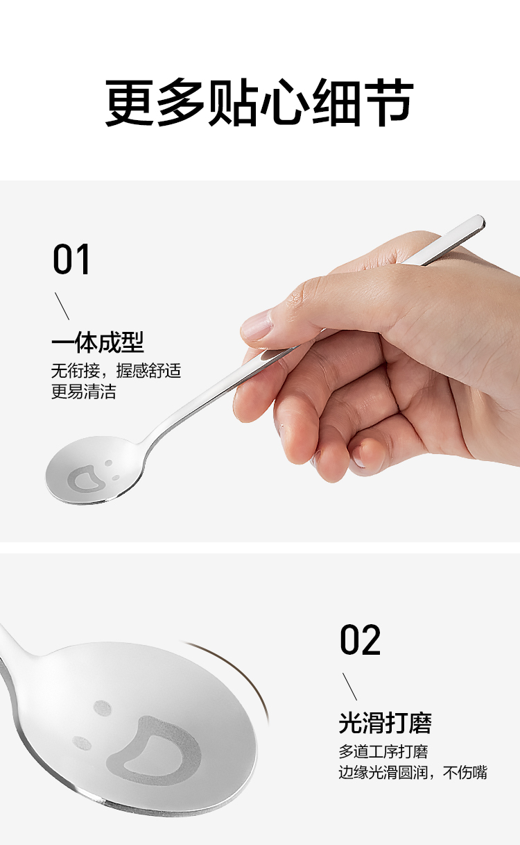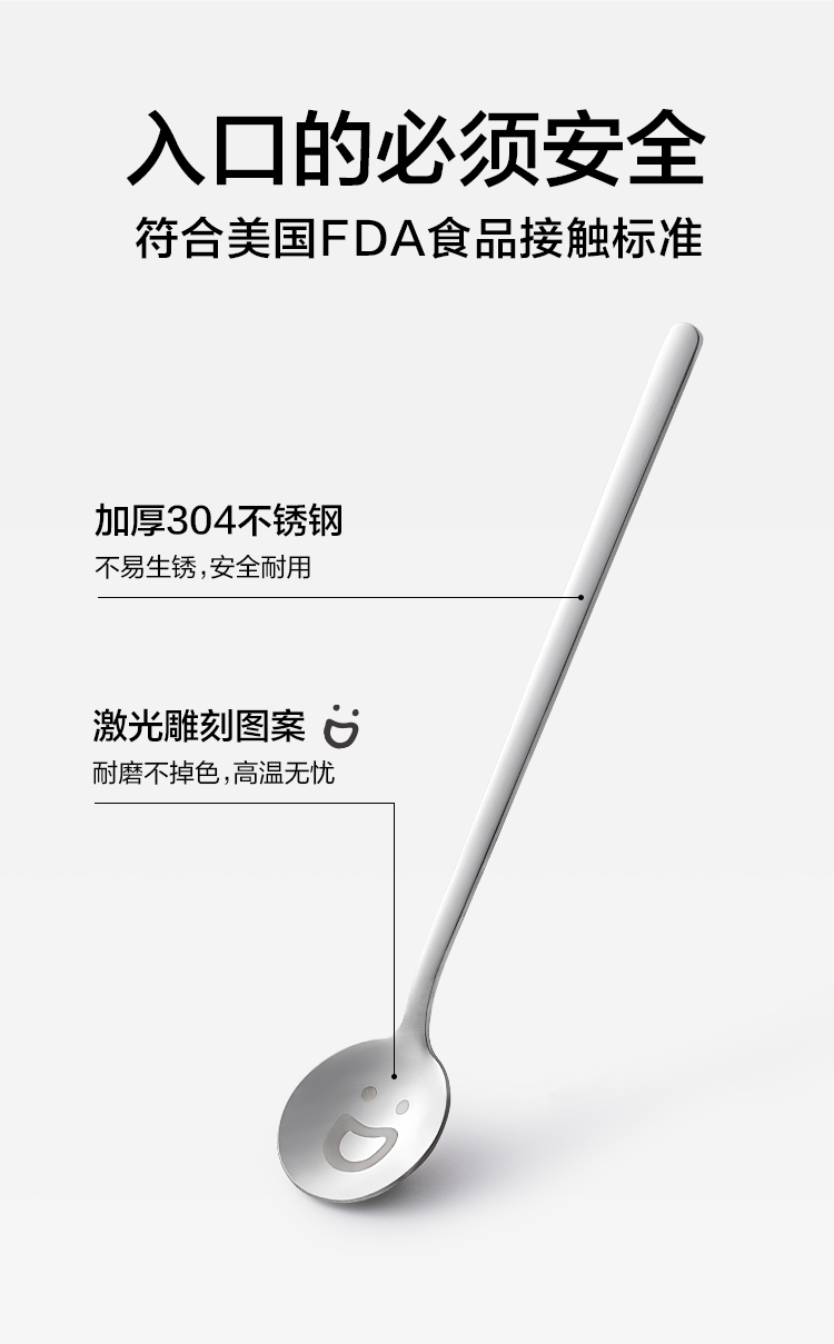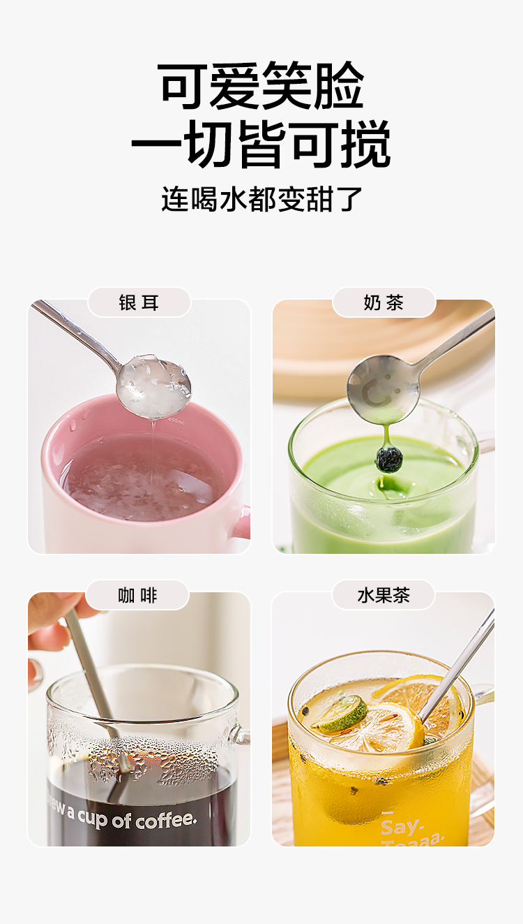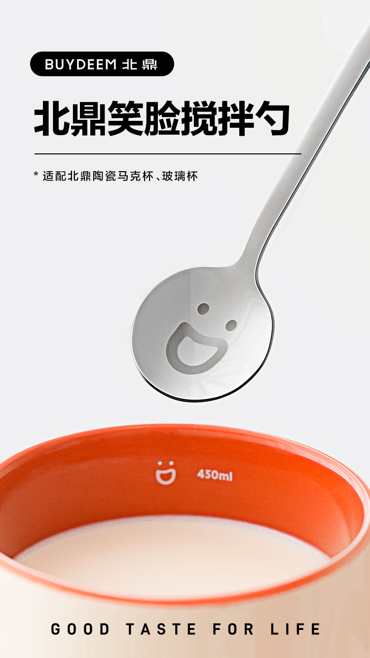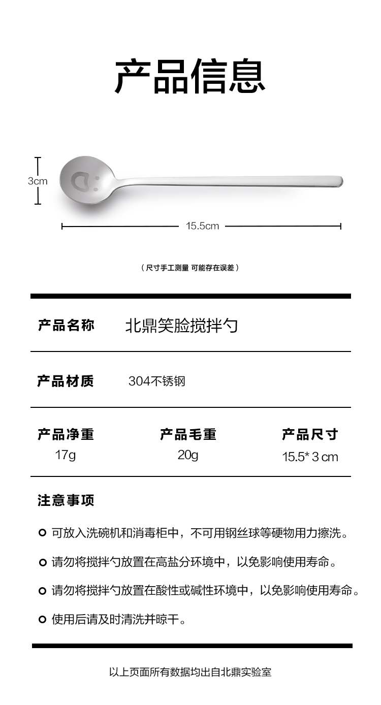 【专柜-北鼎】北鼎304不锈钢搅拌勺笑脸长柄家用牛奶咖啡勺精致可爱冰淇凌勺子