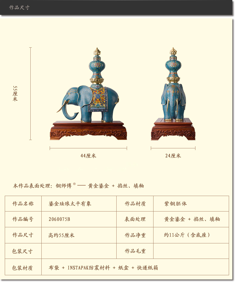 预售90天 铜师傅 全铜摆件 《鎏金珐琅太平有象》家居饰品 铜工艺品
