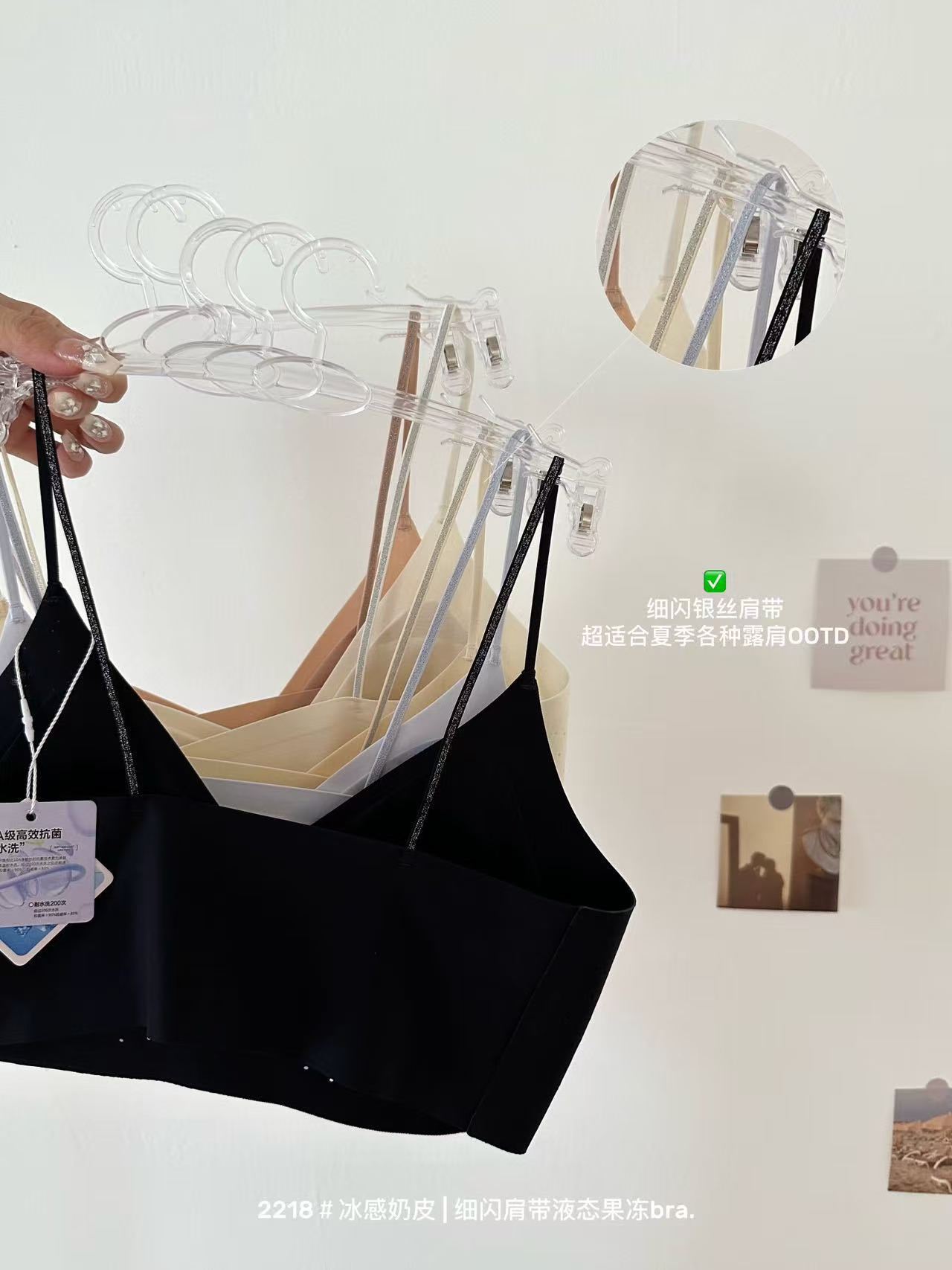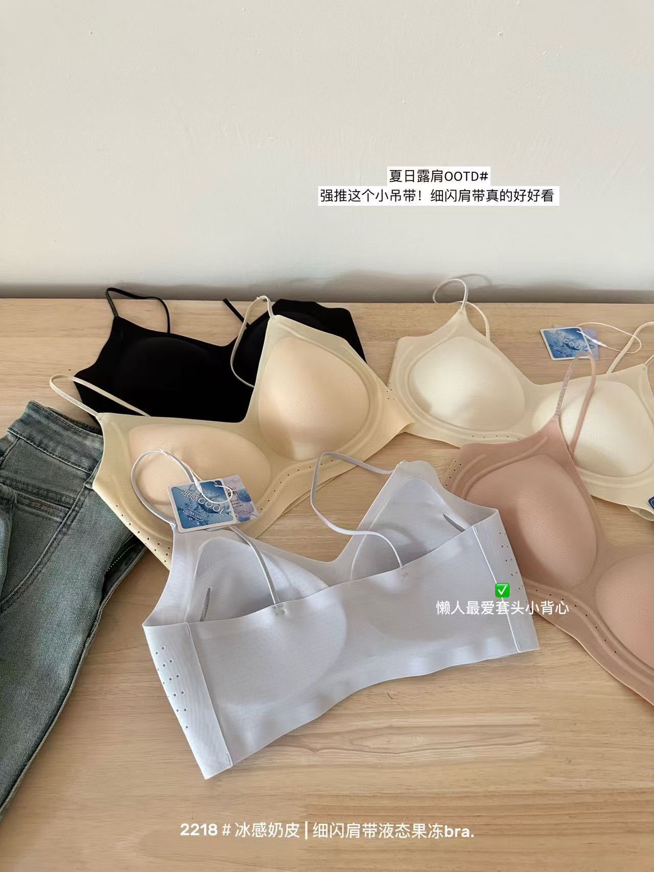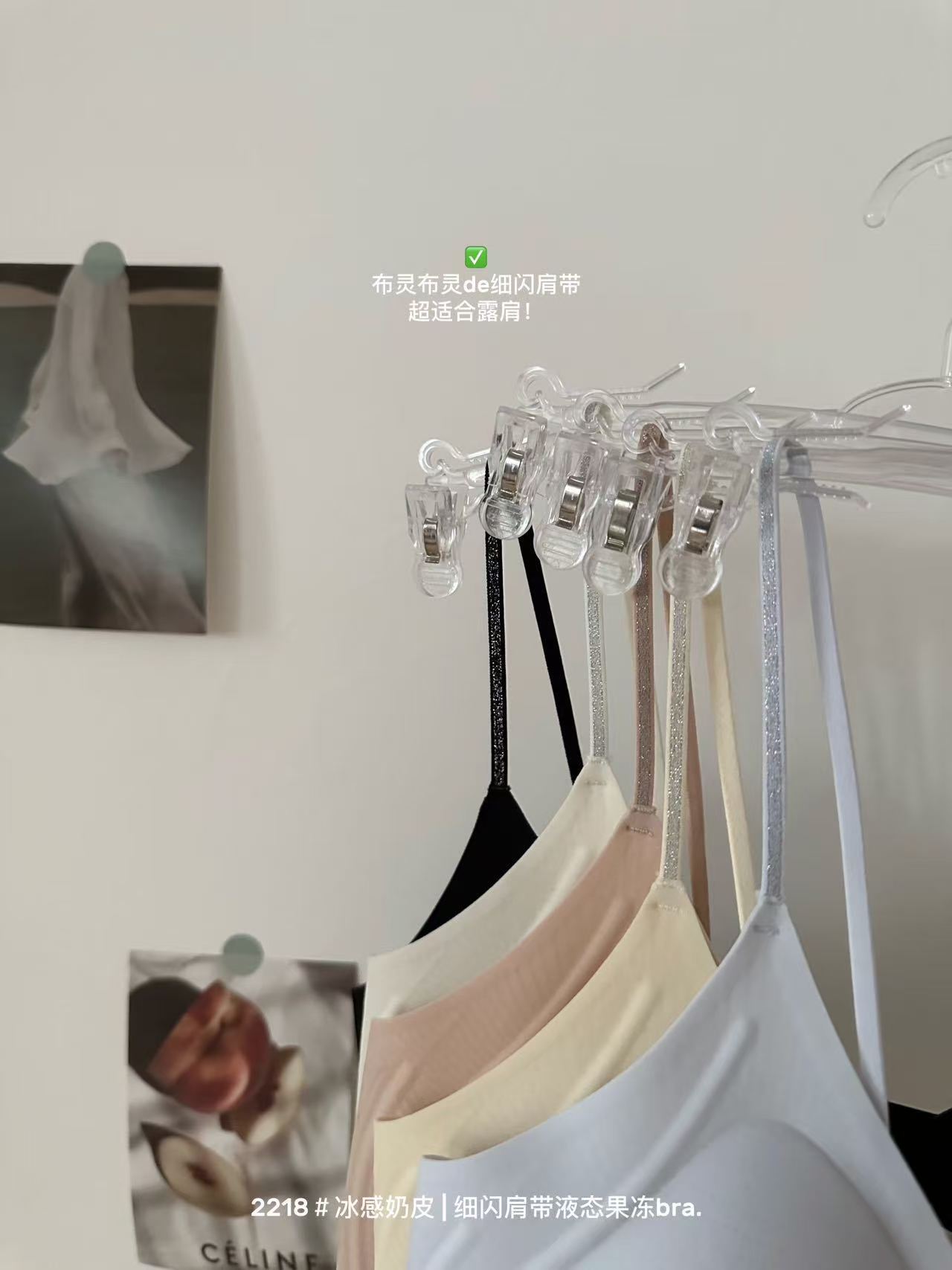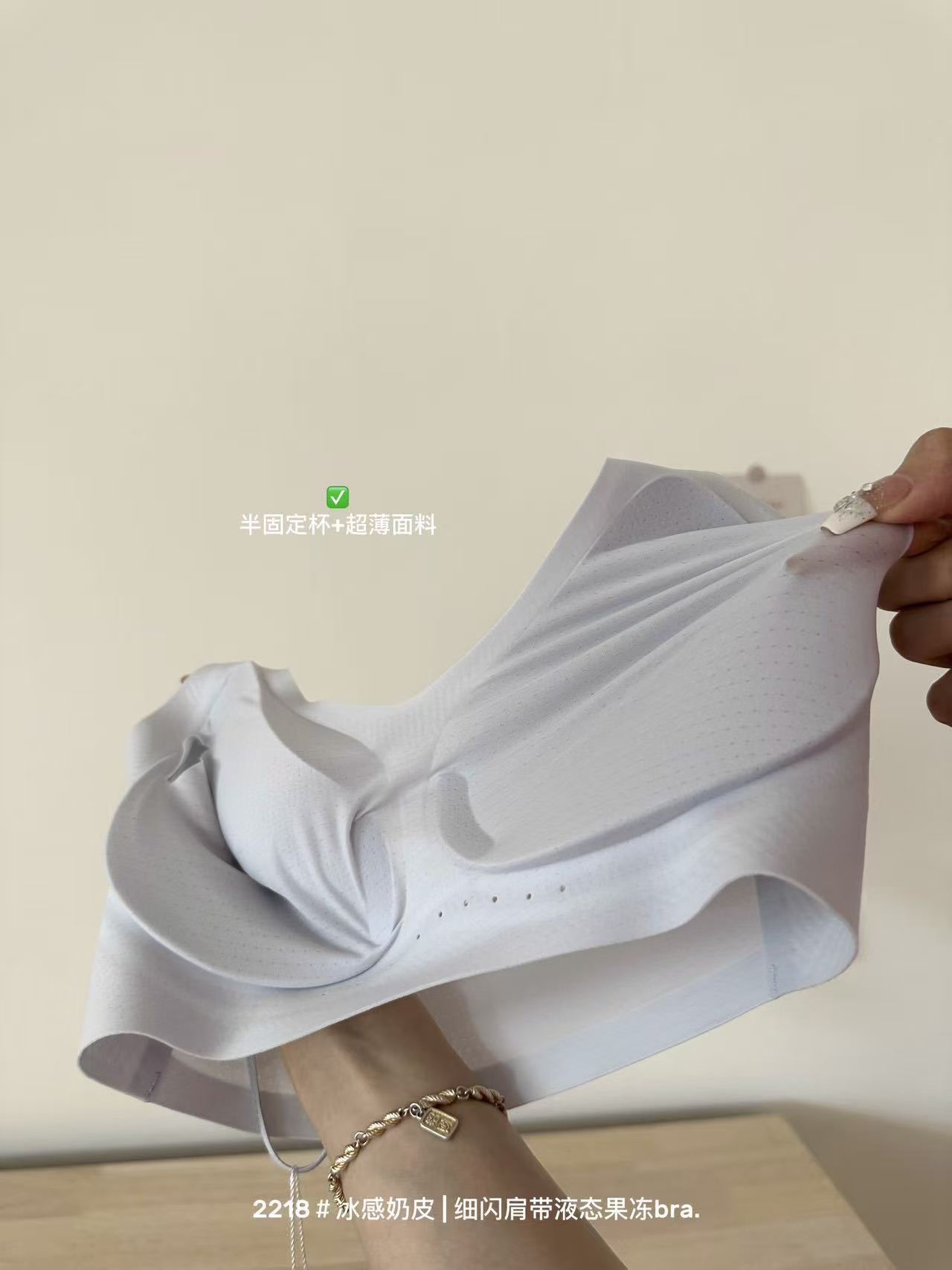 薄款冰感奶皮细闪肩带液态果冻内衣女无痕透气吊带美背文胸罩