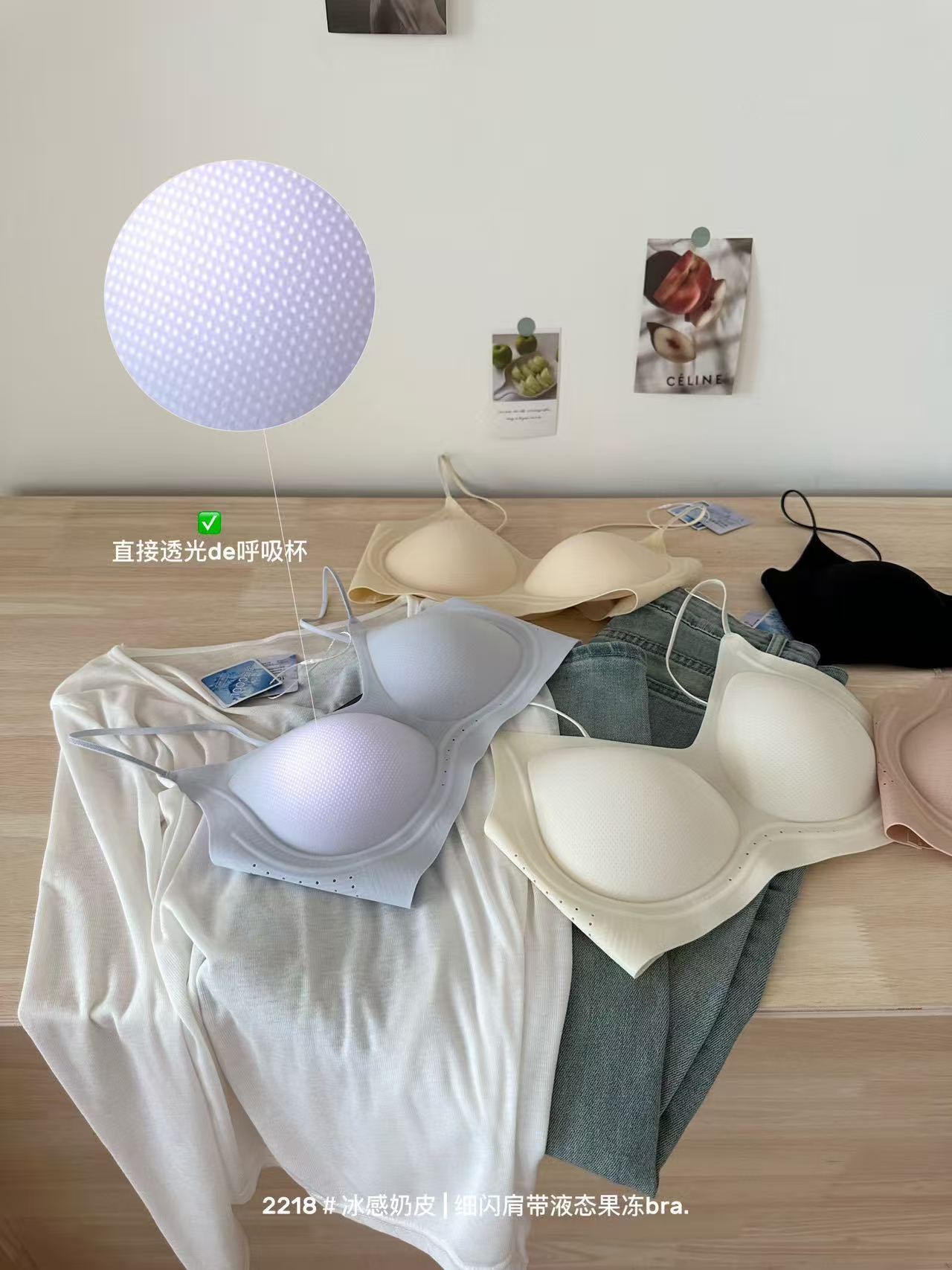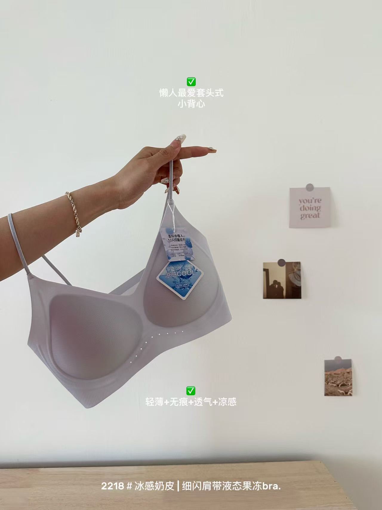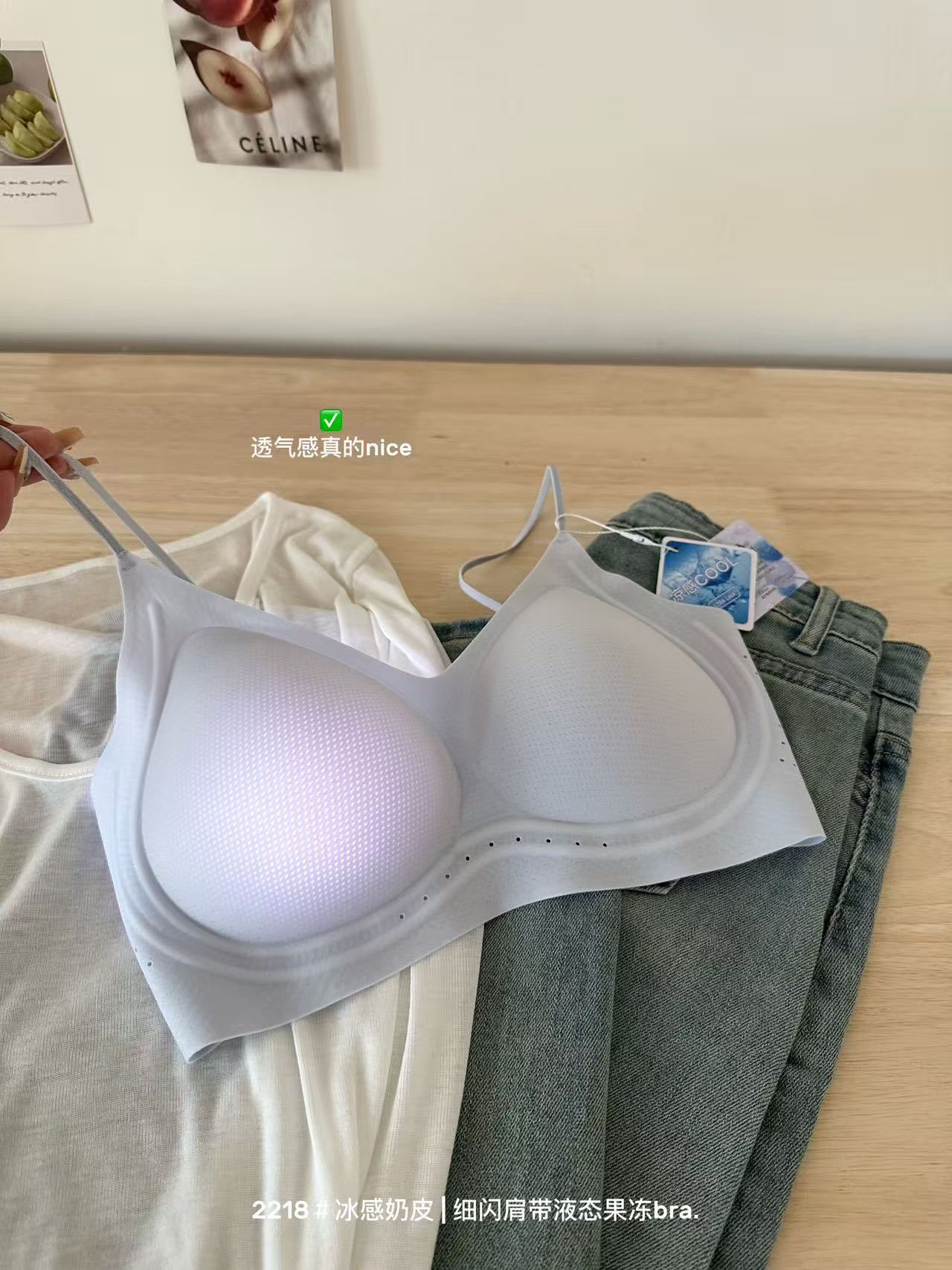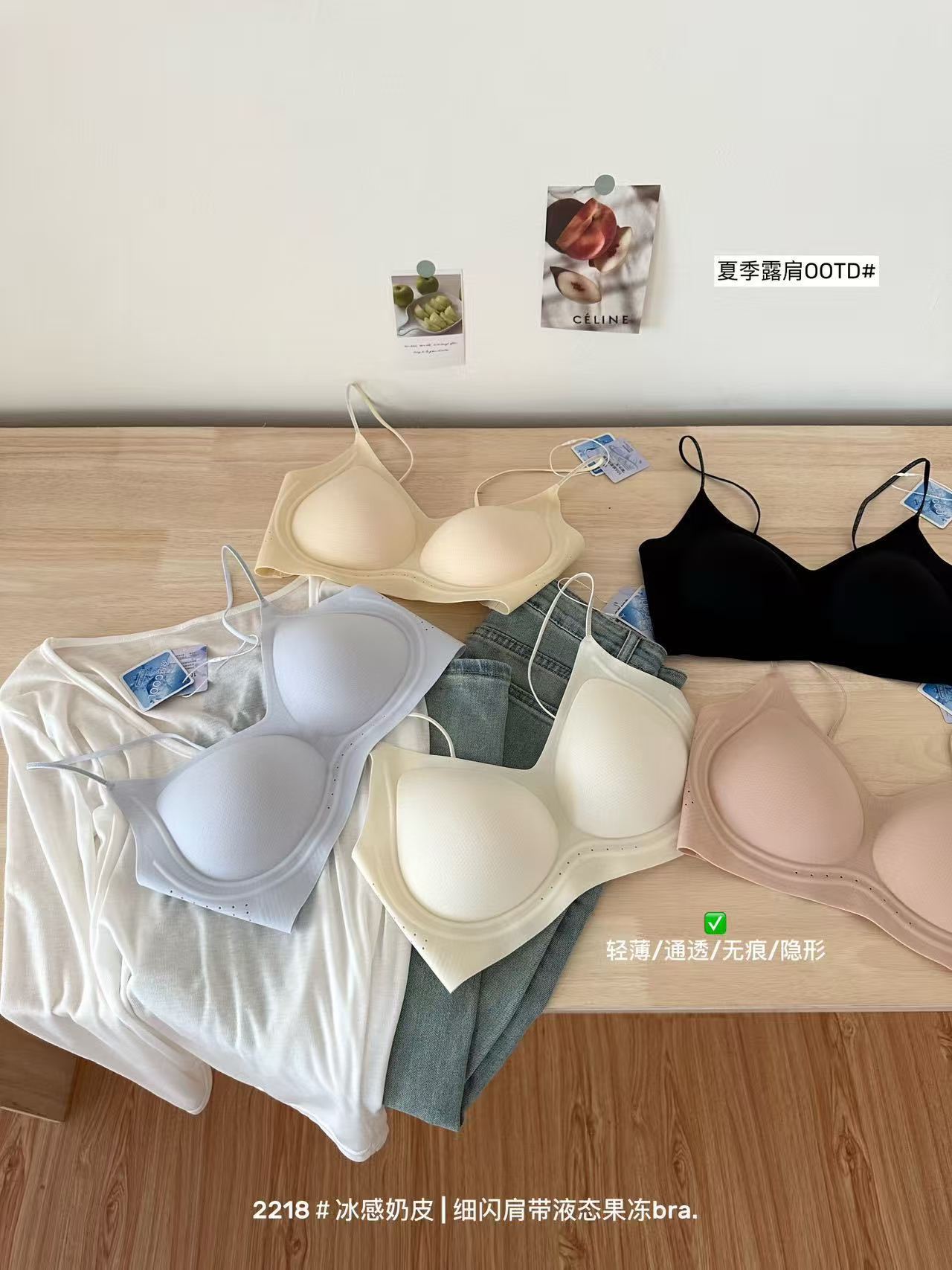 薄款冰感奶皮细闪肩带液态果冻内衣女无痕透气吊带美背文胸罩