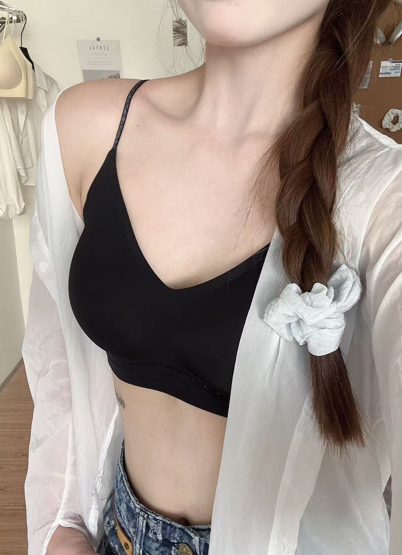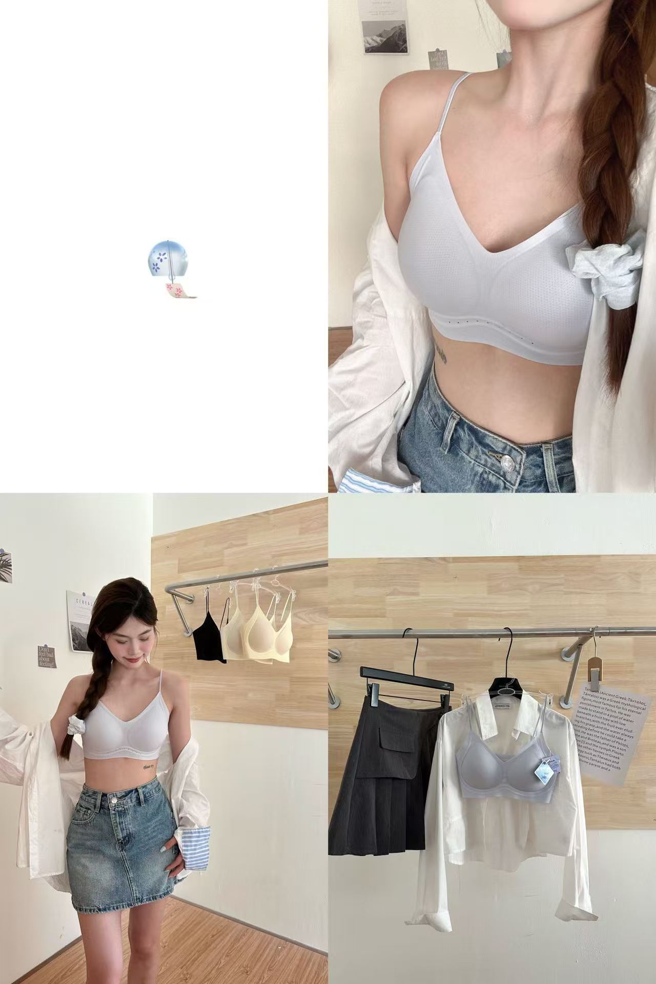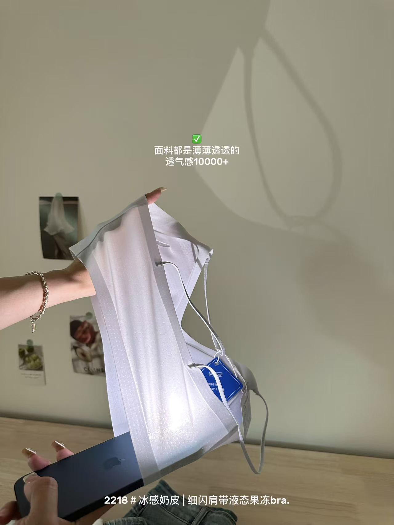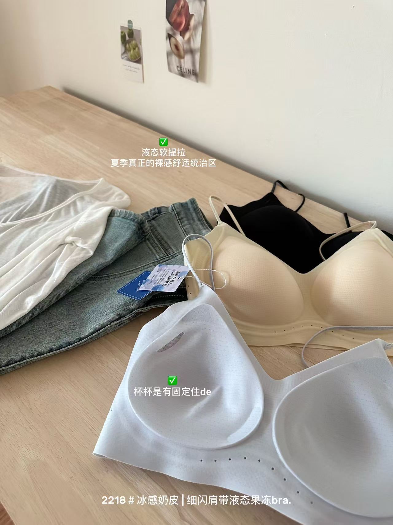 薄款冰感奶皮细闪肩带液态果冻内衣女无痕透气吊带美背文胸罩