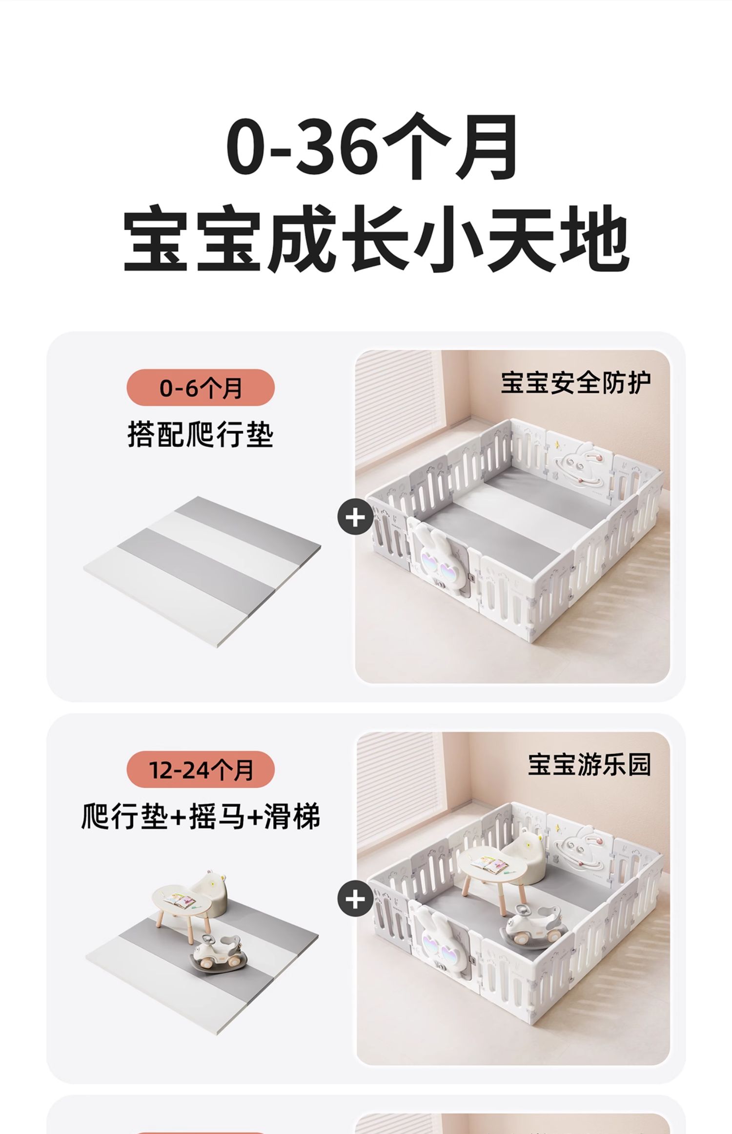【冬日暖拥】曼龙mloong宏兔游戏围栏婴儿防护栏宝宝儿童地上家用室内客厅围栏爬行垫