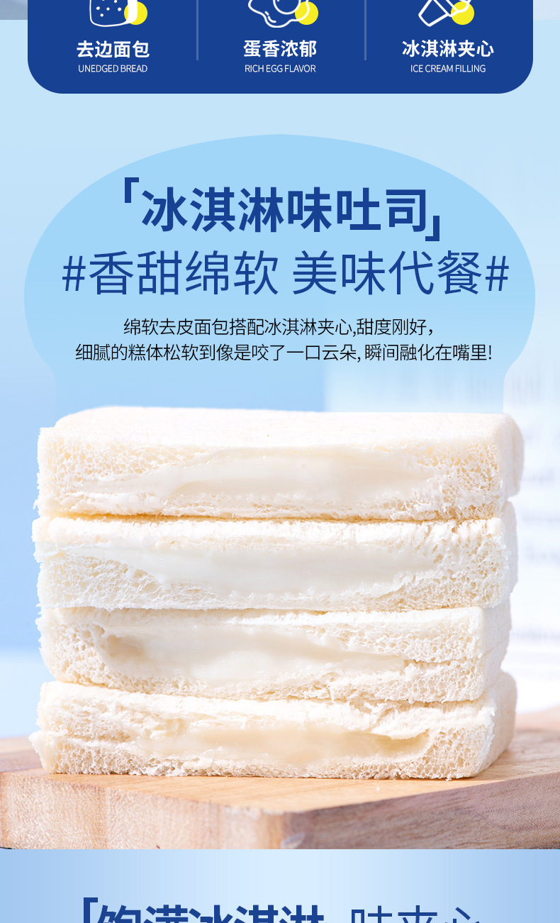 「冰淇淋味夹心」壹得利夹心魔方吐司冰淇淋味无皮去皮面包糕点心夜宵早餐休闲食品