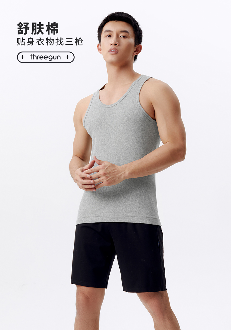 Threegun三枪 【舒肤棉】罗纹弹力男士打底背心-30821A011