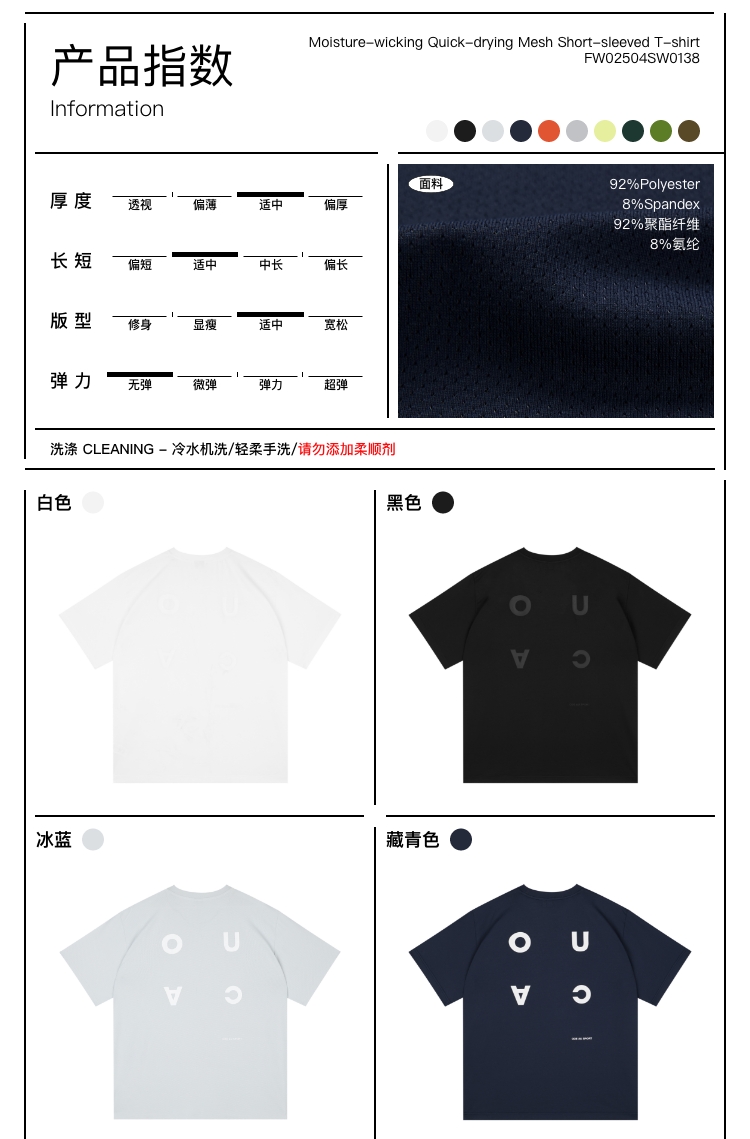 oneup吸湿速干网眼logo短袖T恤