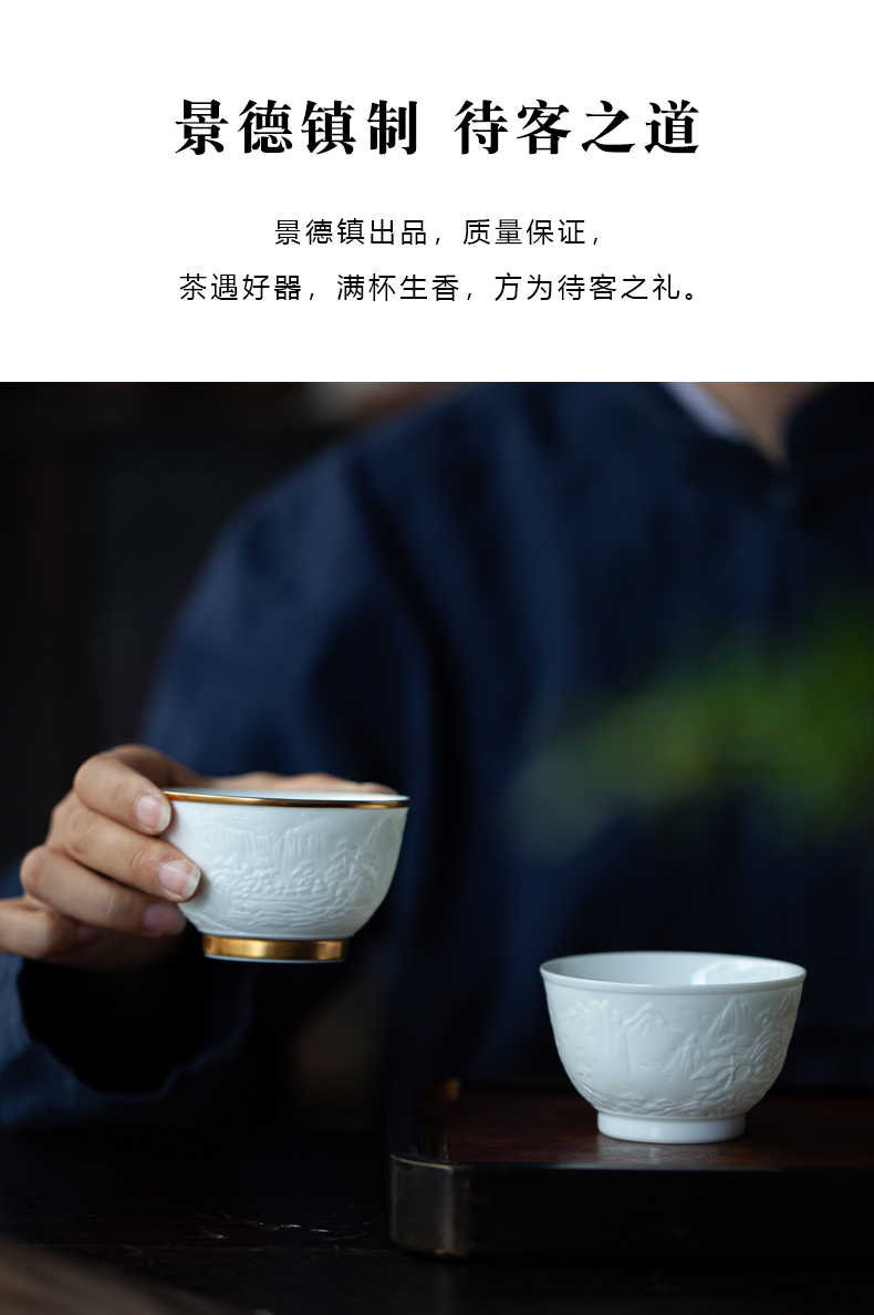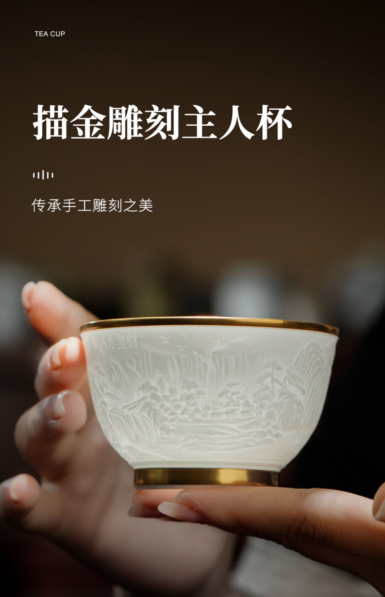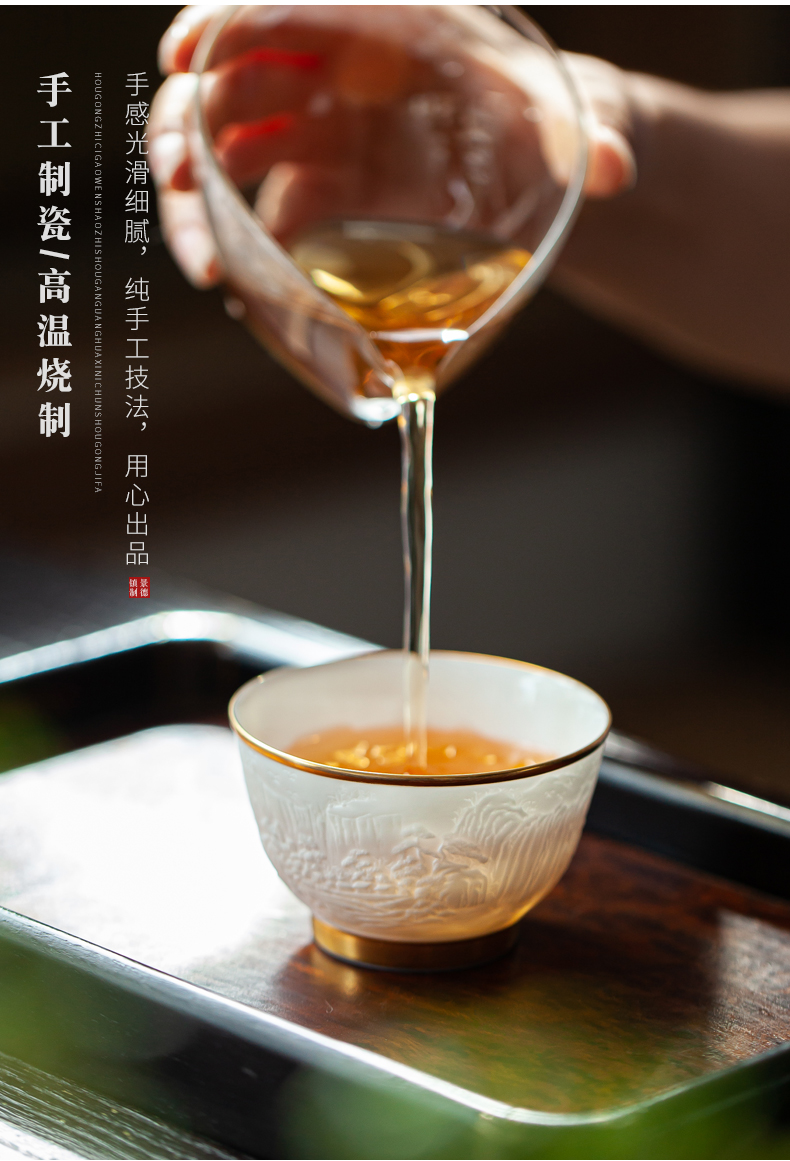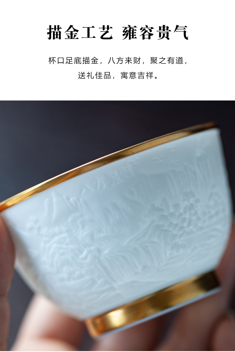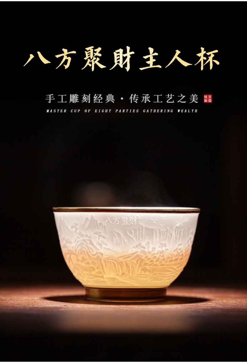 B-SST-3002素手堂 玉泥线雕鎏金杯 千里江山