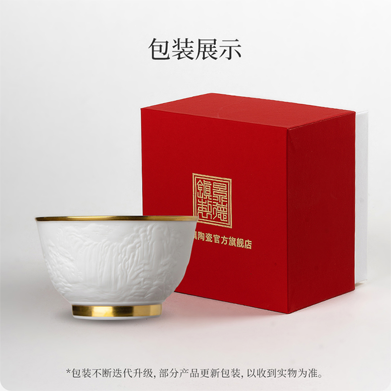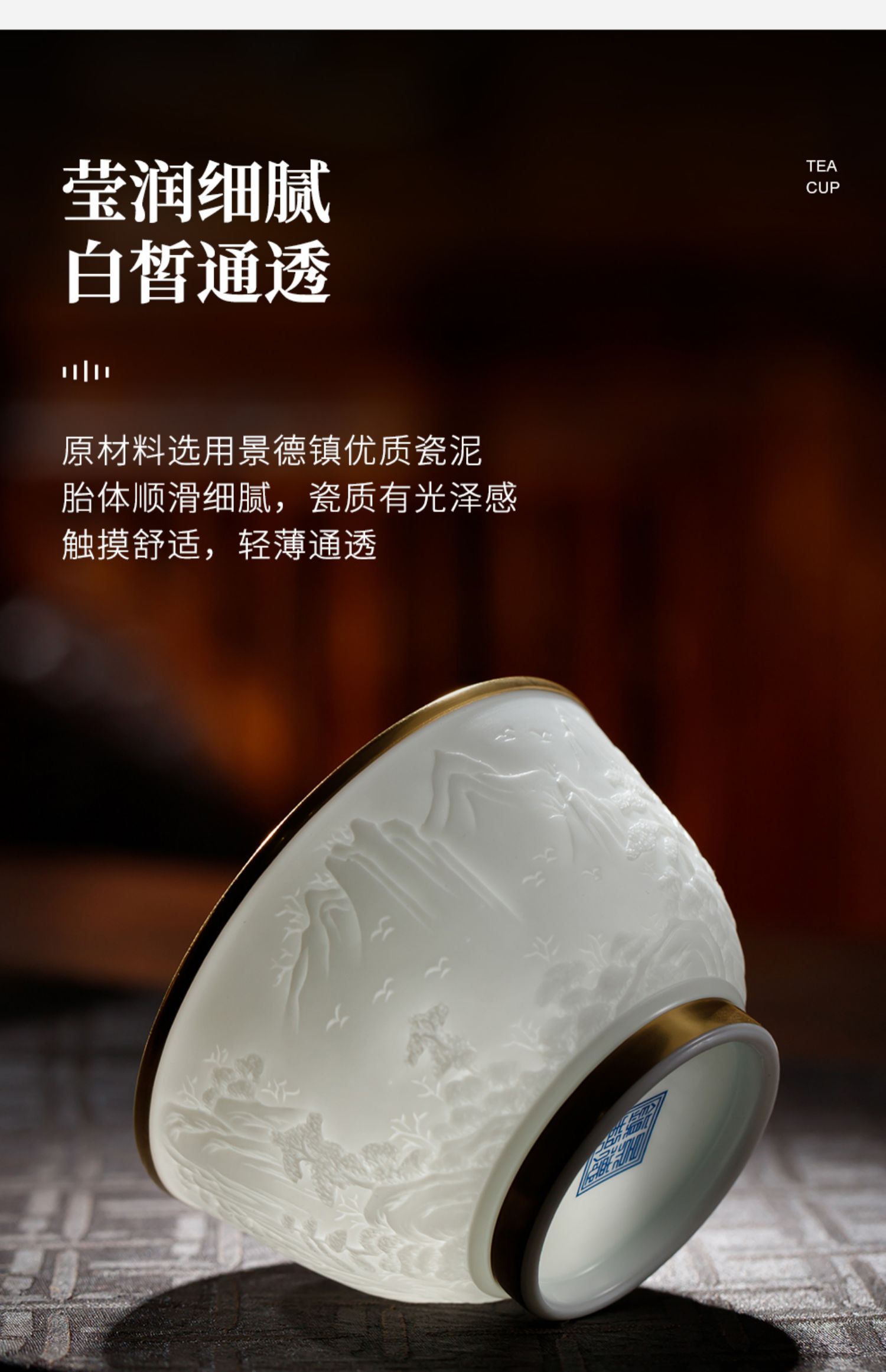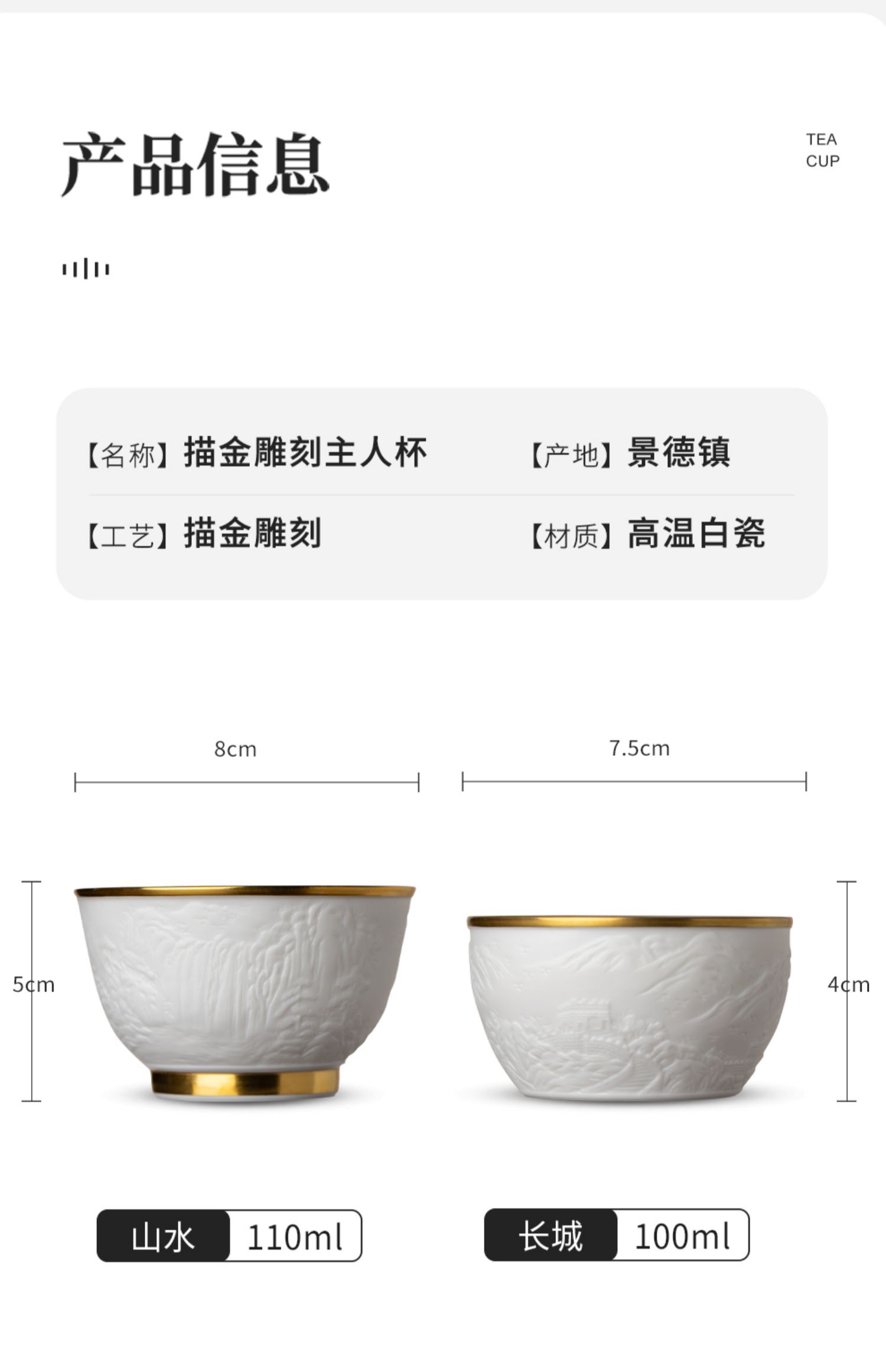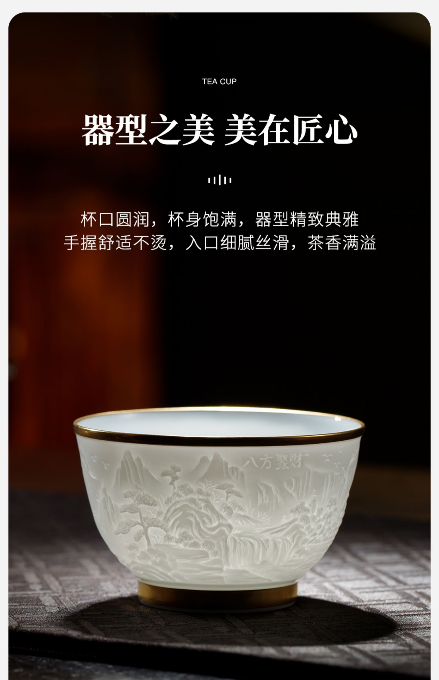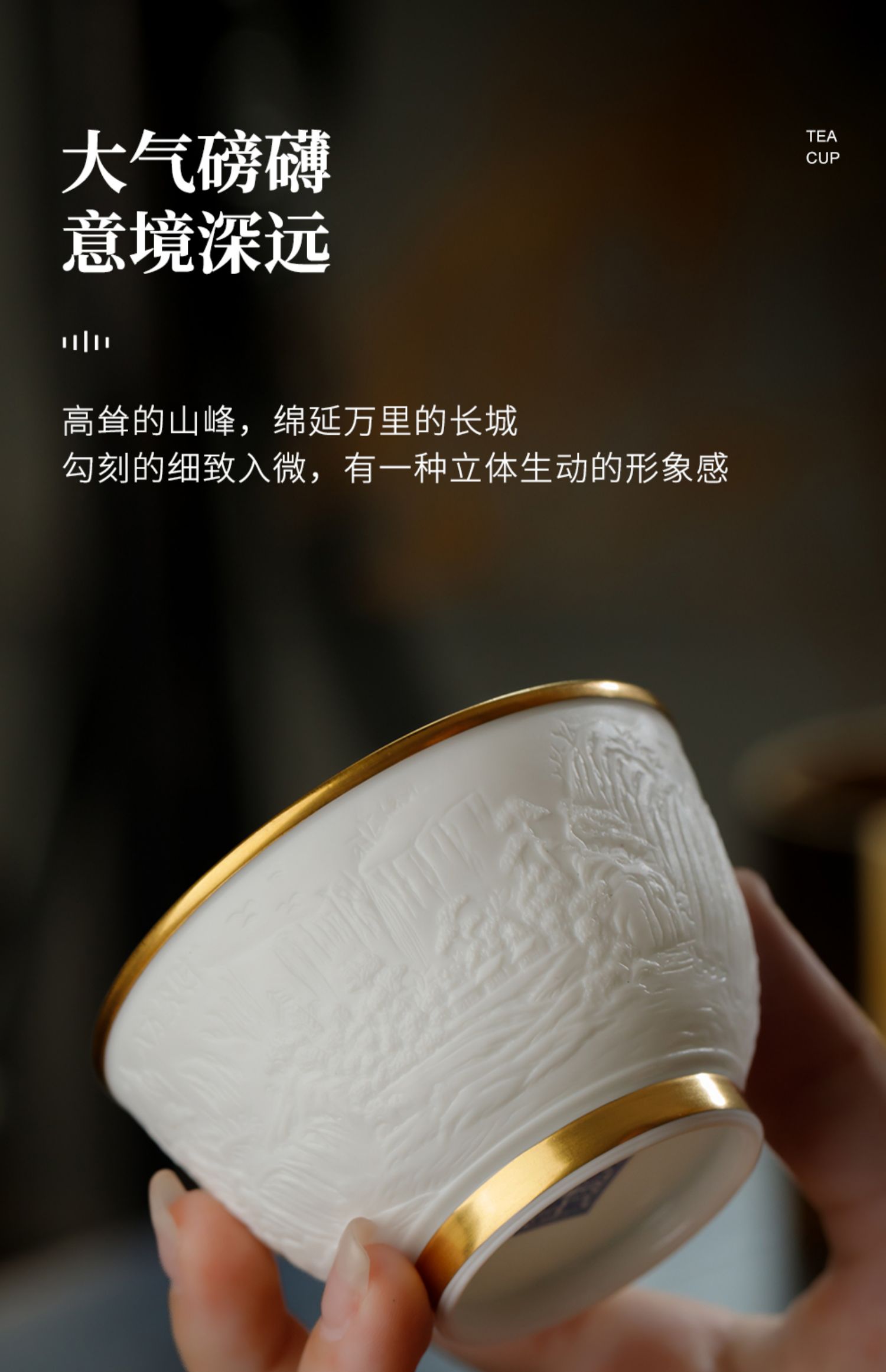 B-SST-3002素手堂 玉泥线雕鎏金杯 千里江山