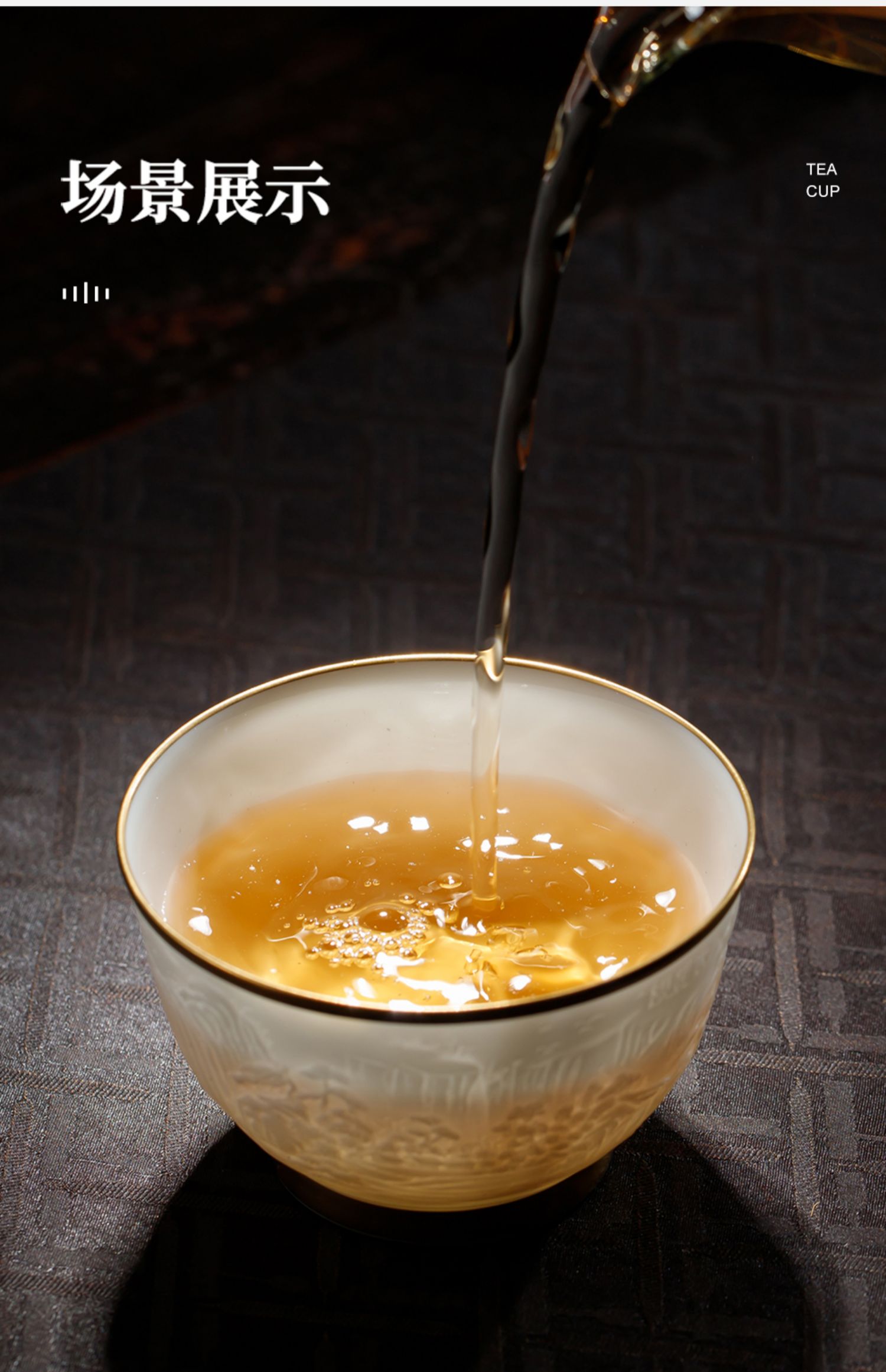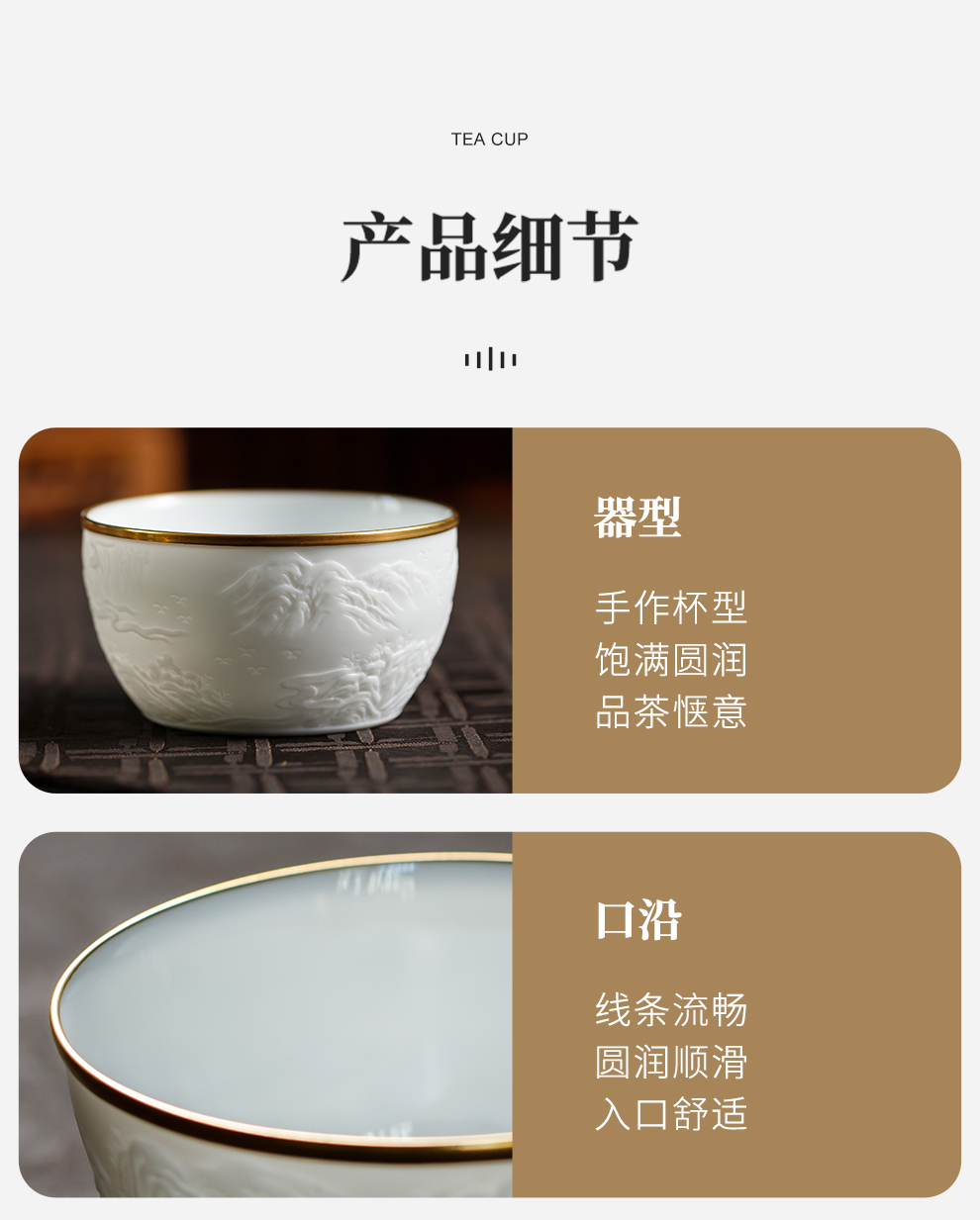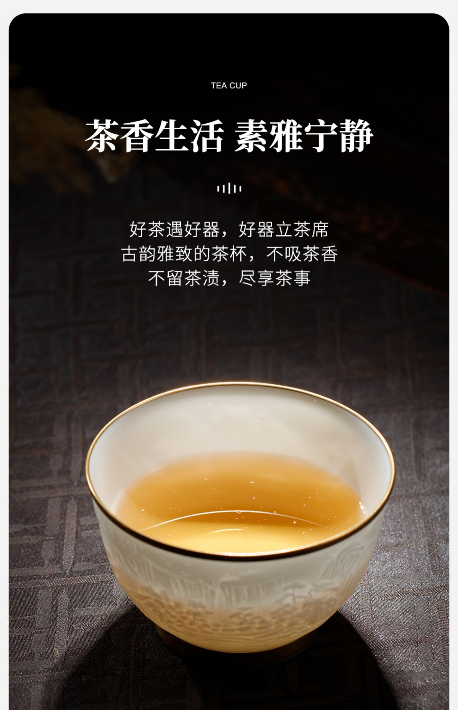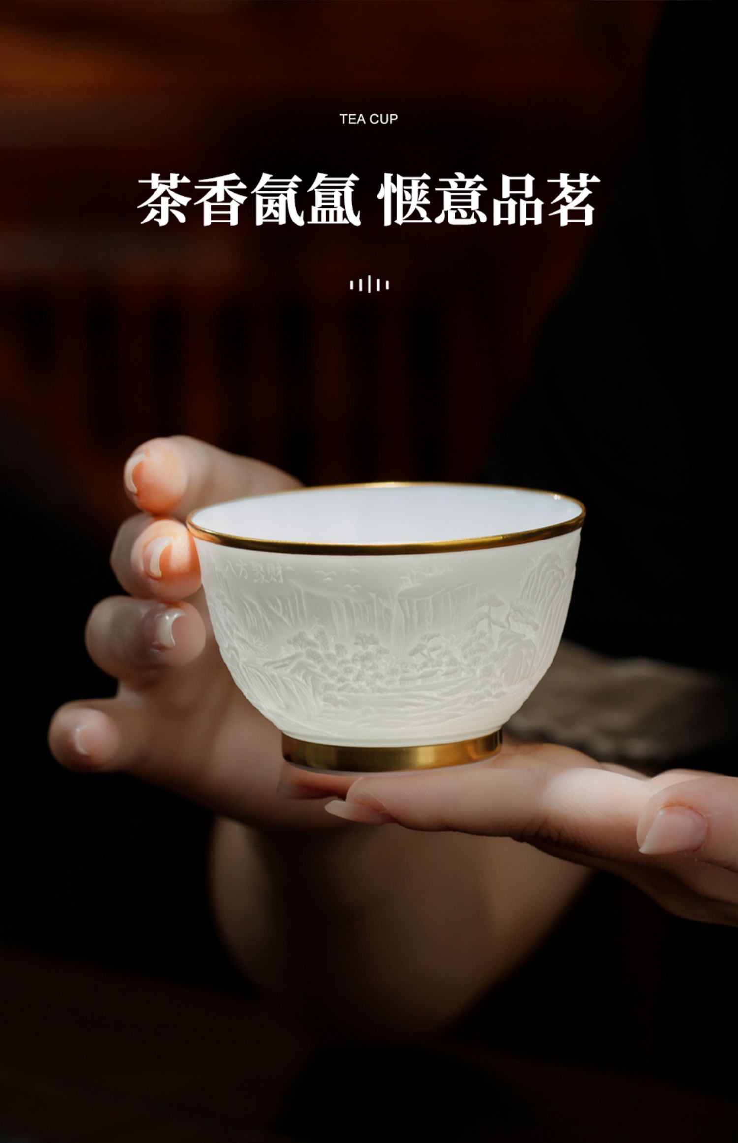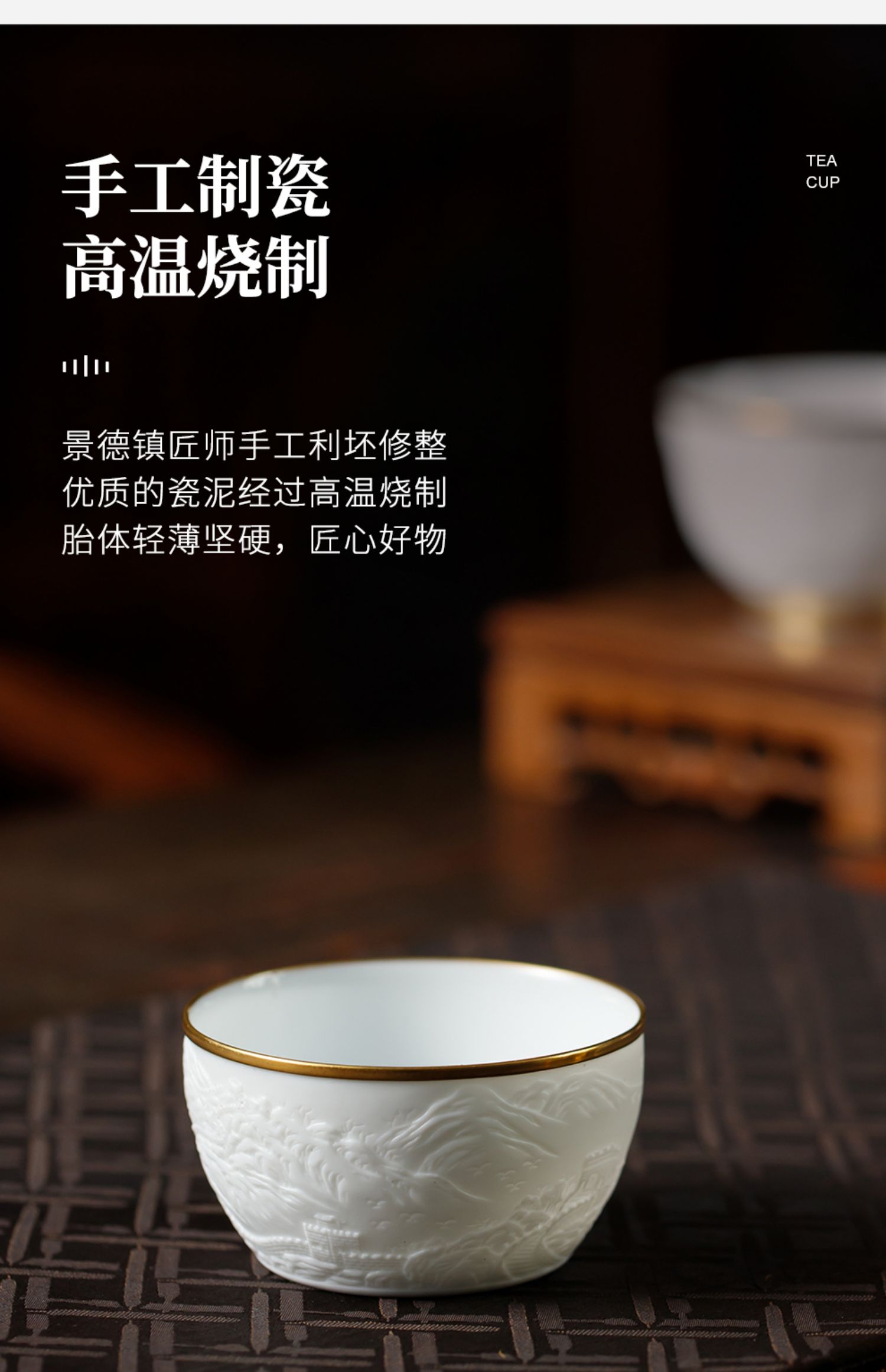 B-SST-3002素手堂 玉泥线雕鎏金杯 千里江山