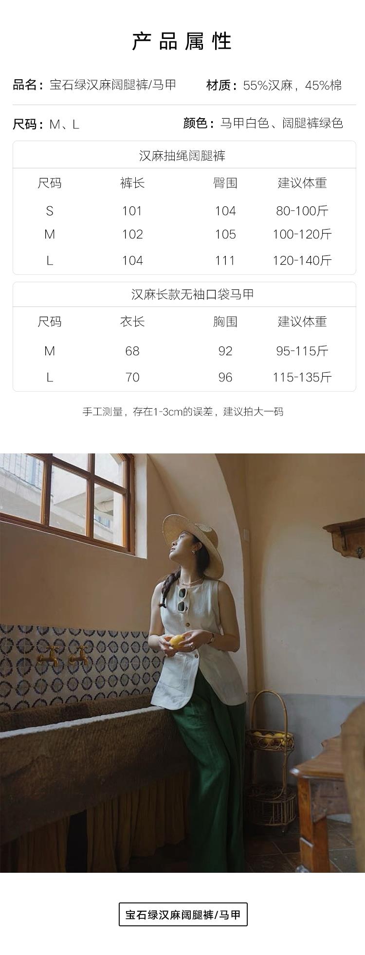 宝石绿汉麻阔腿裤/马甲,高级显贵,大城市的“解压器”【马甲预售5-7天发货,亚麻裤预售3-7天,不含周末】【G】