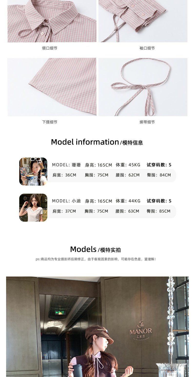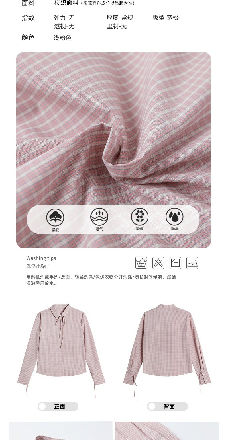 【169元任选2件】现货!粉色格子衬衫