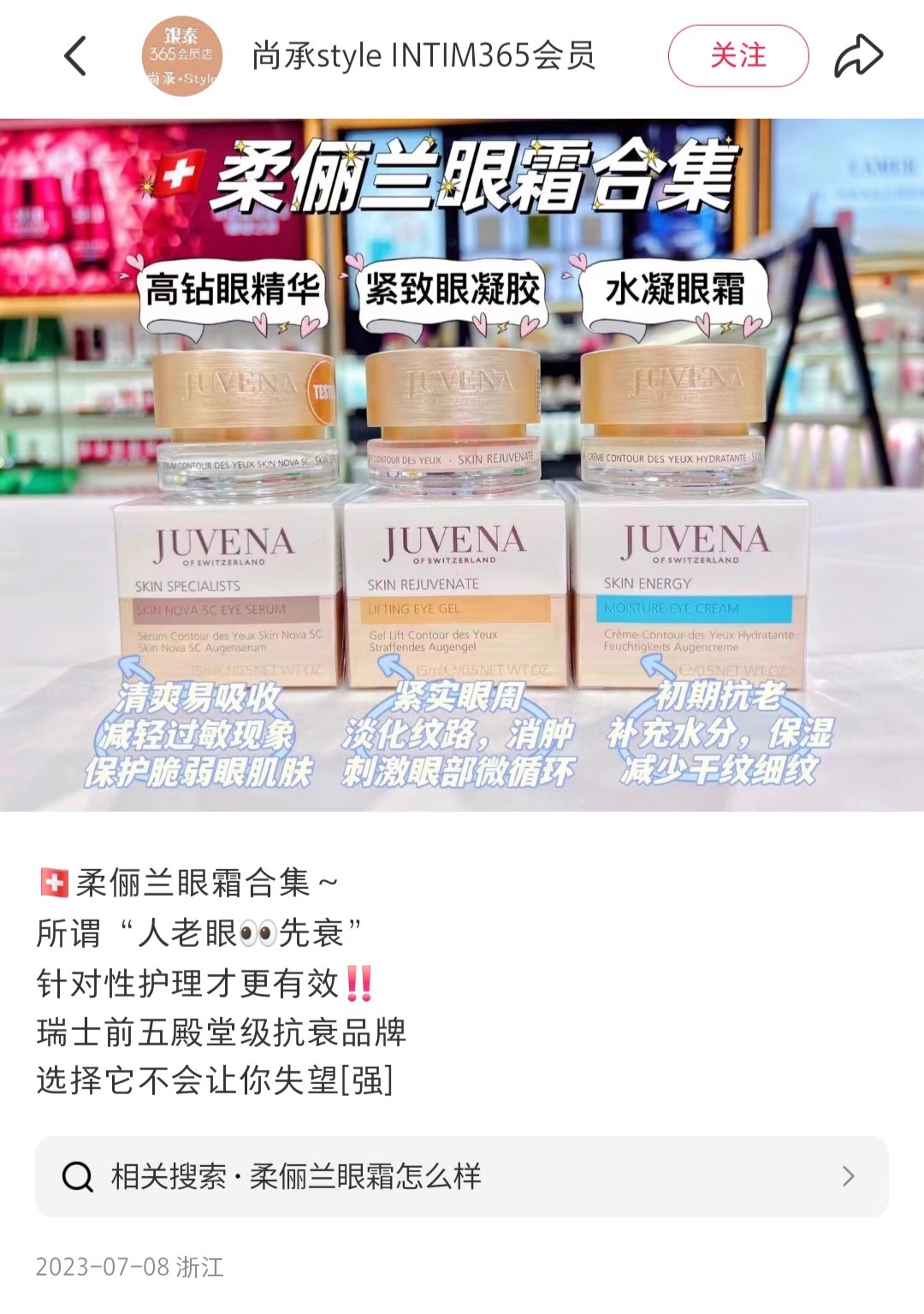 【品名】瑞士JUVENA柔俪兰紧致嫩肤眼部凝胶 紧塑弹嫩眼霜15ml