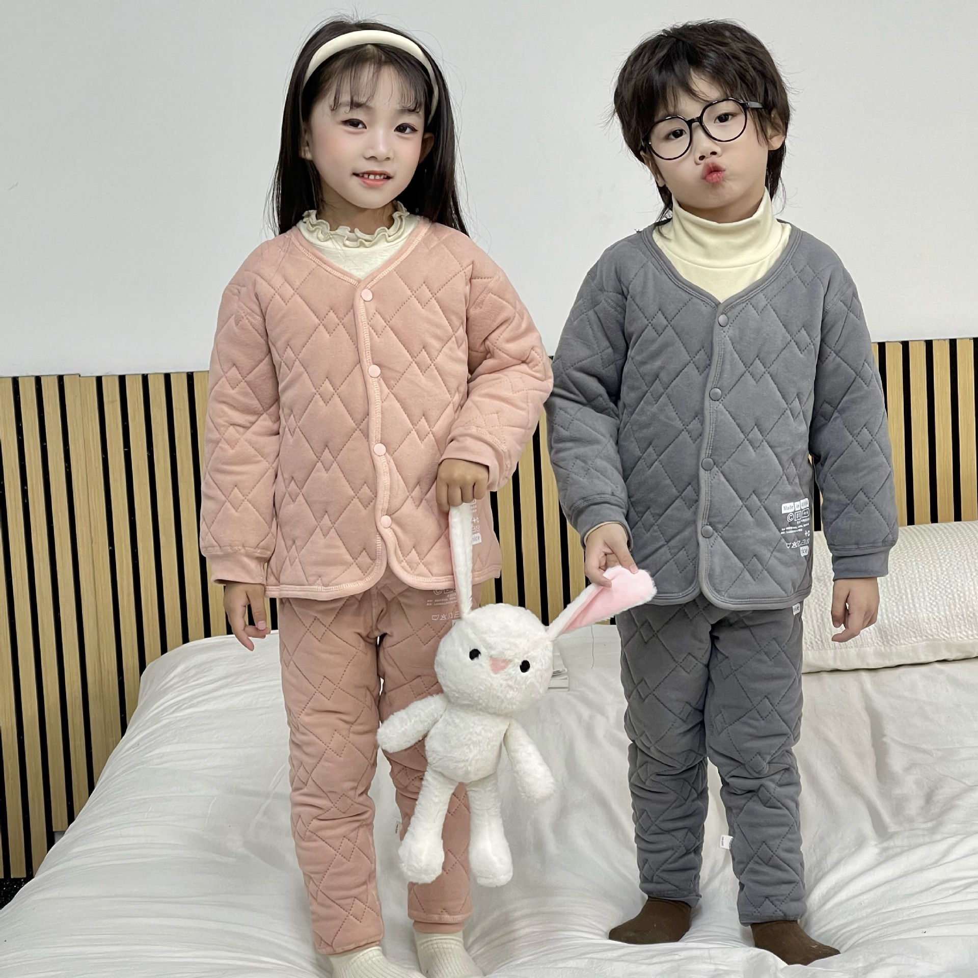儿童羊毛蚕丝校服神器套装宝宝秋冬季保暖三层加厚棉衣内胆内搭家居服90-170