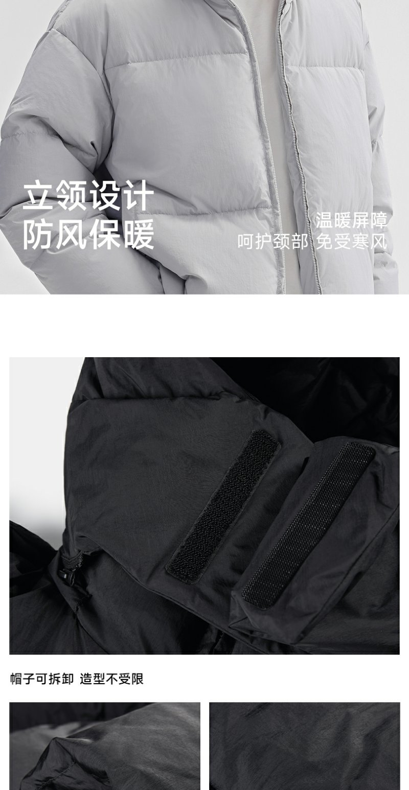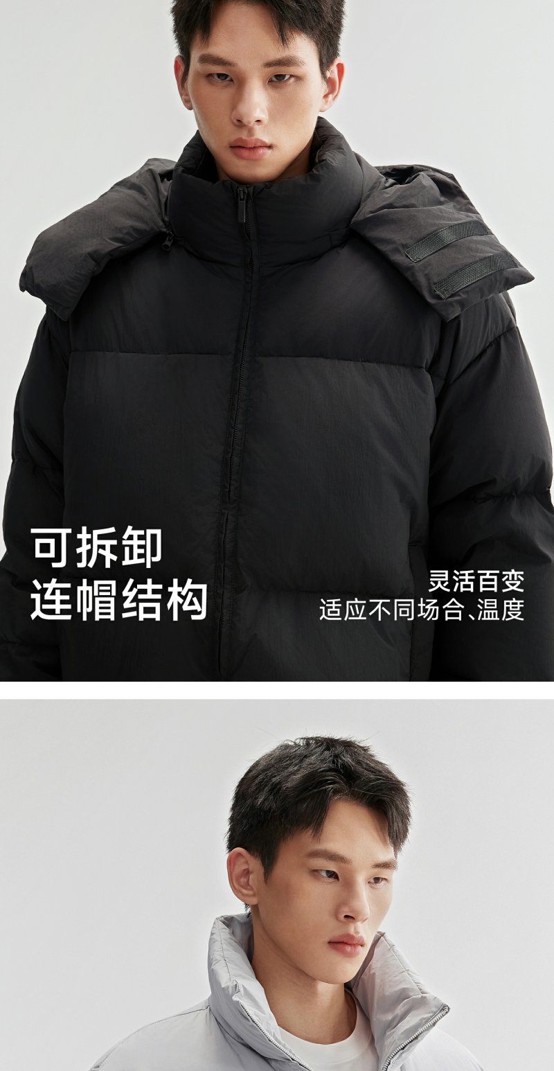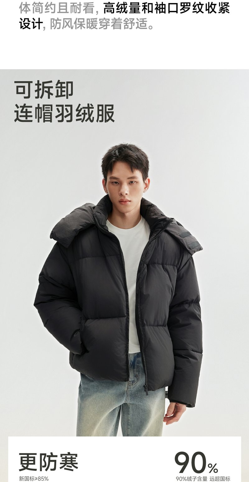 CHINISM赤尘 可拆卸连帽羽绒服男冬季男士防风加厚短款面包服外套