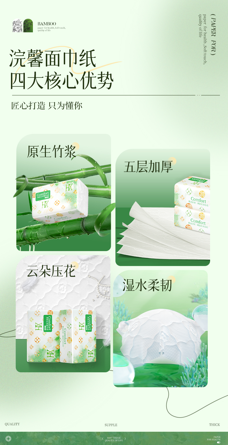【自营】蓝漂浣馨系列抽纸白色餐巾纸家用实惠装厕所手纸家庭装卫生纸5包FCS-52135