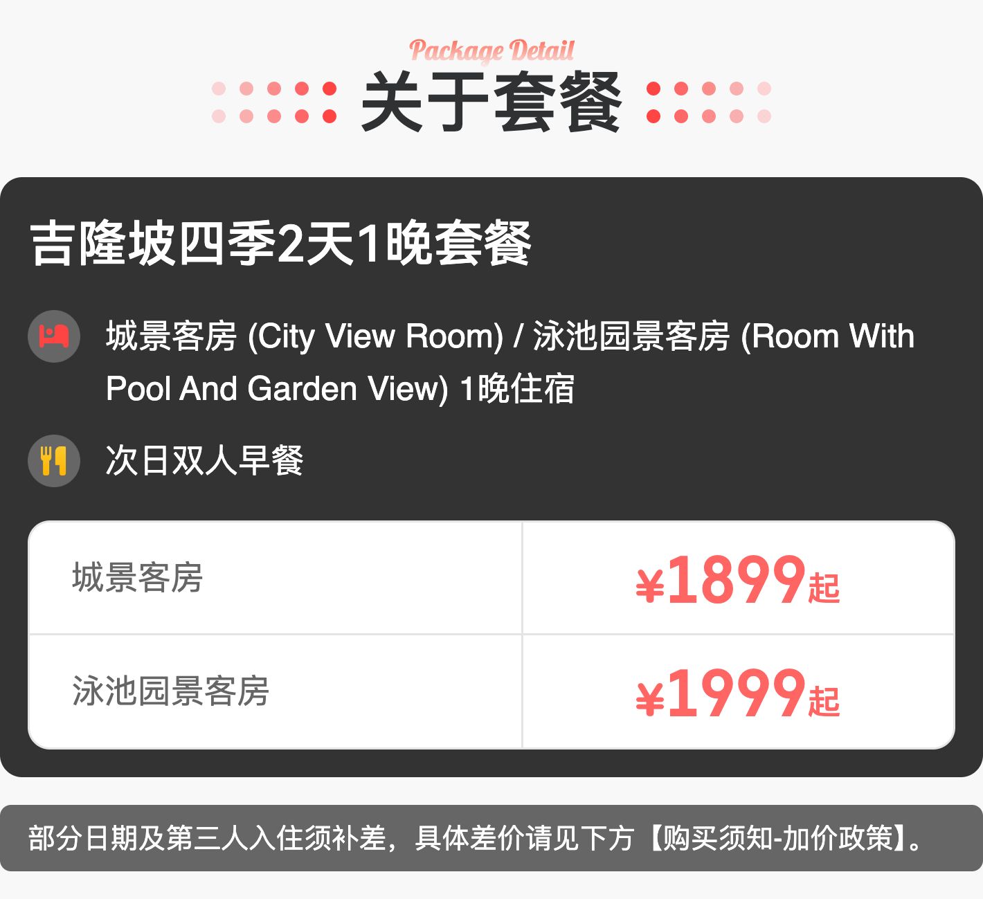 2天1晚【马来西亚吉隆坡四季】可用至2026年3月!入住泳池园景客房,含次日早餐,马来中转品质推荐~