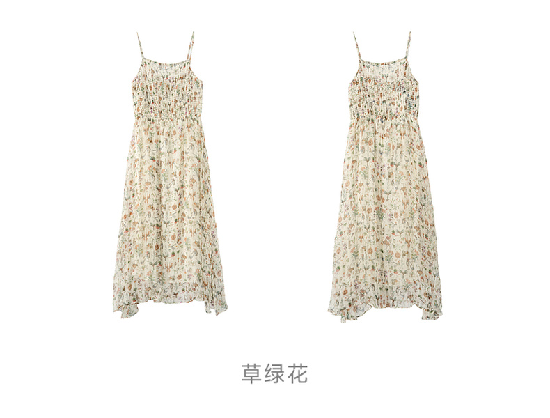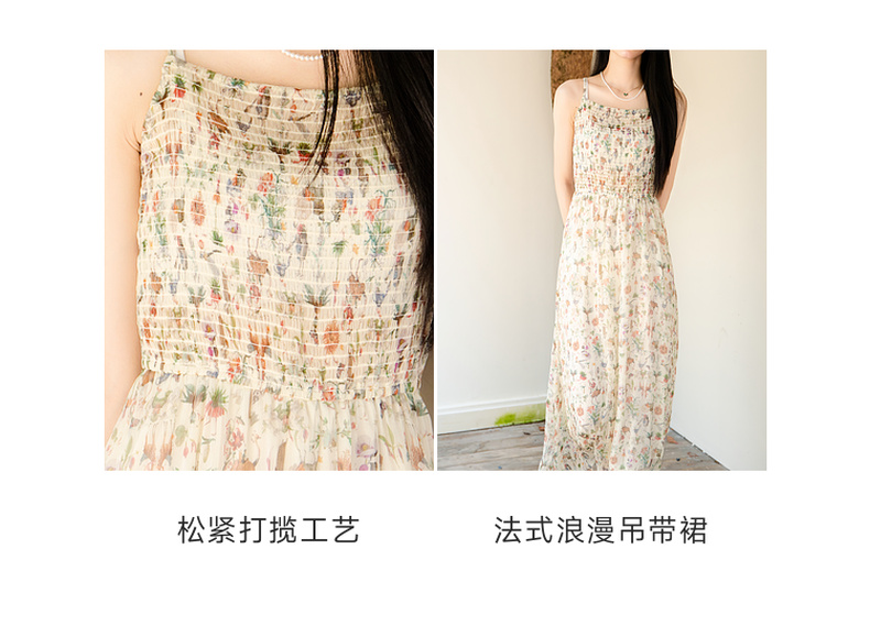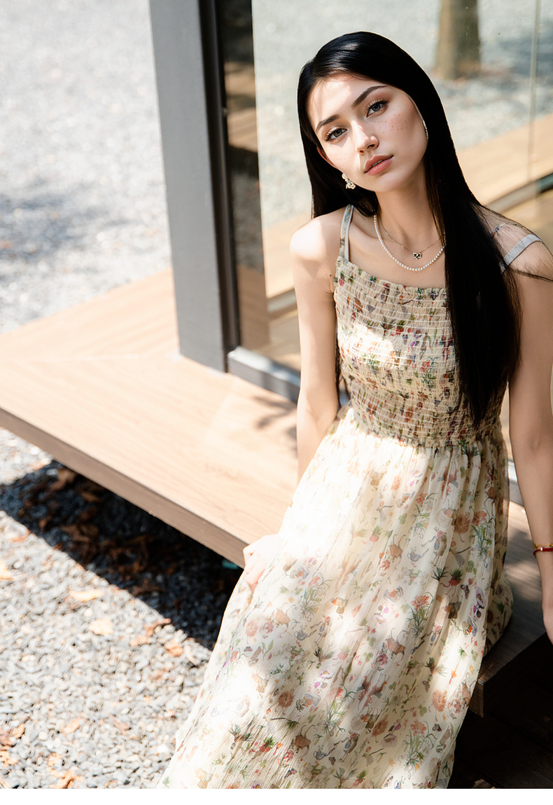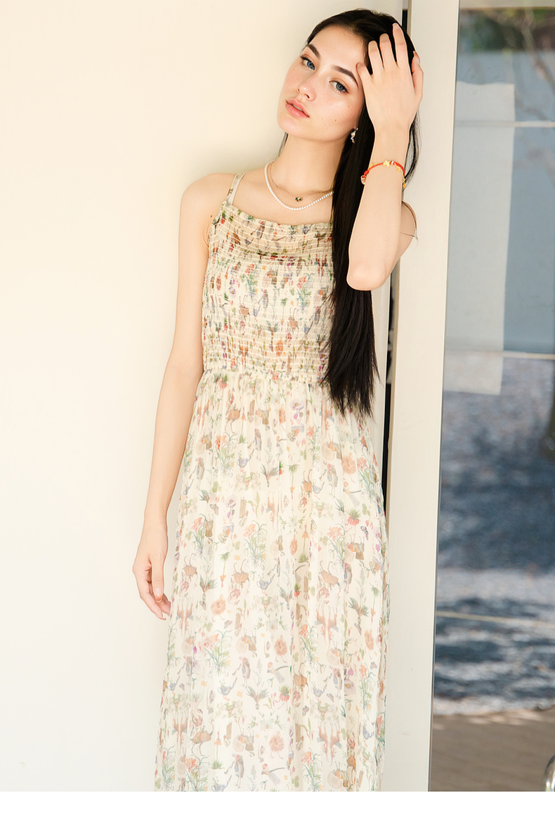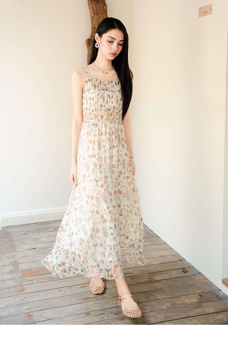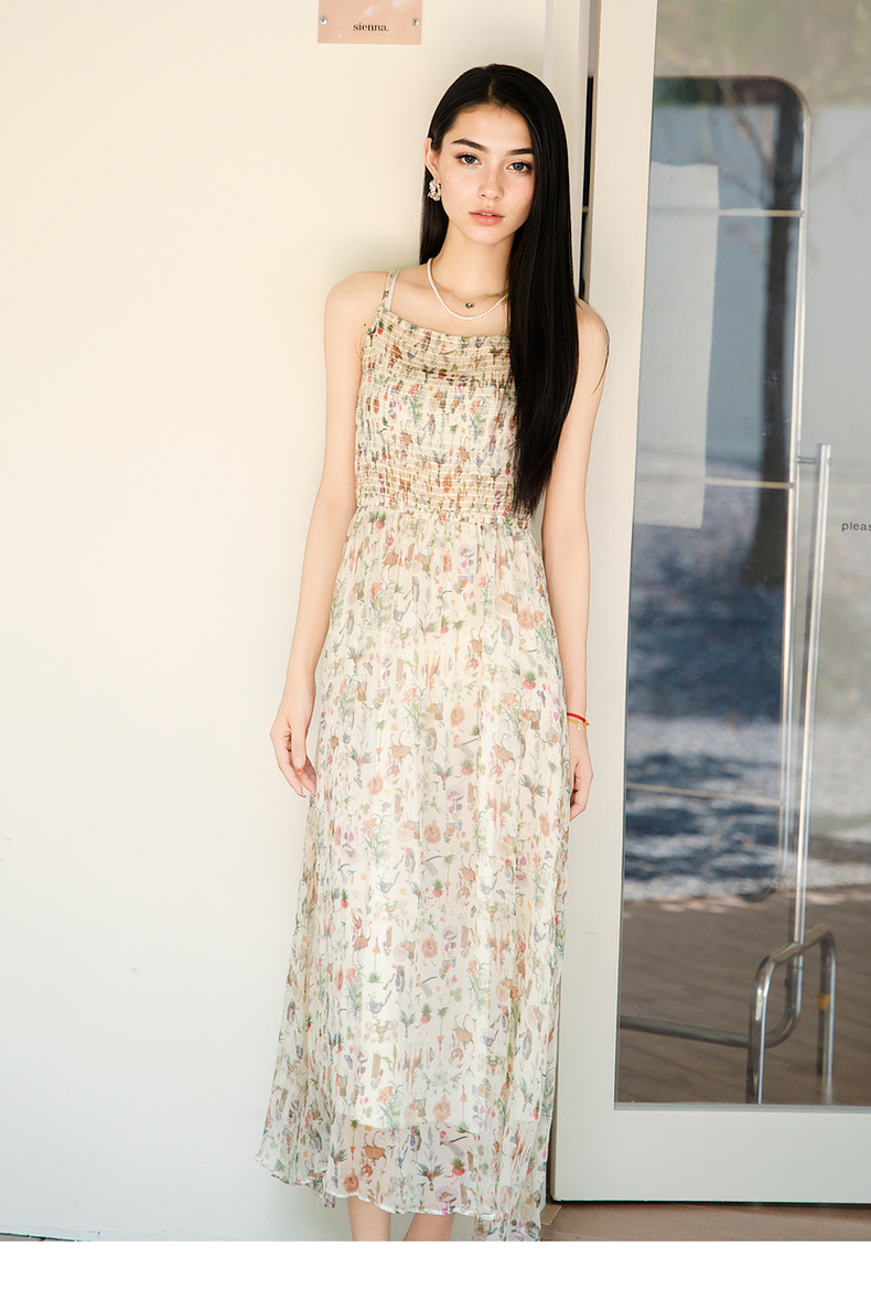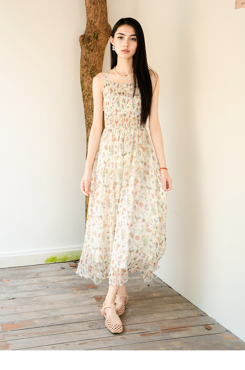 谜底桑蚕丝吊带裙2025秋季新款清新柔美花色长裙连衣裙257ML7789