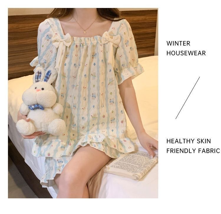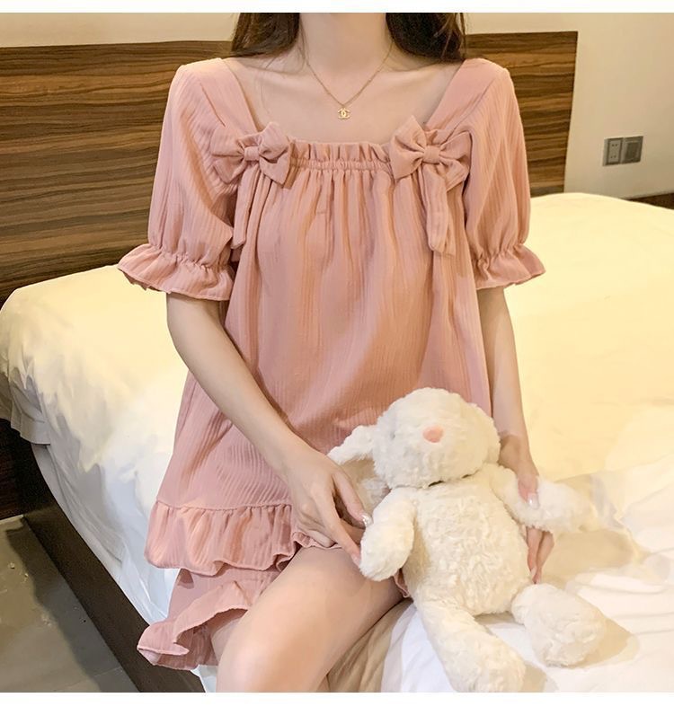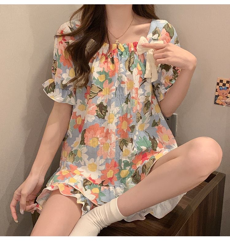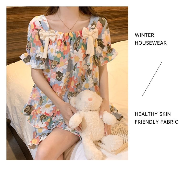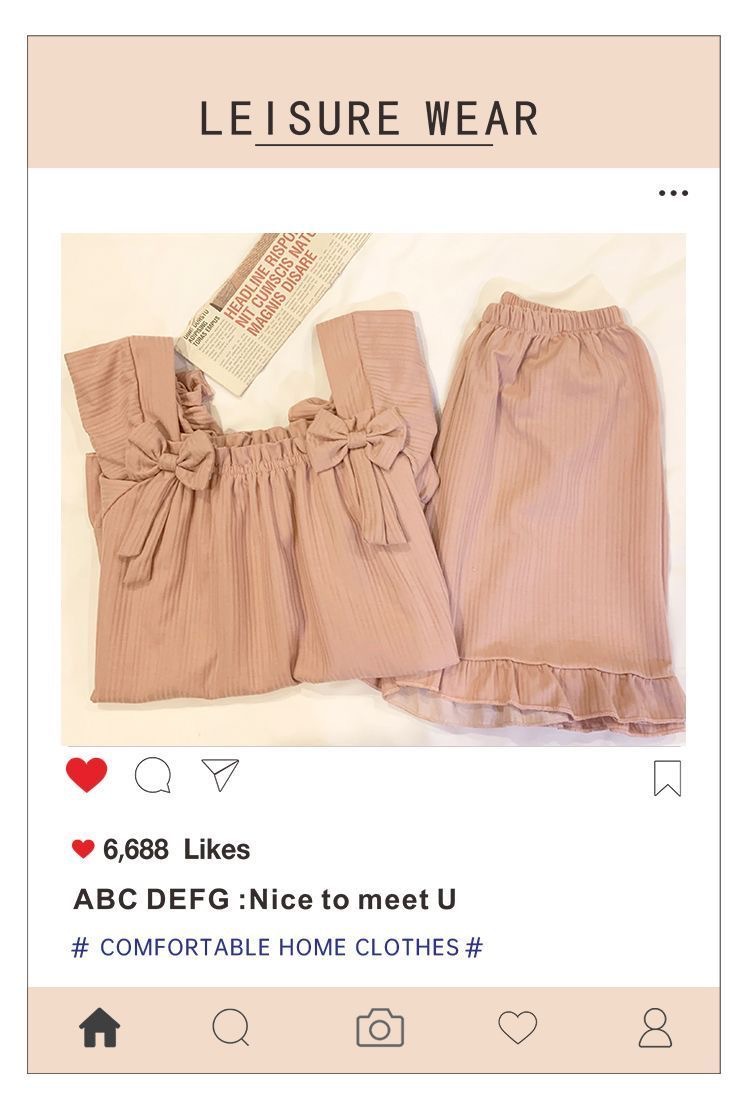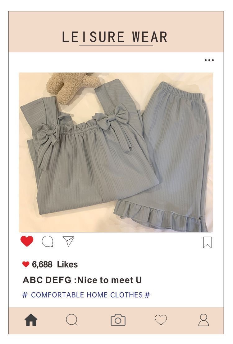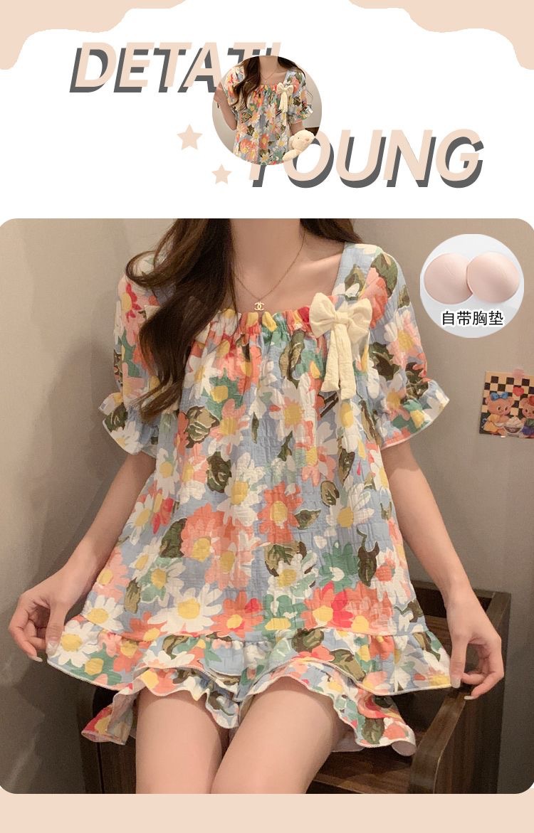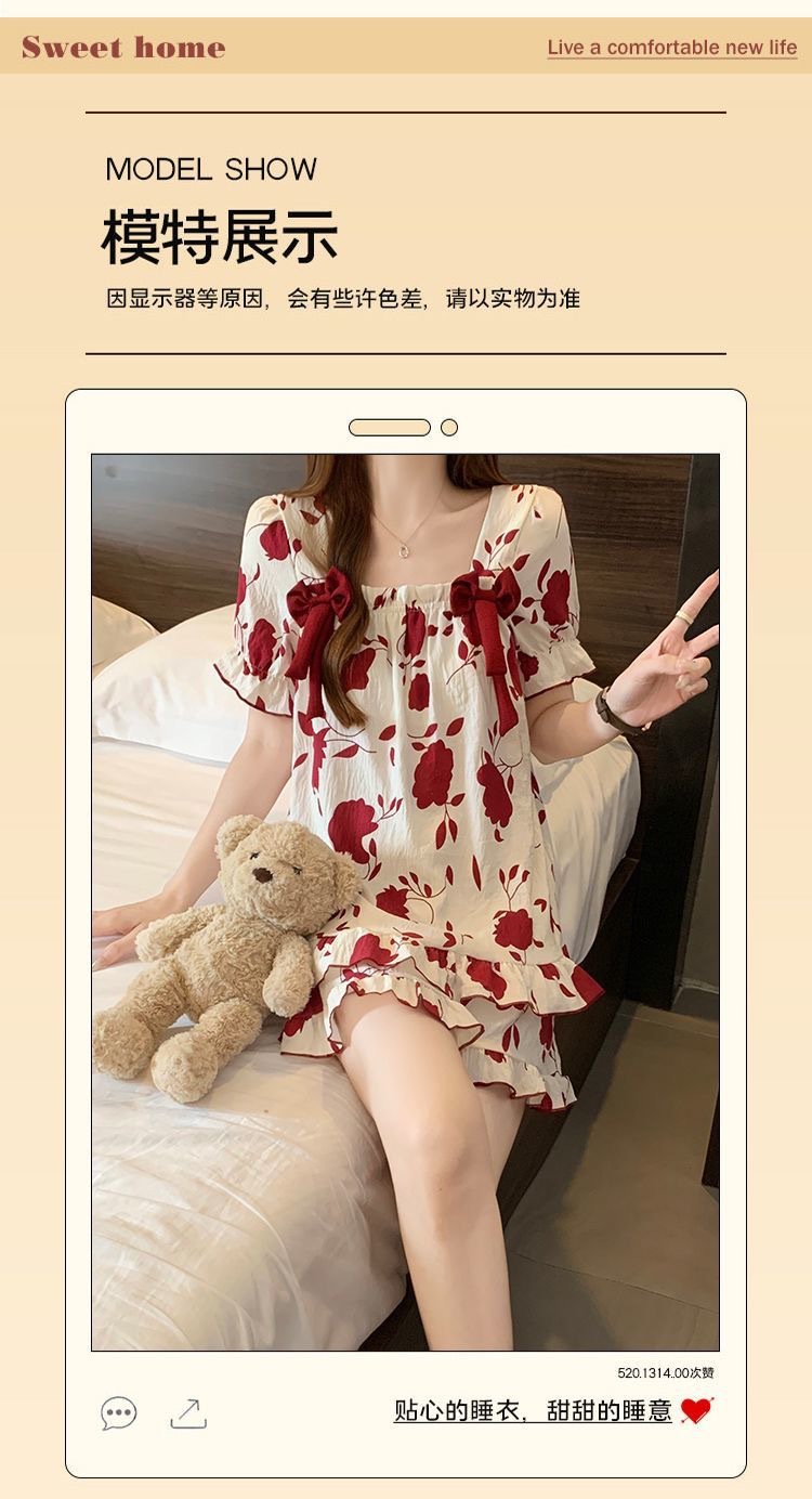 【带胸垫❗薄款短袖套装睡衣】新型亲肤面料家居服,活性印染,透气面料,柔软舒适,不起丢不掉色,薄款防凸点可爱蝴蝶结甜美夏季套装家居服QQ